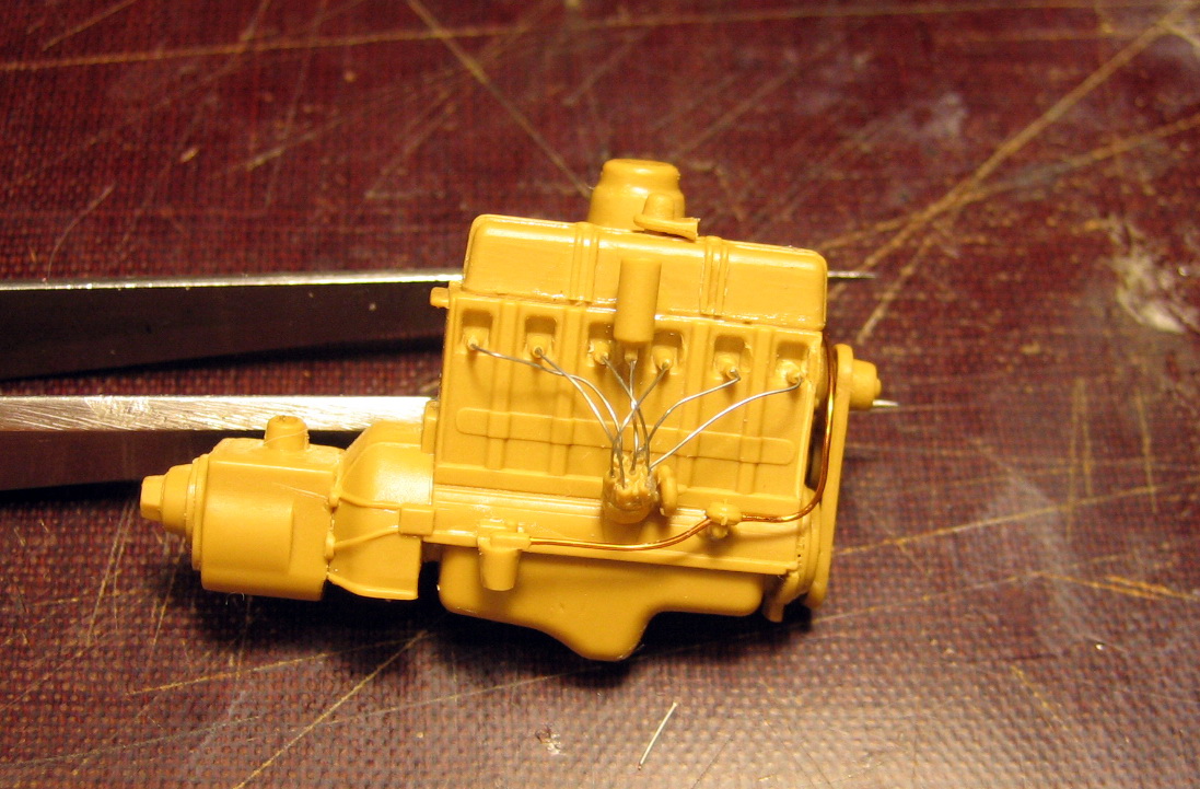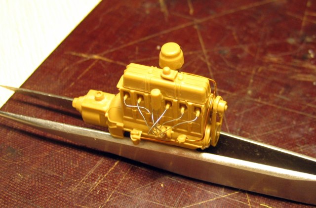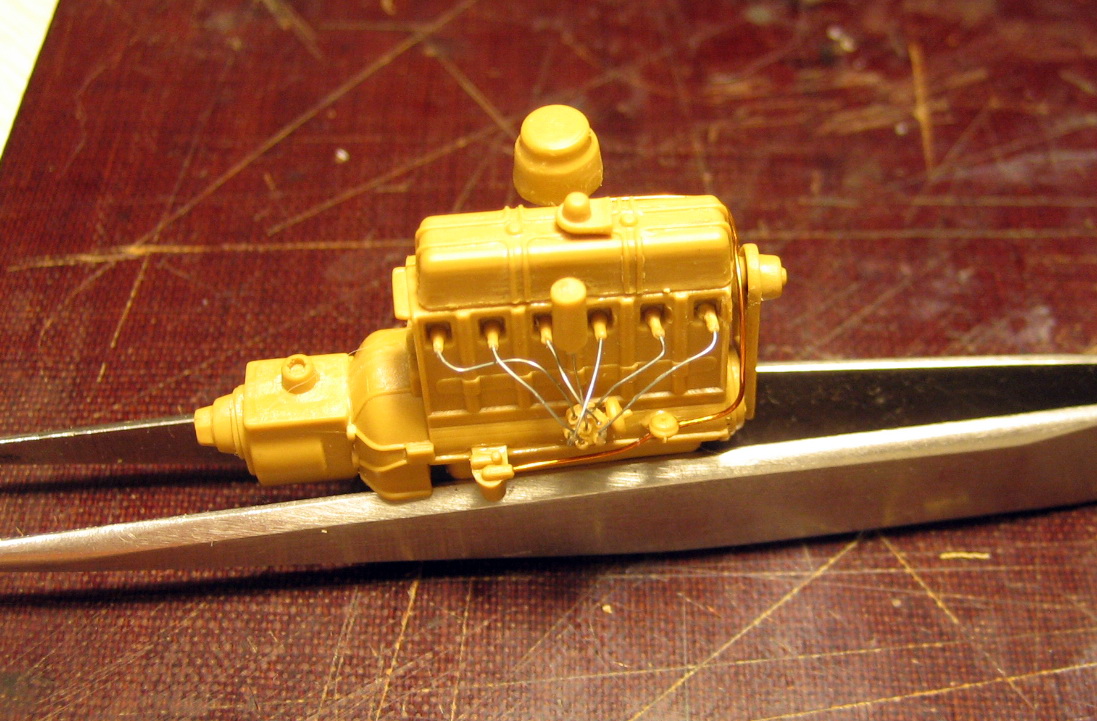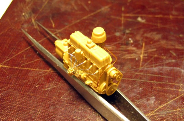 Кстати, как автоэлектрик, заметил небольшой казус в модели. ICM дает генератор без коробочки для подсоединения проводов, которая присутствует на прототипе, но стартер с электрическим , вместо ножного, втягивающим! ГЫ-ГЫ... Но это так, поумничать... А движок классно сделан, немного есть наплывчиков, но не критично.