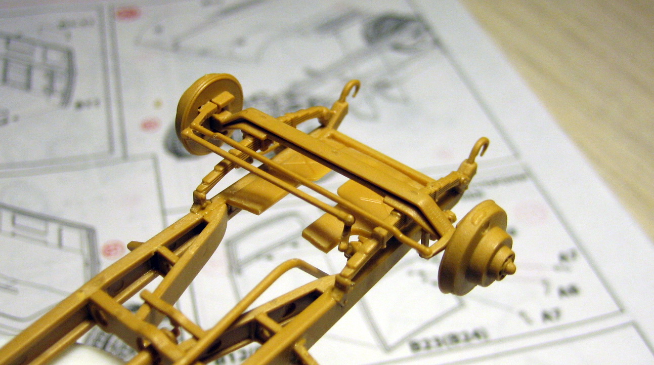 Достаточно подробная рама! Есть рулевая трапеция и рычажные амортизаторы!