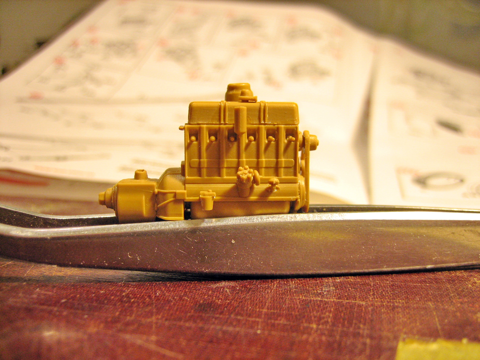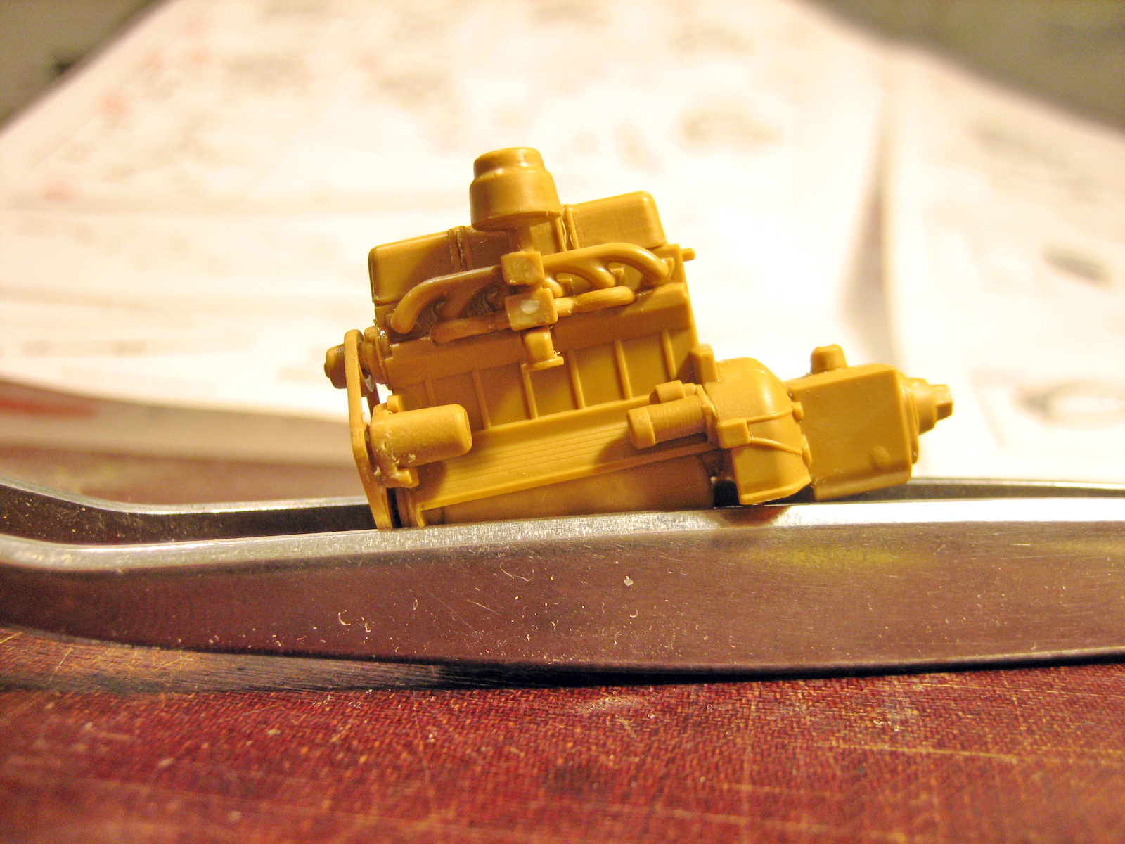 Думал, что МиниАрт страдает мелкоскопией, но как оказалось и ICM недалеко ушёл... Сегодня за пару часов , после работы, собрал движок. Весьма недурственный по детализации, мне очень понравилось. Ладно там коллекторы и карбюратор, дак они ещё и бензонасос и трамблёр с вакумом заставили приклеивать! С вакумом , Карл!