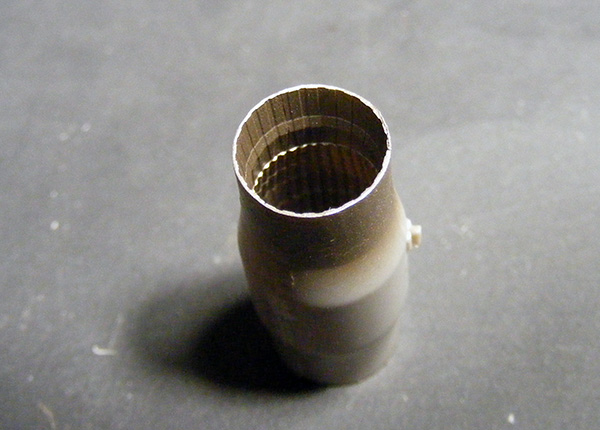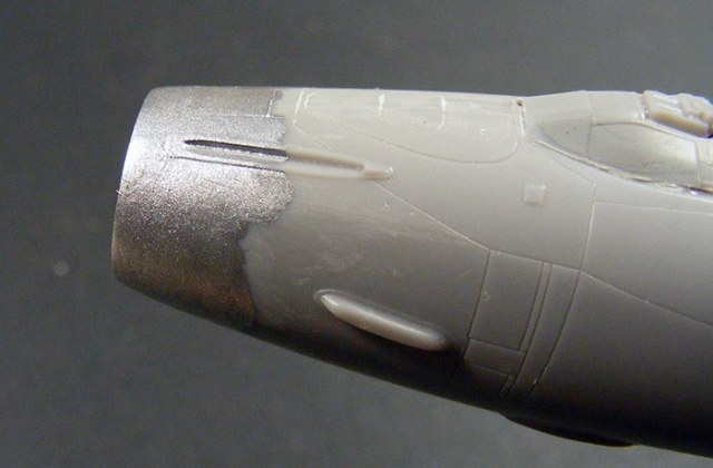 Установил на место обечайки воздухозаборника. Как ни странно, но мелочужная в размере деталька потребовала немалого количества шпаклевки и времени на обработку.