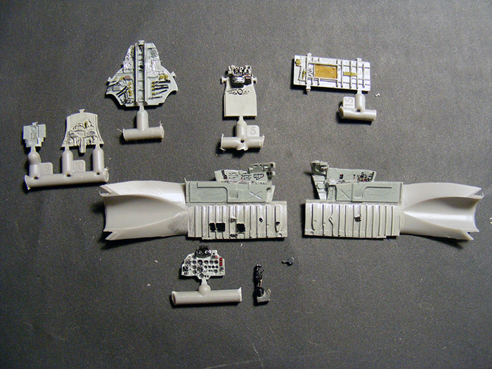 там в комплекте должна быть папта травления , в самом наборе от моделсвит . у меня была . должна быть и в твоем . и на той плате были эти элементы для кресла . если еще и найдешь прицел , то получится еще лучше . а вообще - набор от моделсвит прекрасный . и кстати , декаль тоже отличного качества . за нее не переживай , ляжет и приварится на отлично . и фонарь прозрачный . так что , давай вперед , на отличный результат . малость придется повозиться с рычагами и подкосами в нишах основных шасси .