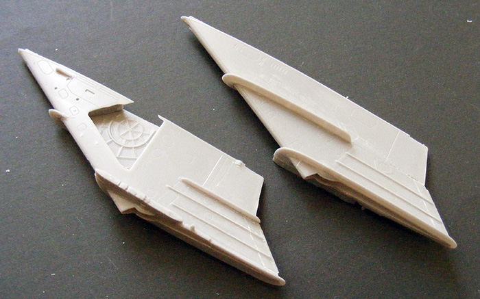 Поработал с крыльями - на ПЧК приклеил кусочки "Эльфовских" литников (мне очень нравиться этот способ имитации БАНО). Собрал НЧК, смотрятся с кучей всех гребней очень объемно.