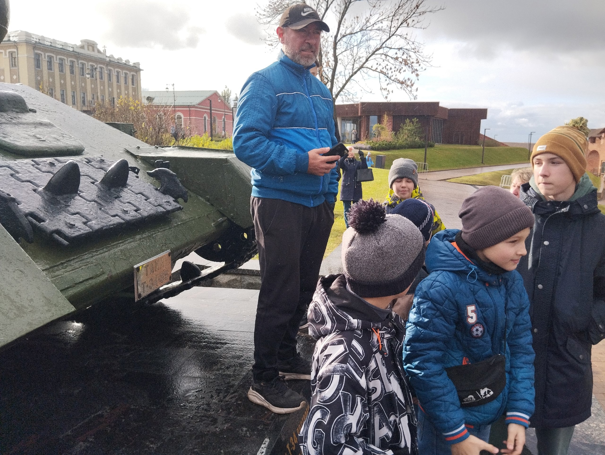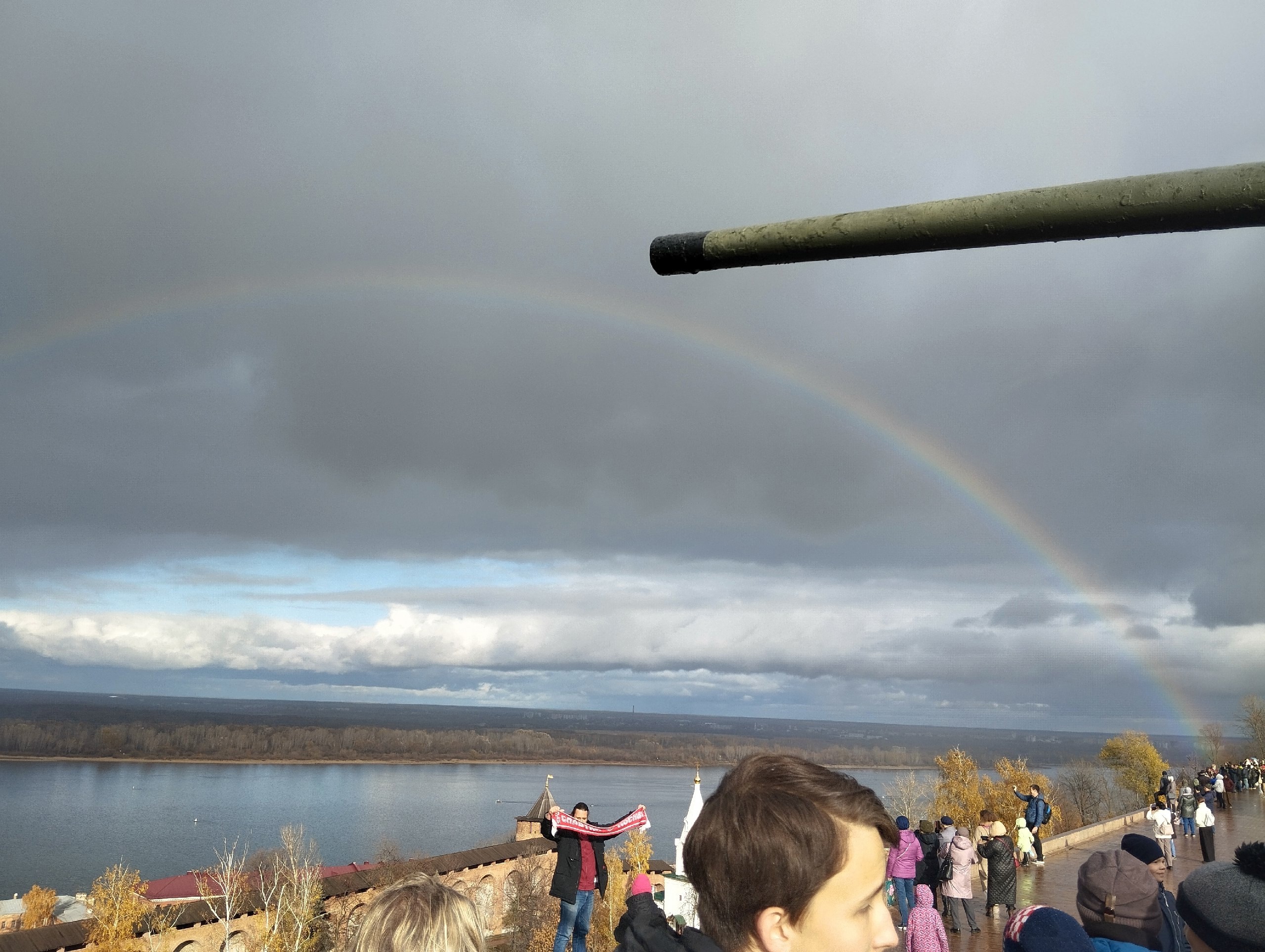 Радуга и танки. Сегодня сходили в Кремль, несмотря на дождь посмотрели на танки Т-34/85, потрогали руками, немного рассказал детям про историю танка. Это уже вторая наша "прогулка с танком".