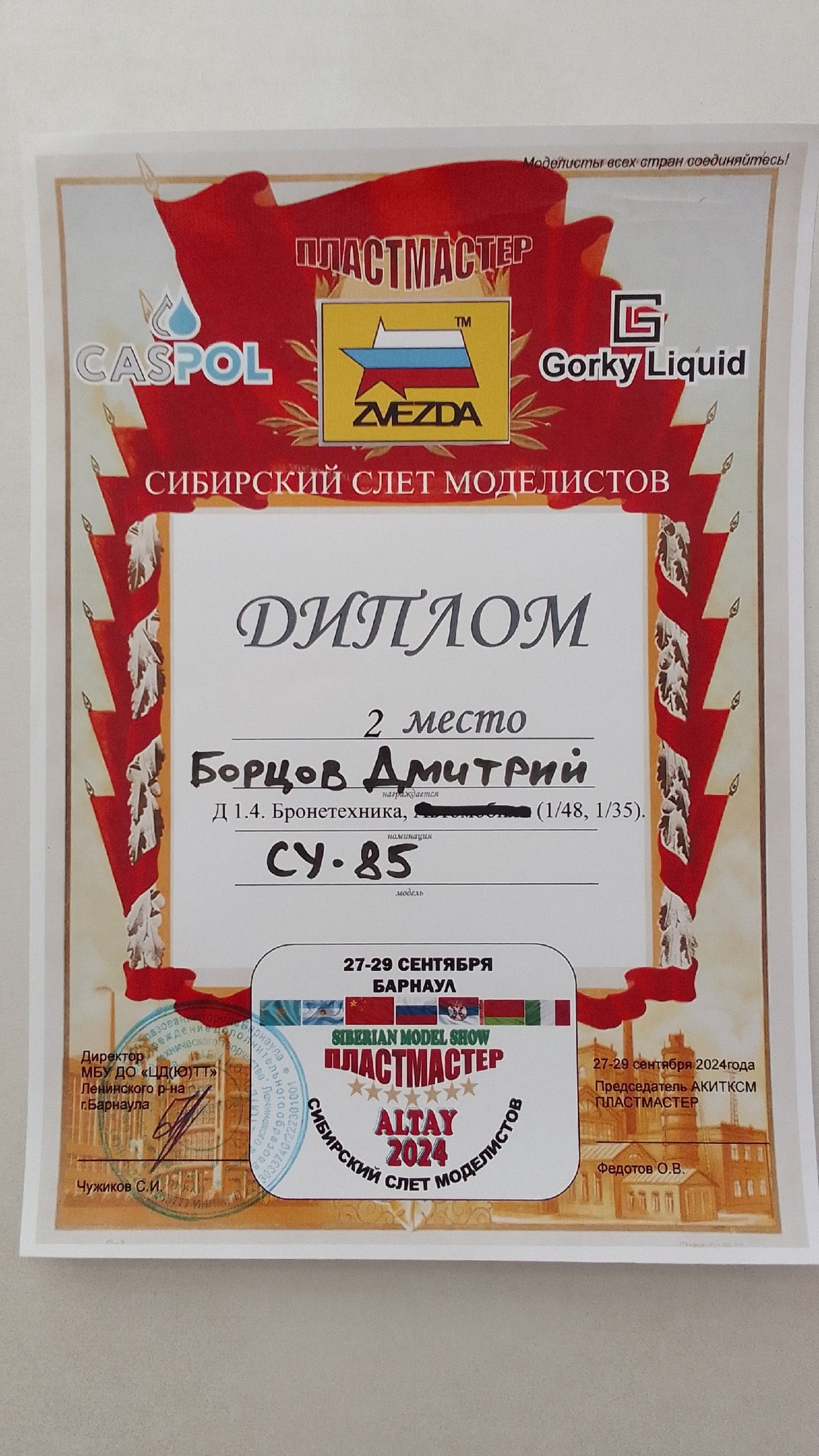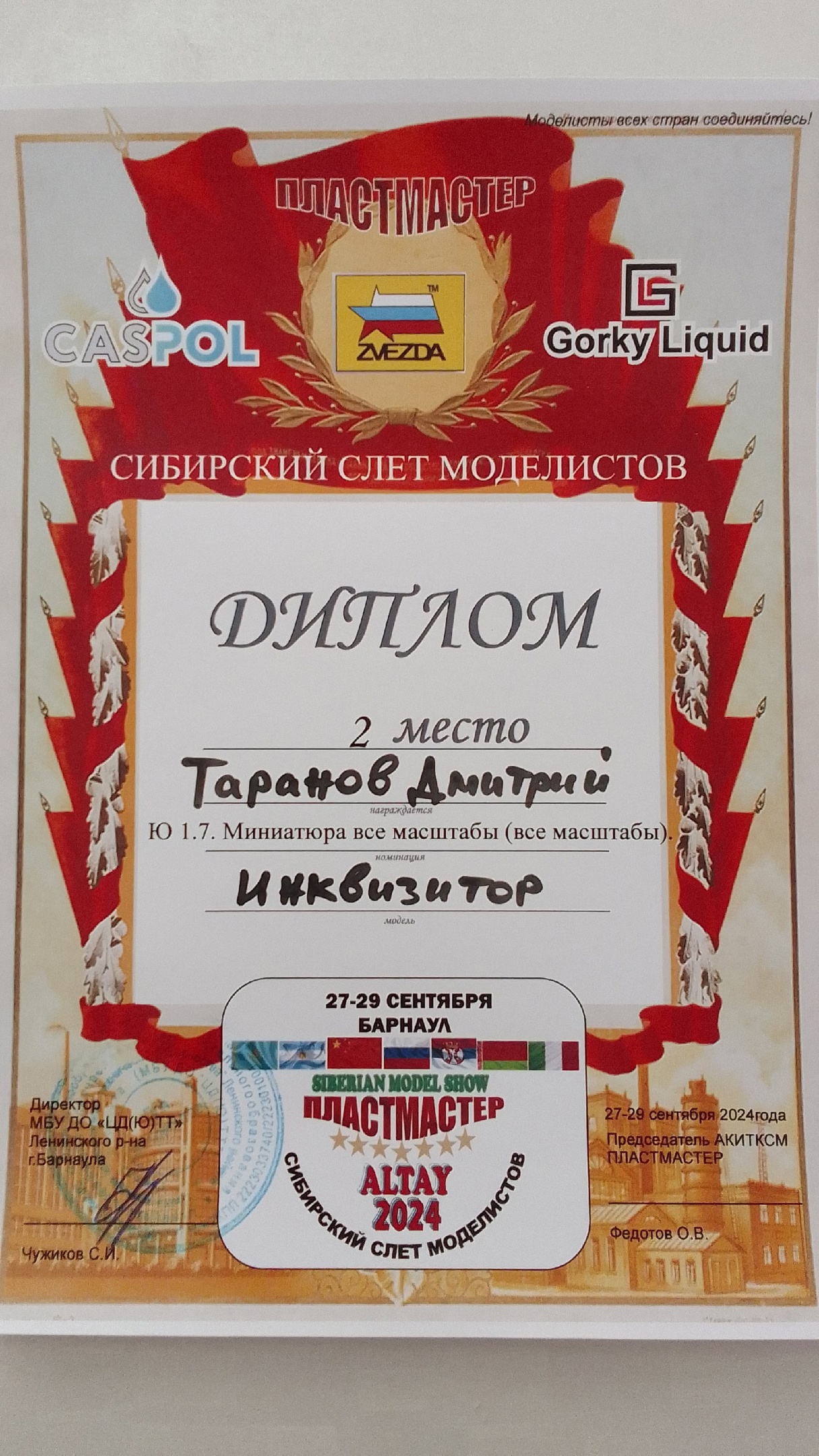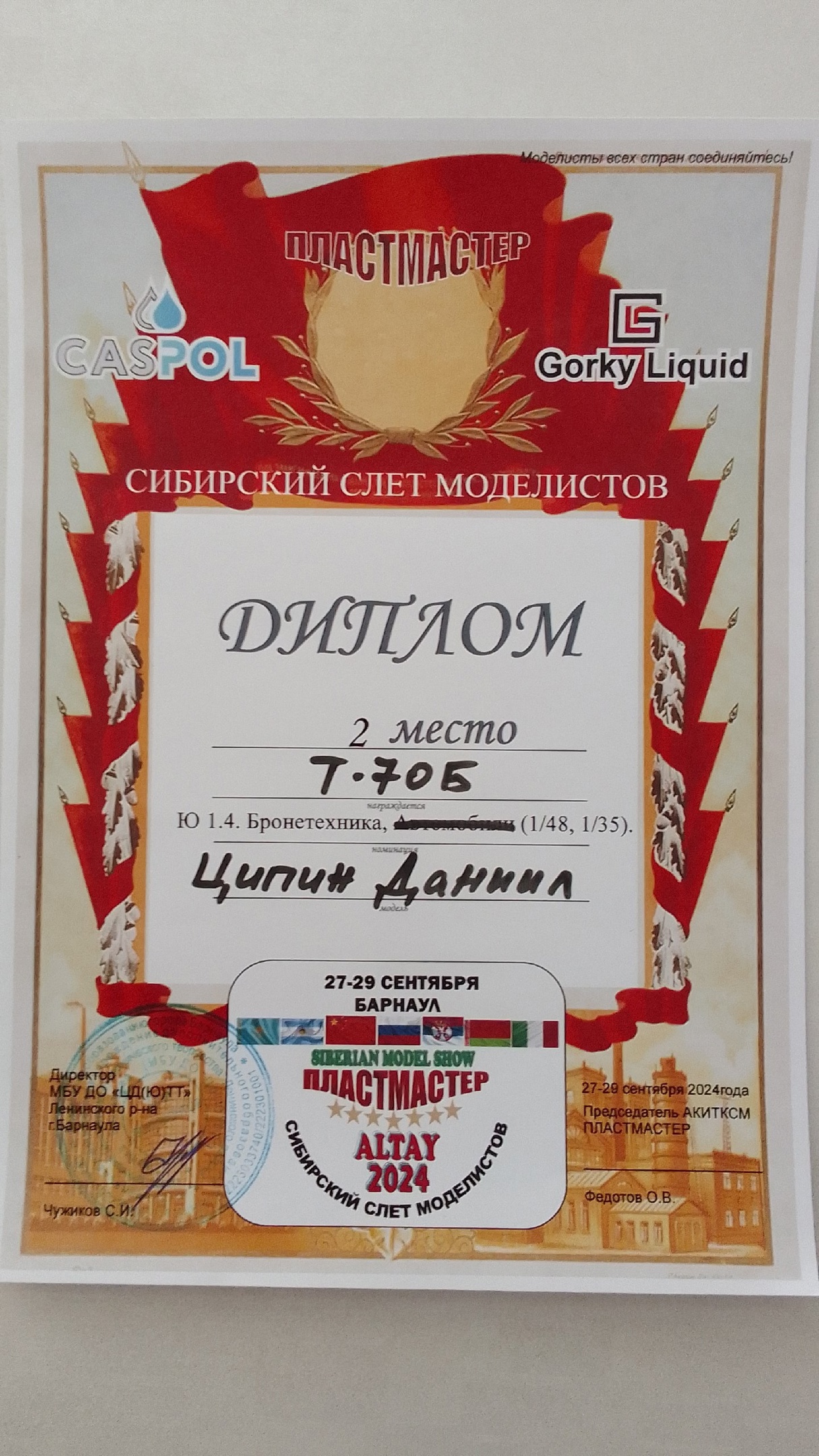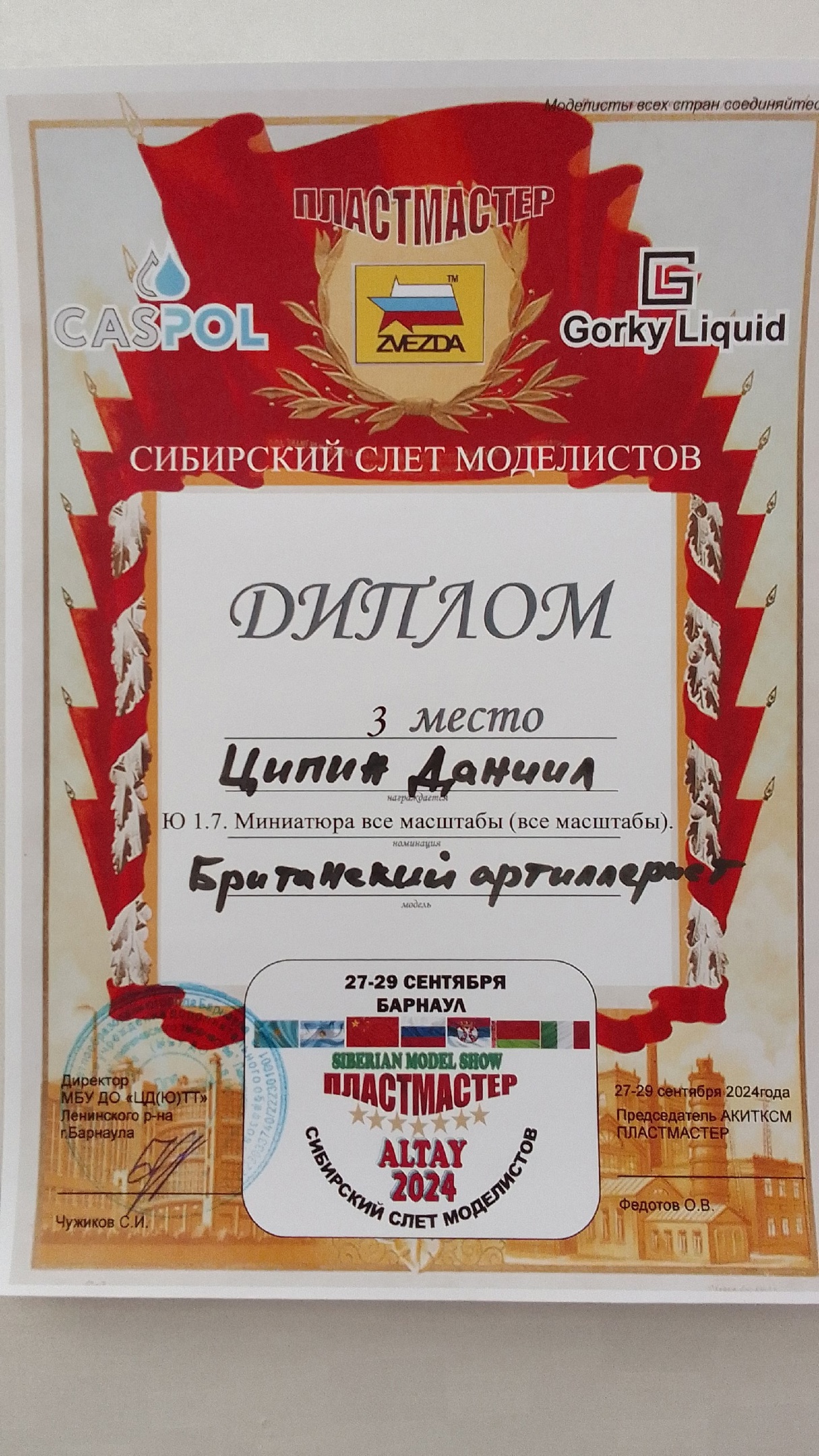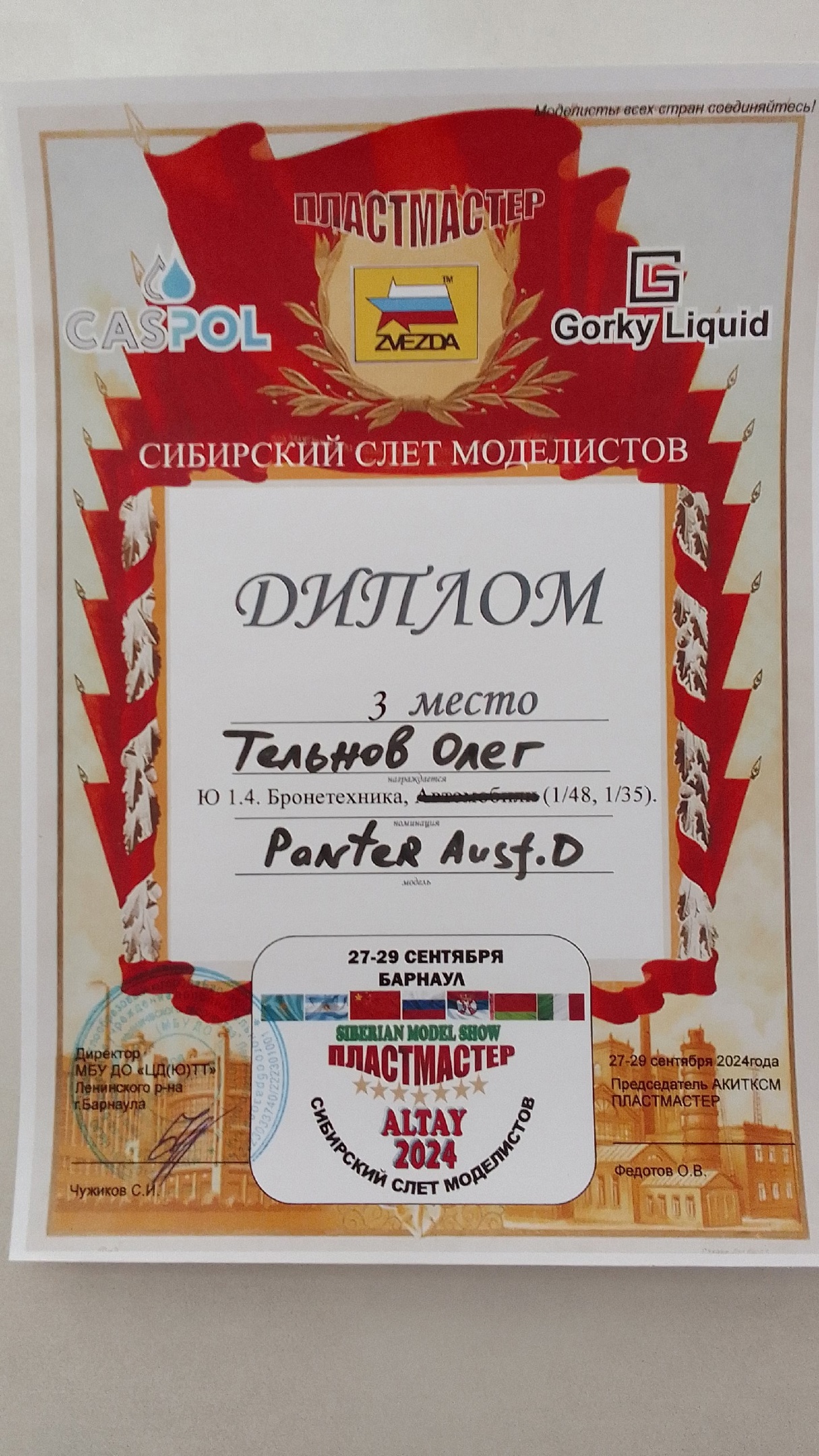 Вчера пришла новость из Барнаула, где благодаря Ивану Сысуеву мы тоже участвовали в конкурсе "SIBERIAN MODEL SHOW " ПЛАСТМАСТЕР-ALTAY 2024". И тоже успешно. Спасибо организаторам мероприятия и судьям за высокую оценку наших работ.