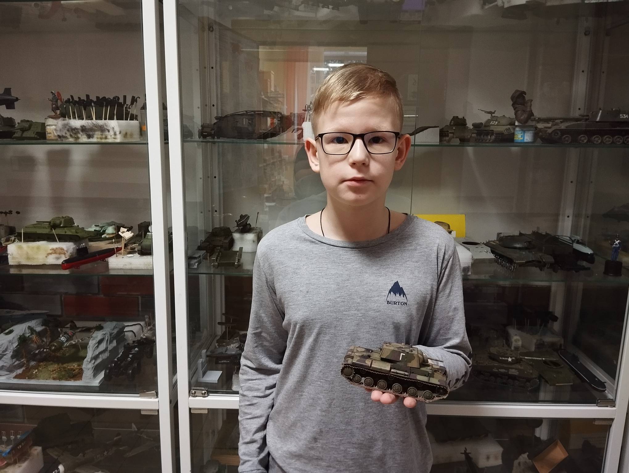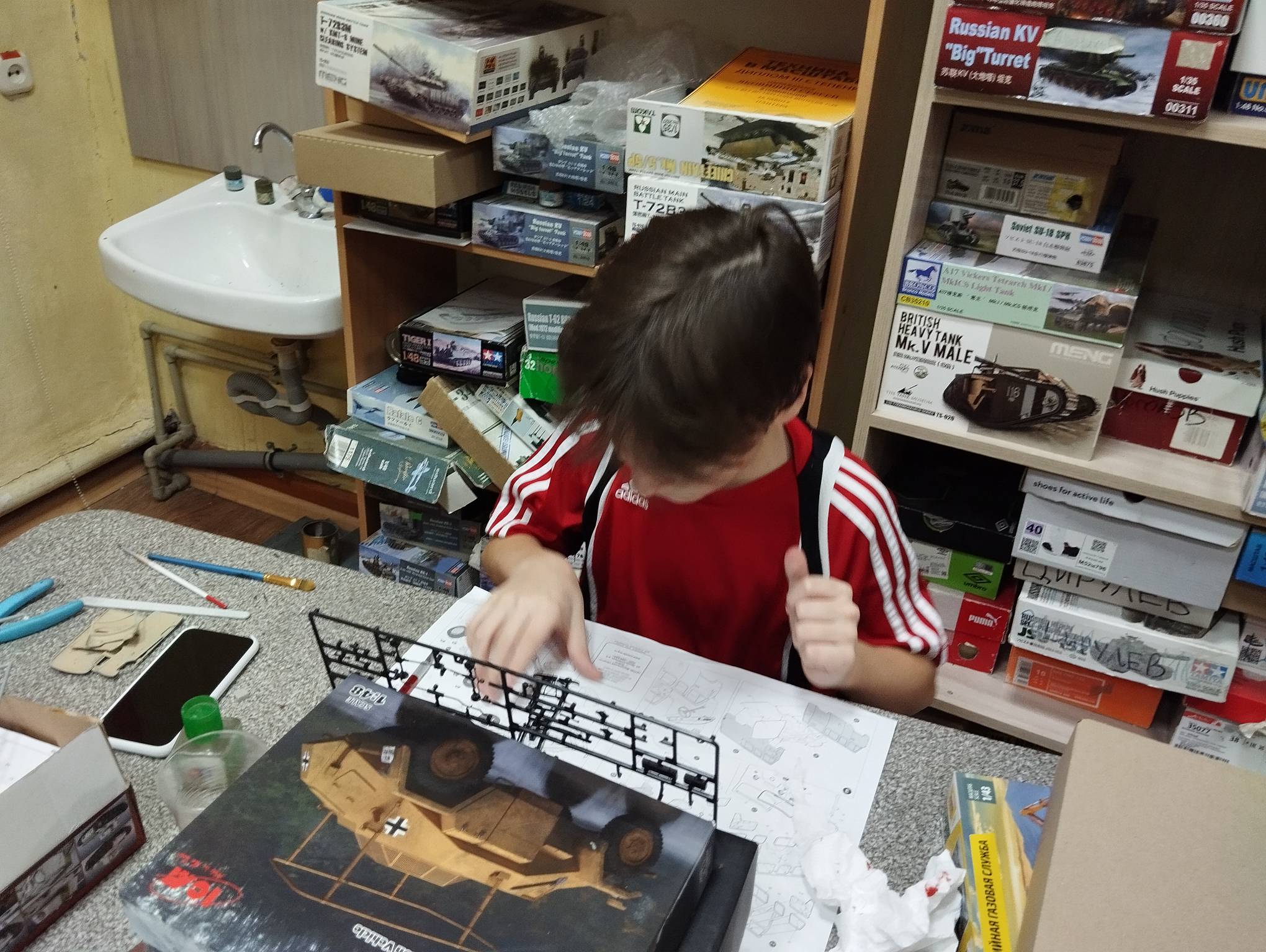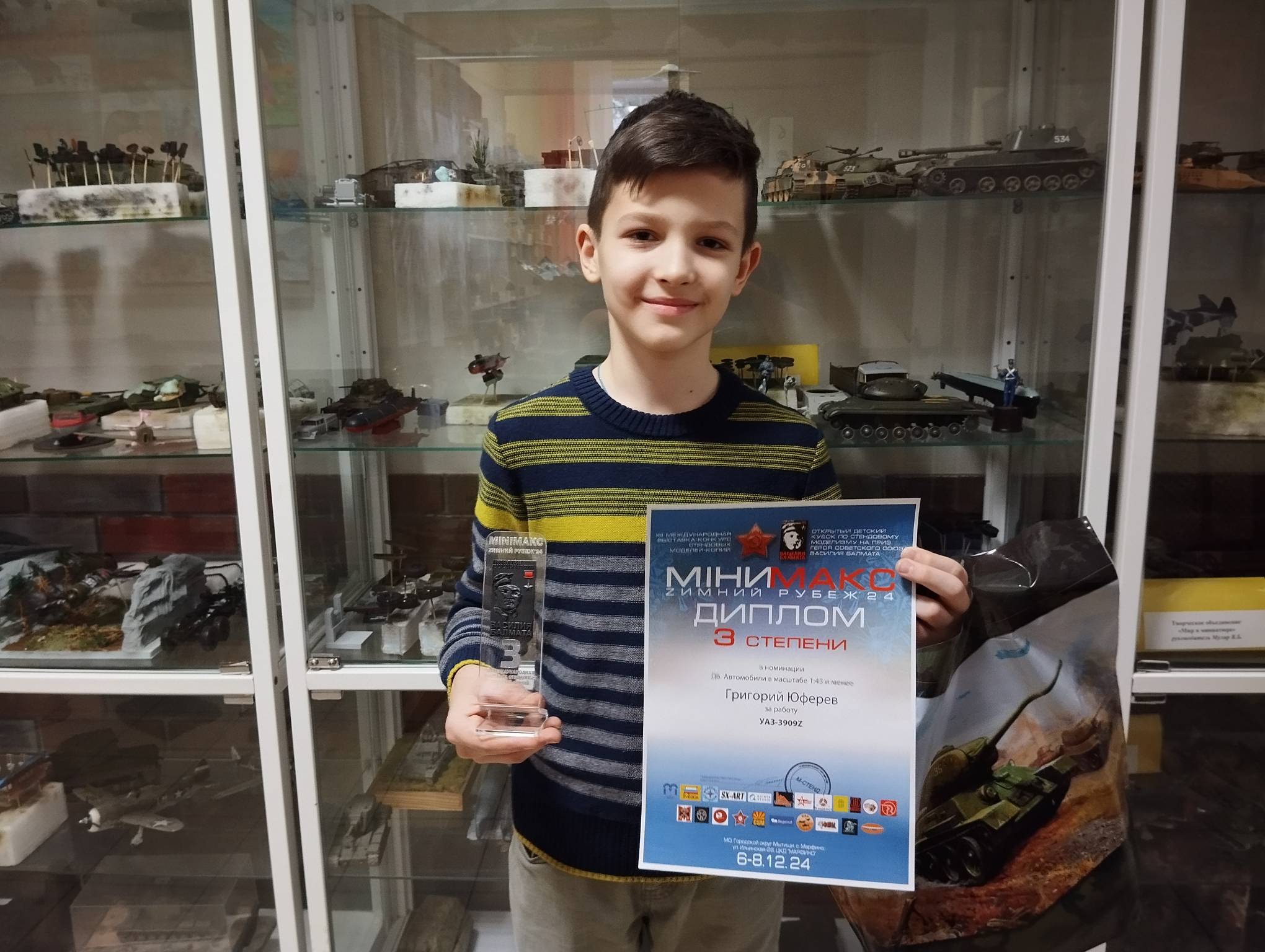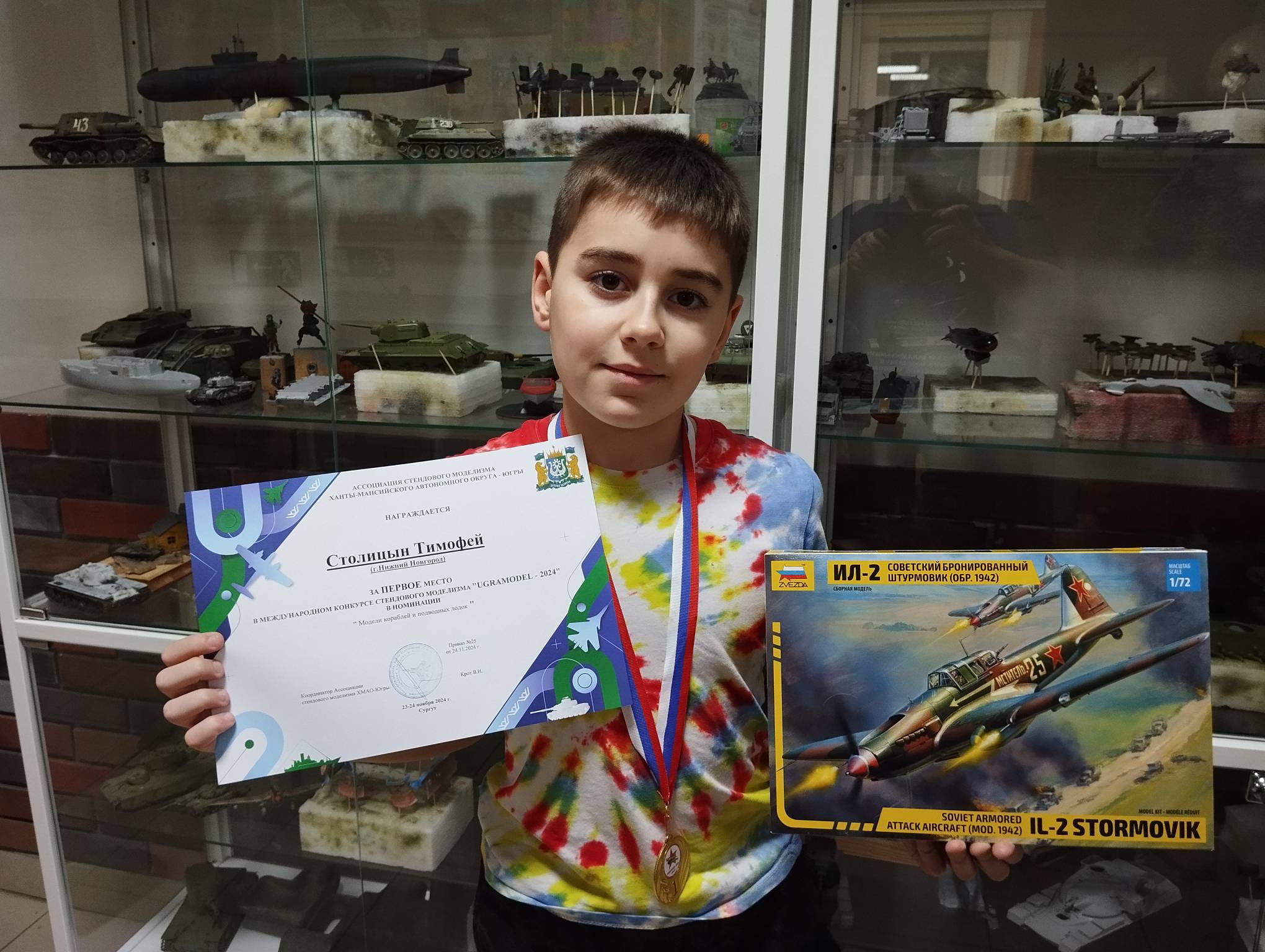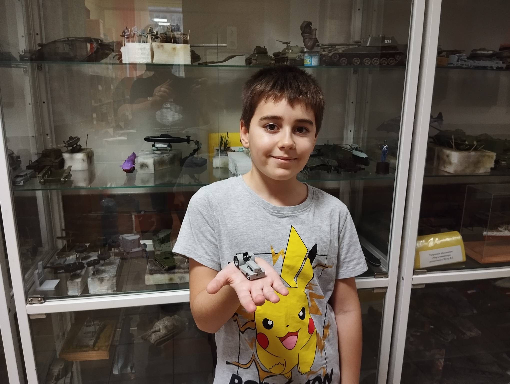 Во вторник занимались, вручил Мише две награды с Минимакса. Первое участие в конкурсе - 1 место в бронетехнике 1/48 и 2 место в автомобилях 1/43 и менее в категории 11 лет и младше. Отличный результат.