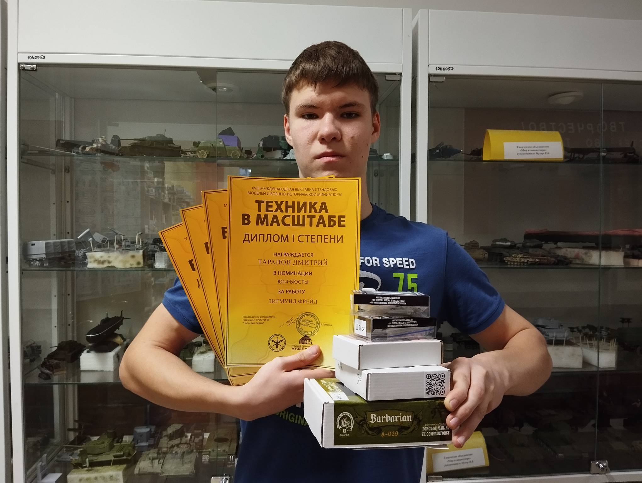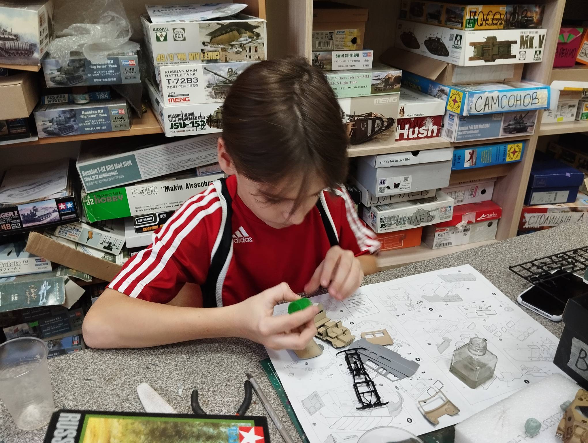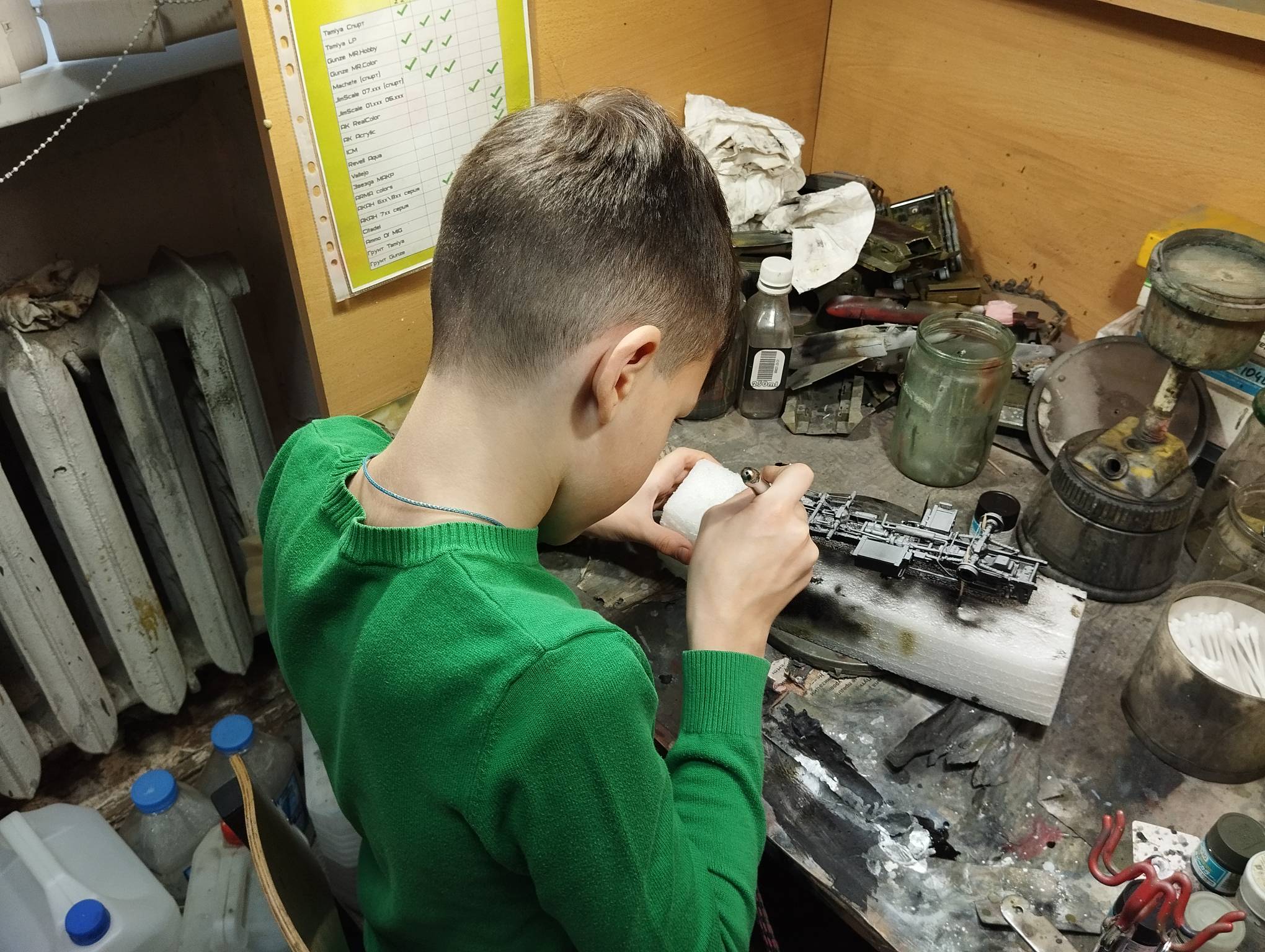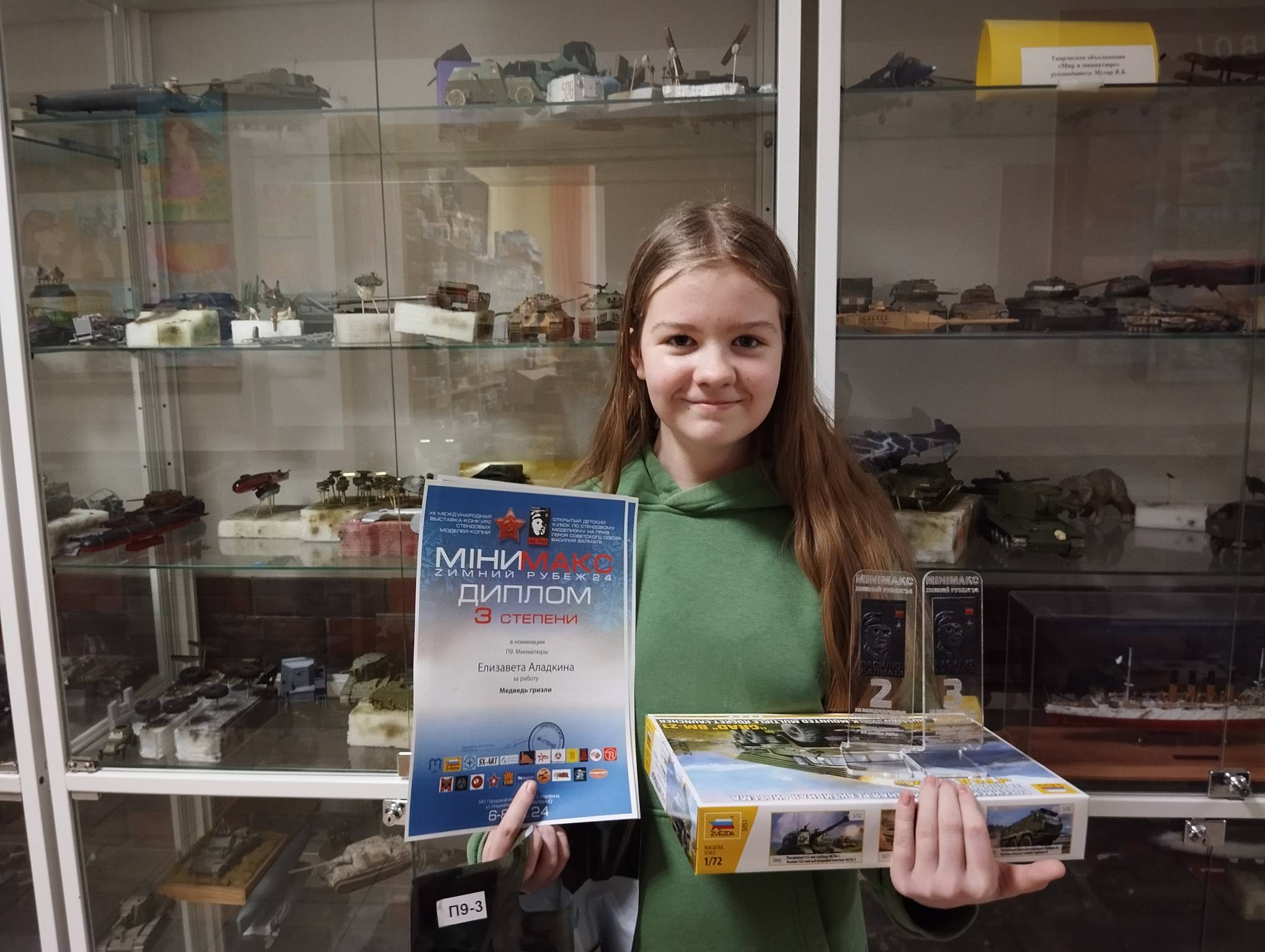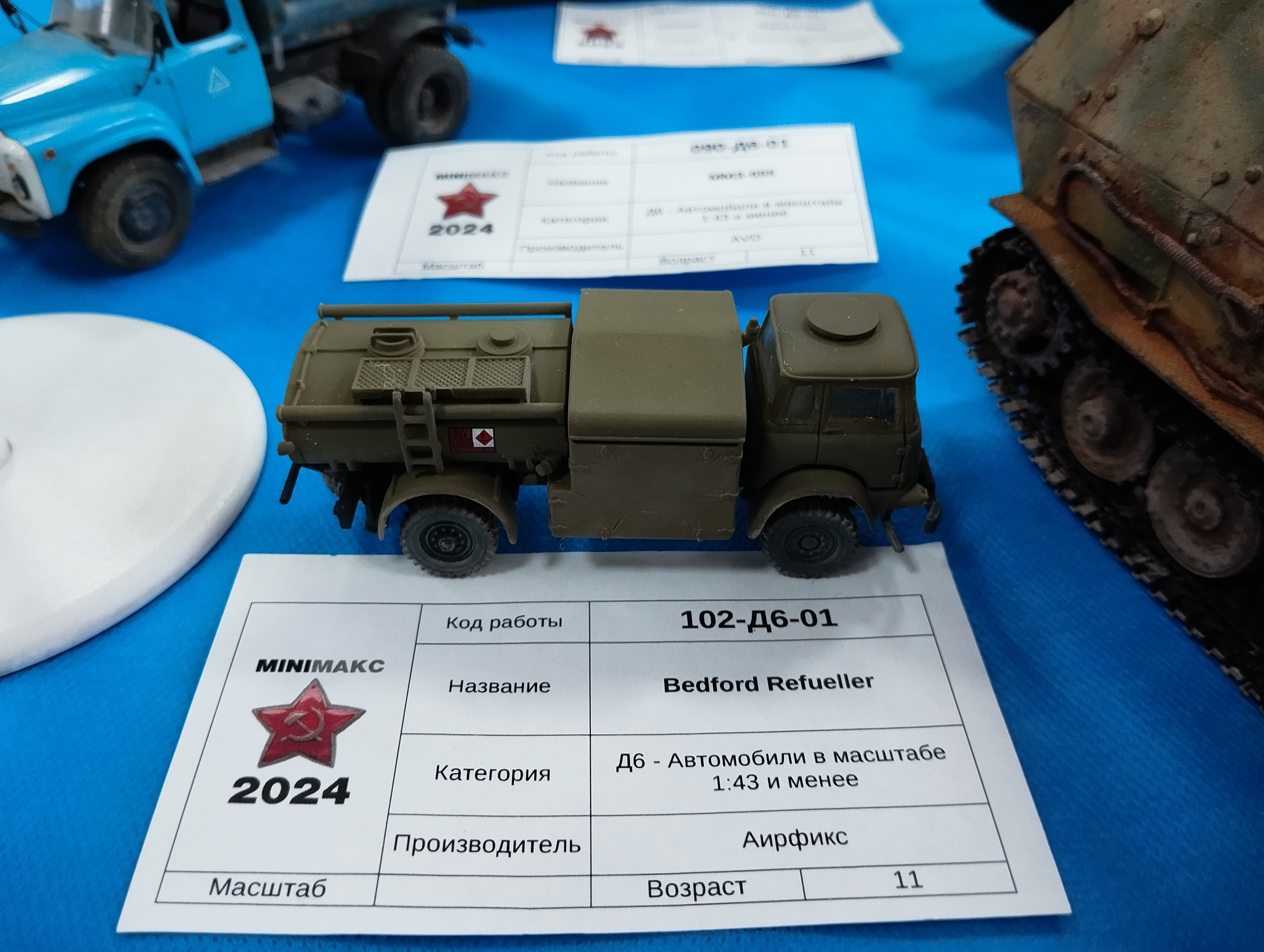 Во вторник занимались, вручил Мише две награды с Минимакса. Первое участие в конкурсе - 1 место в бронетехнике 1/48 и 2 место в автомобилях 1/43 и менее в категории 11 лет и младше. Отличный результат.