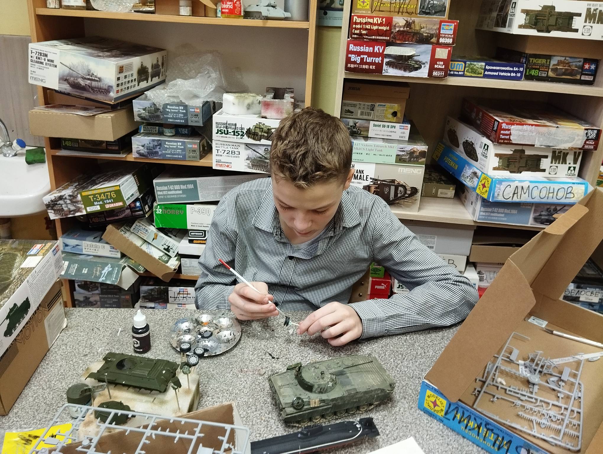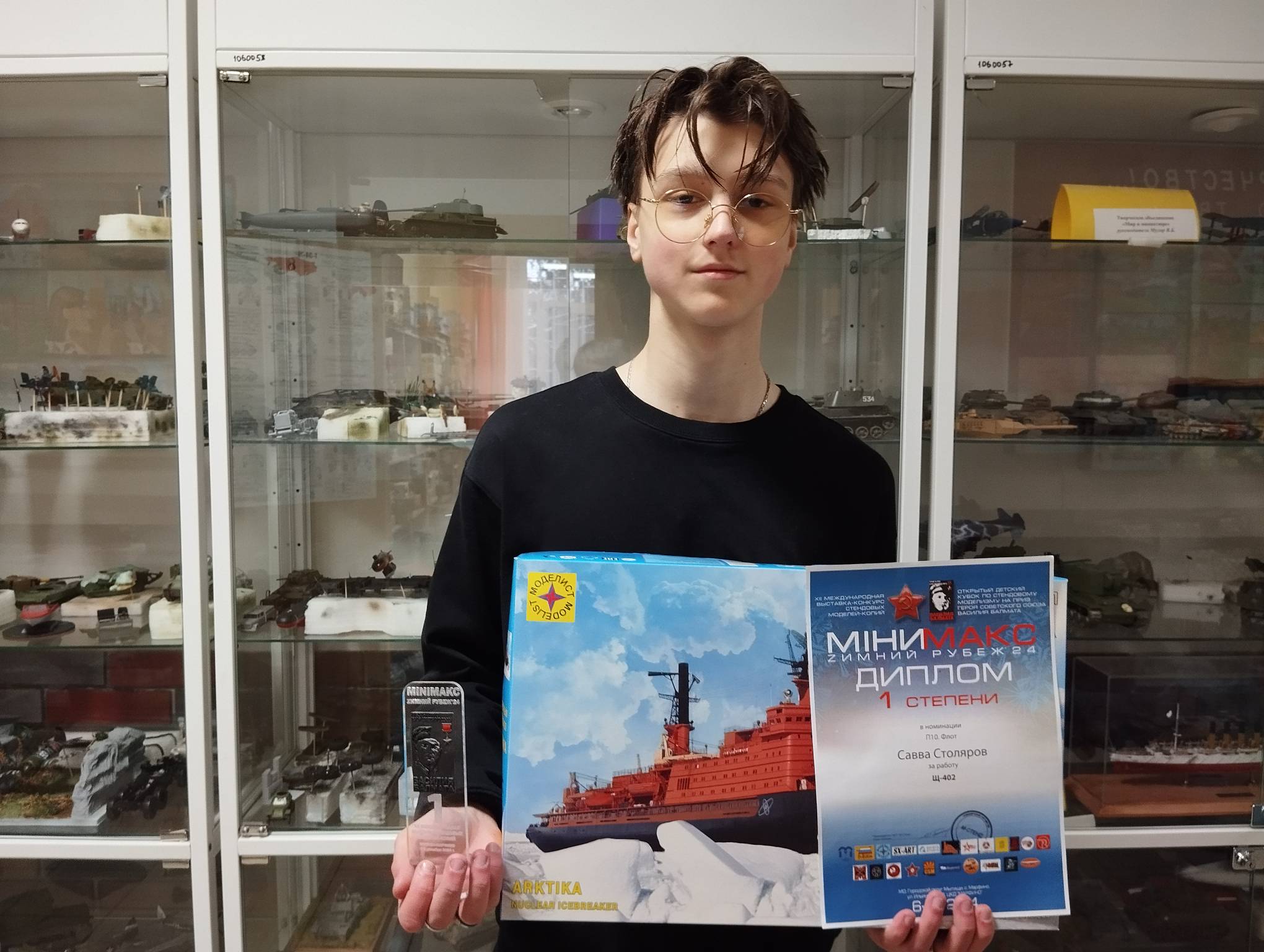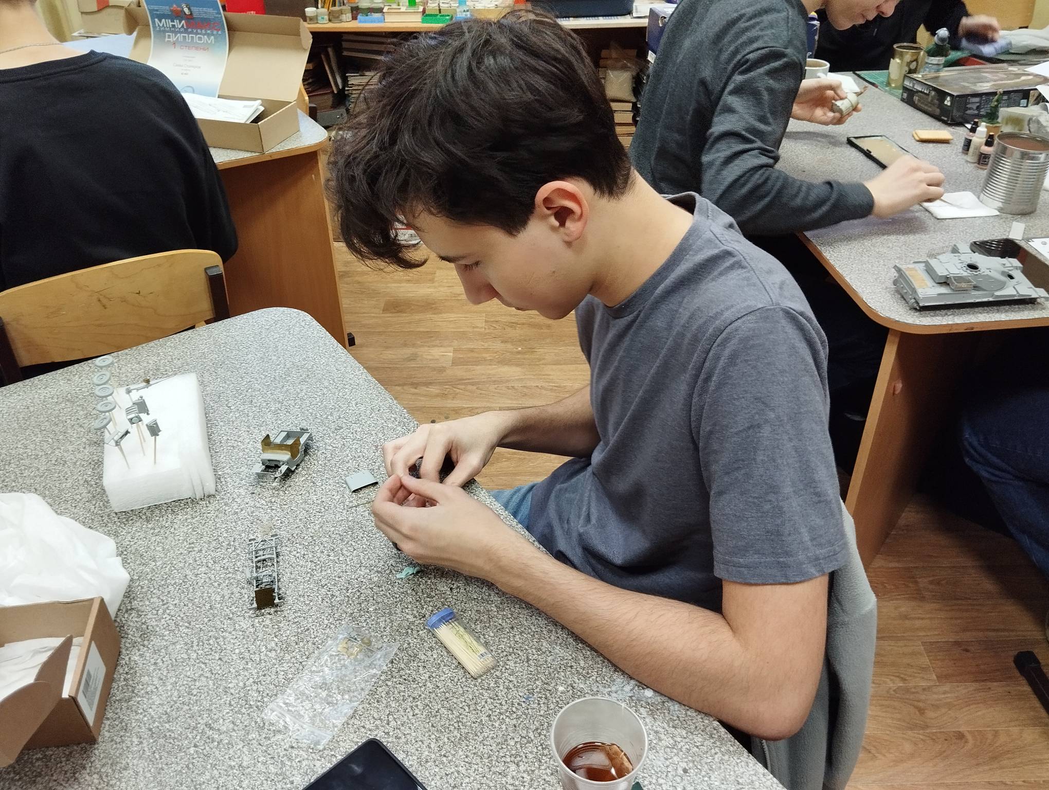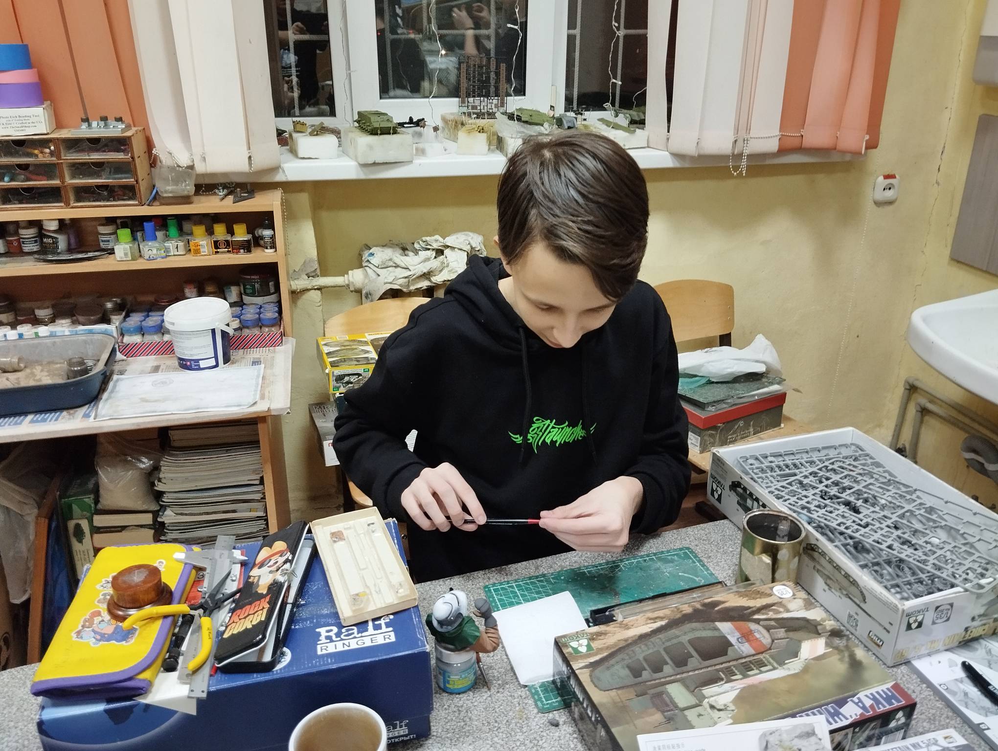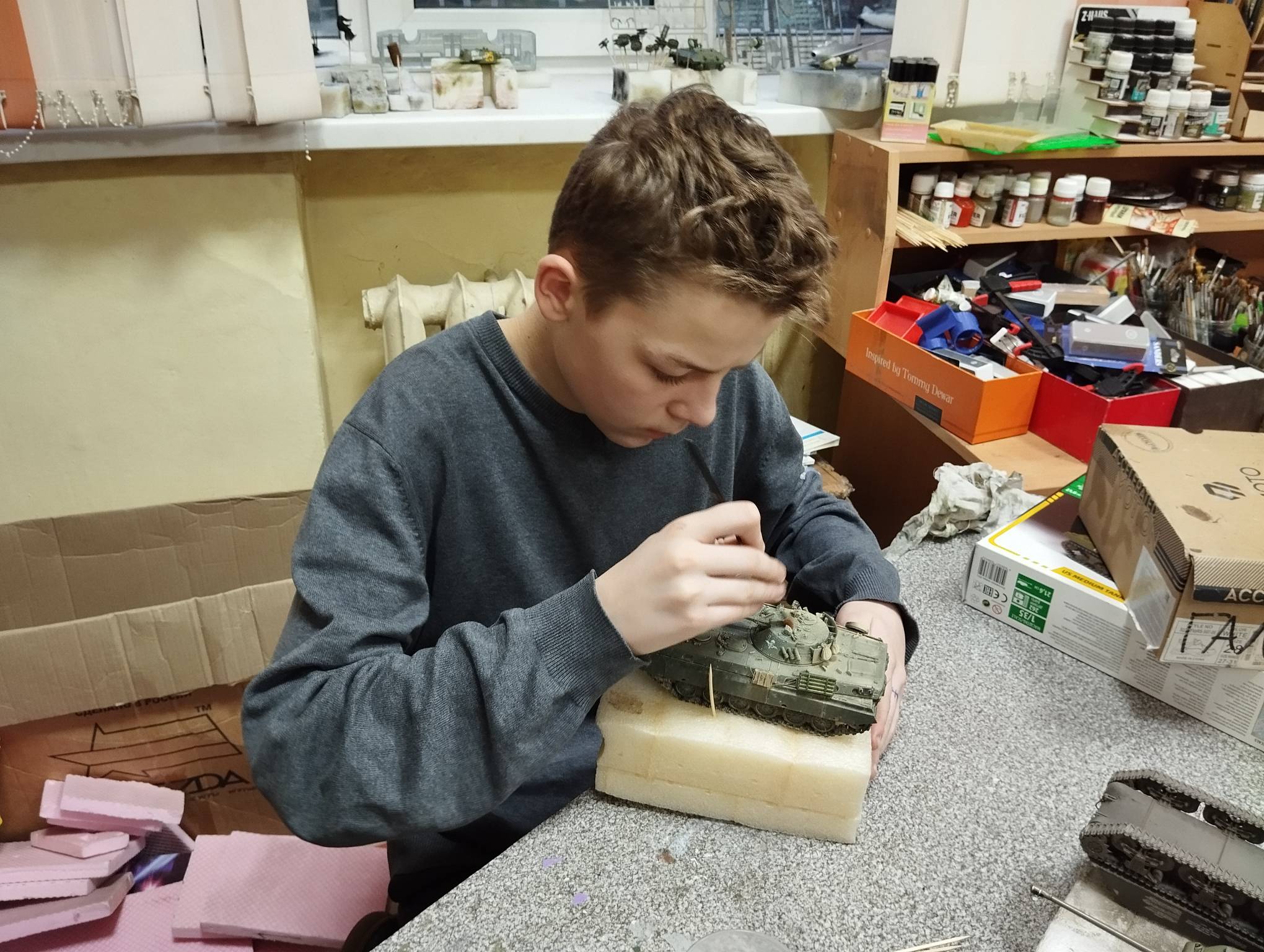 Во вторник занимались, вручил Мише две награды с Минимакса. Первое участие в конкурсе - 1 место в бронетехнике 1/48 и 2 место в автомобилях 1/43 и менее в категории 11 лет и младше. Отличный результат.