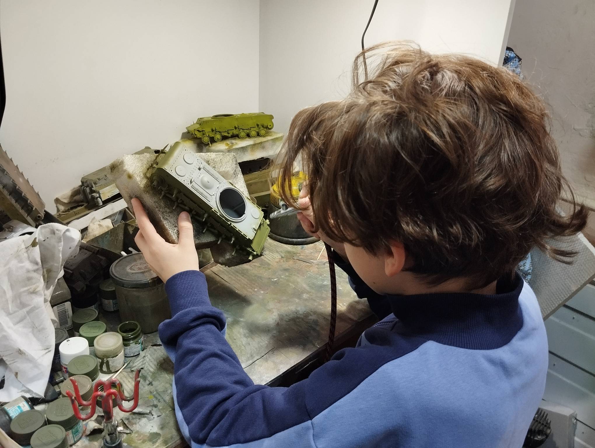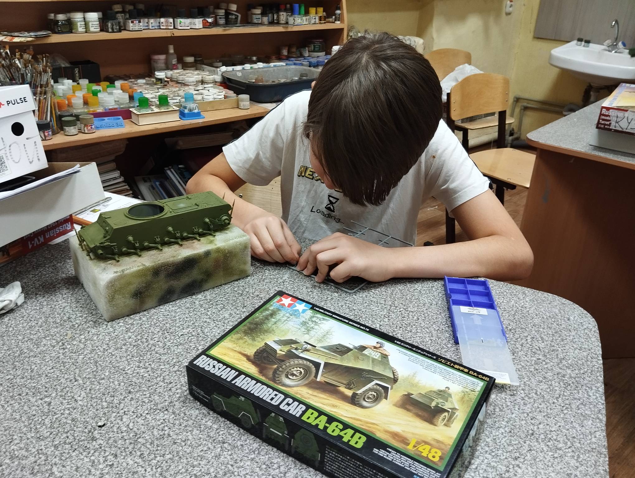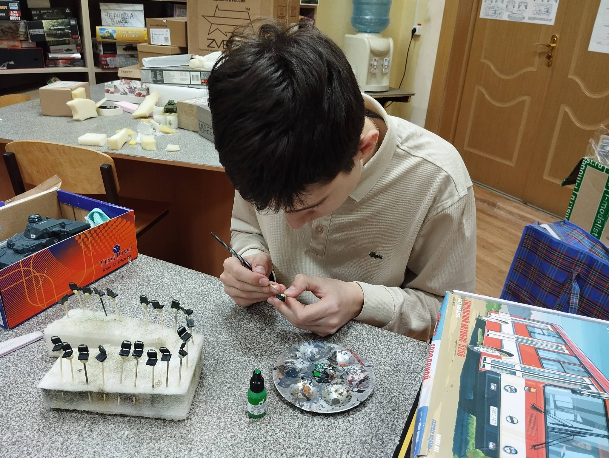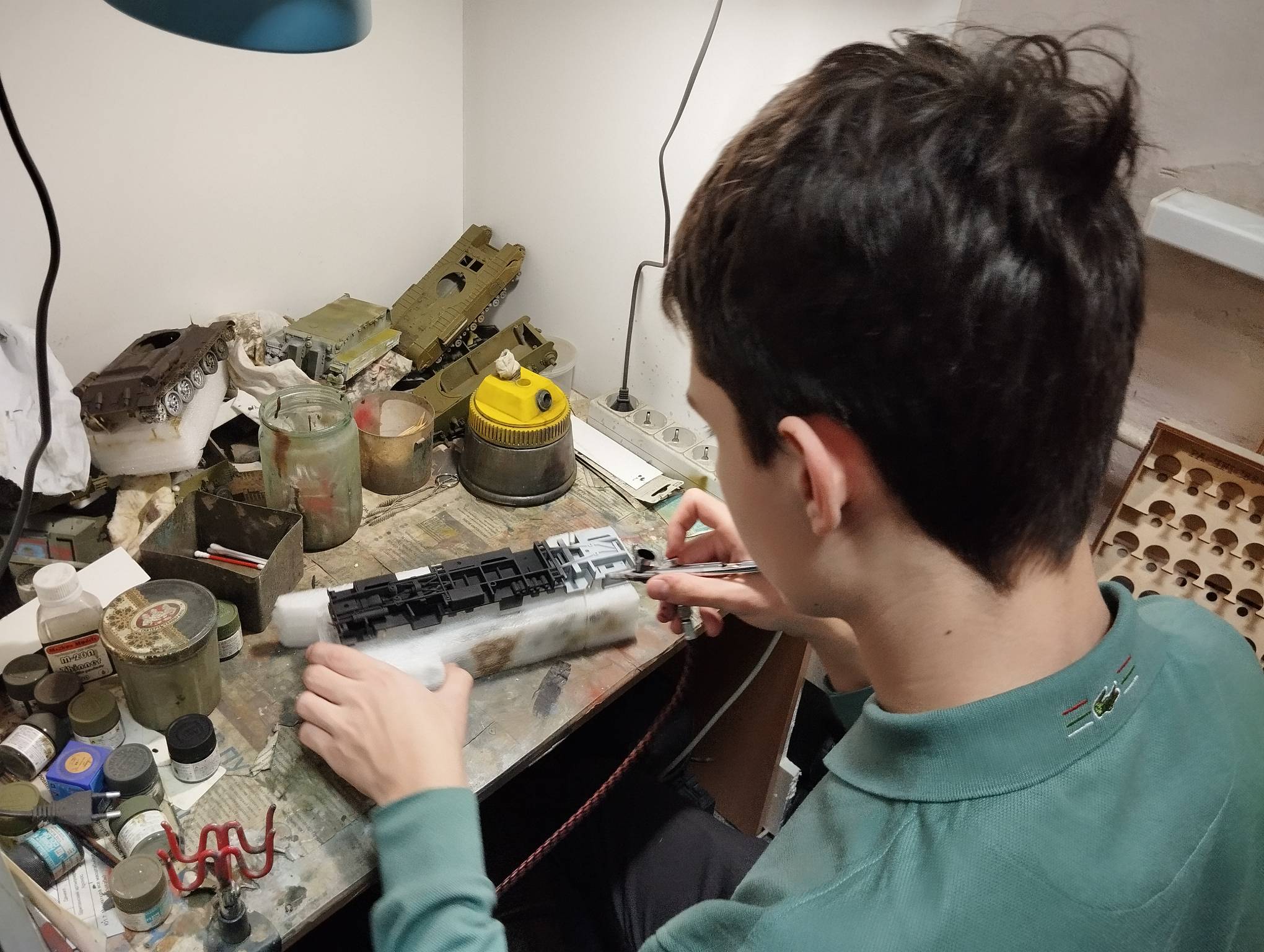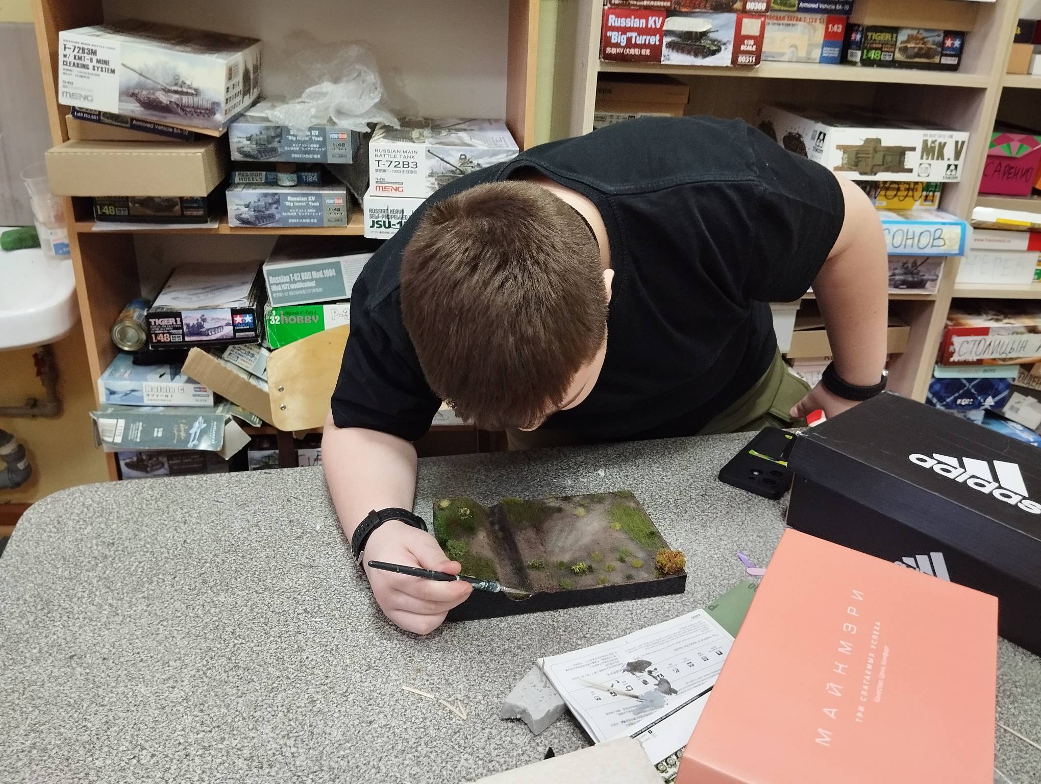 Во вторник занимались, вручил Мише две награды с Минимакса. Первое участие в конкурсе - 1 место в бронетехнике 1/48 и 2 место в автомобилях 1/43 и менее в категории 11 лет и младше. Отличный результат.