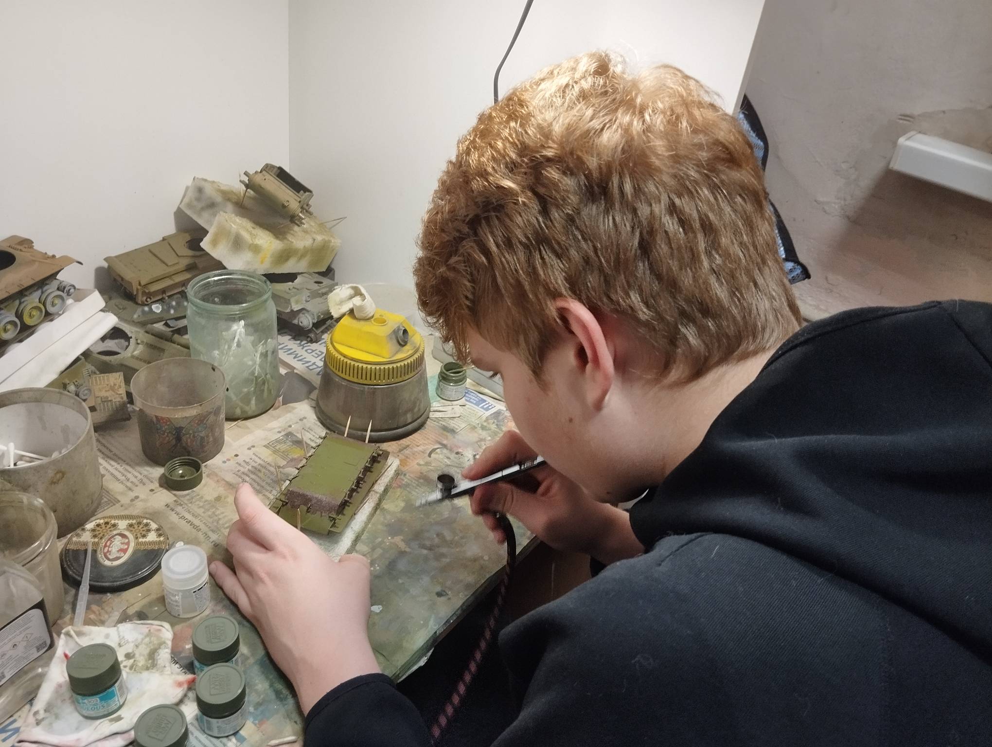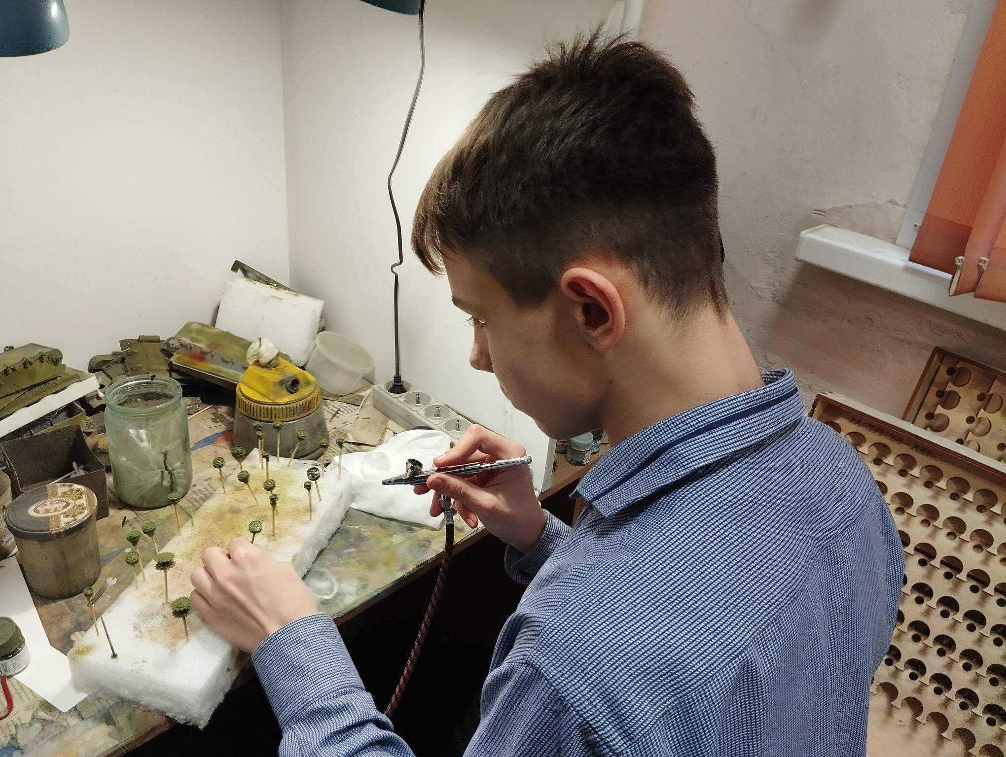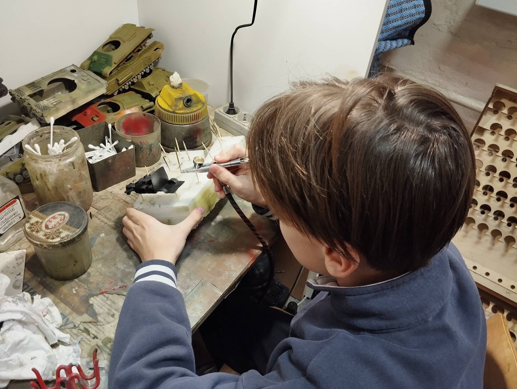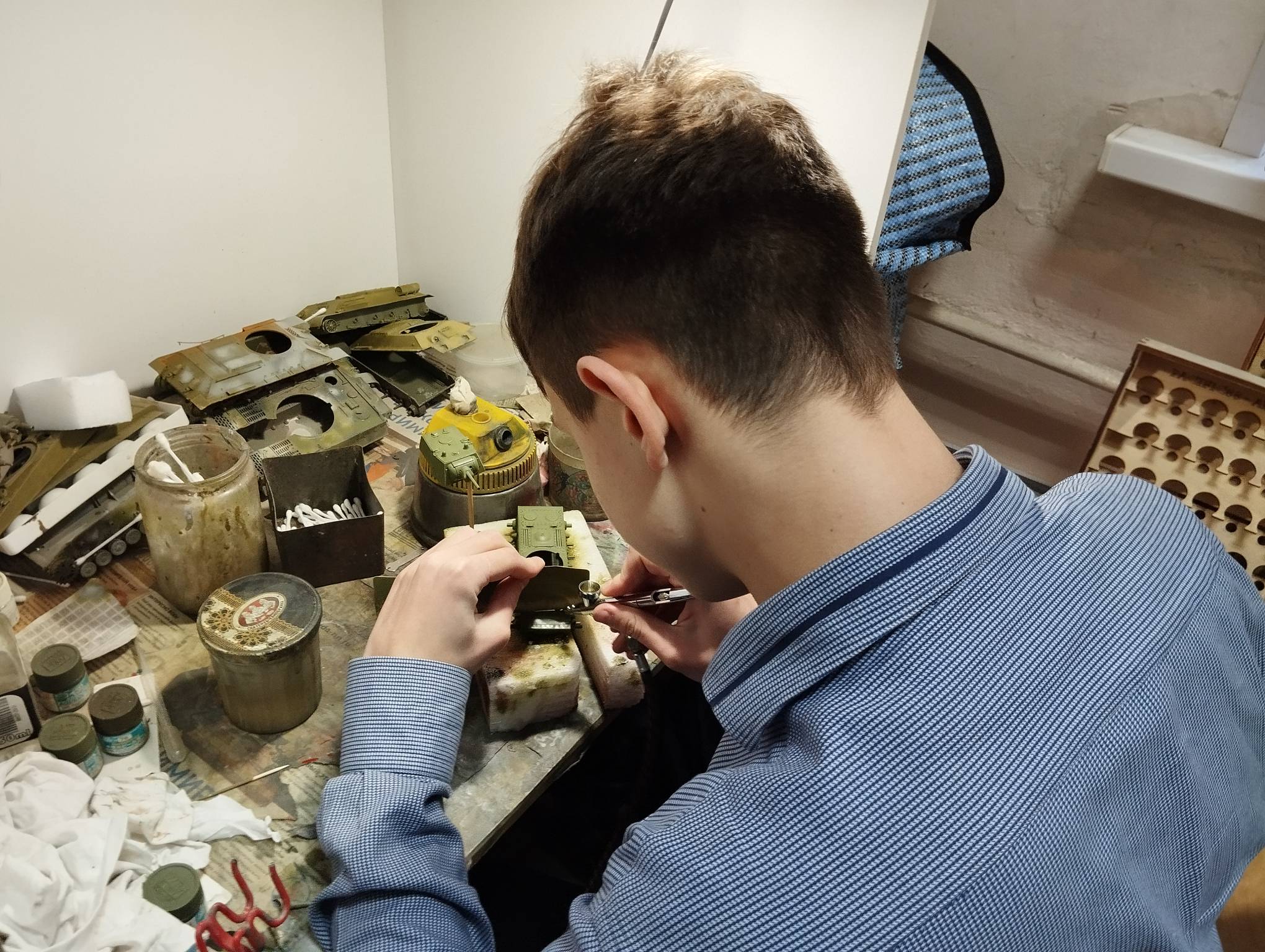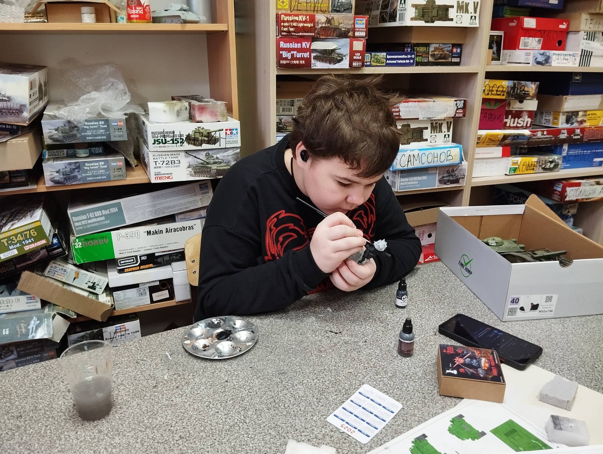 Во вторник занимались, вручил Мише две награды с Минимакса. Первое участие в конкурсе - 1 место в бронетехнике 1/48 и 2 место в автомобилях 1/43 и менее в категории 11 лет и младше. Отличный результат.
