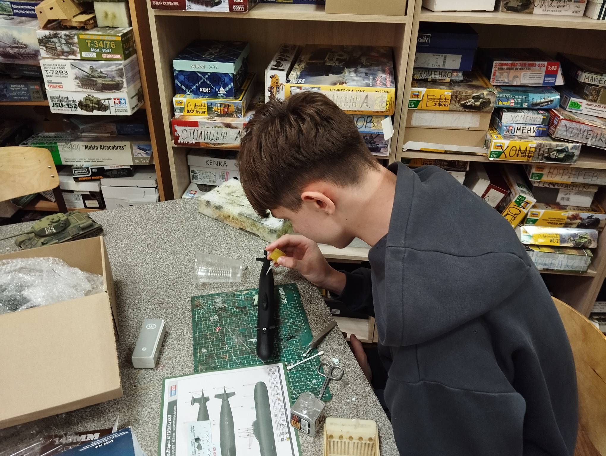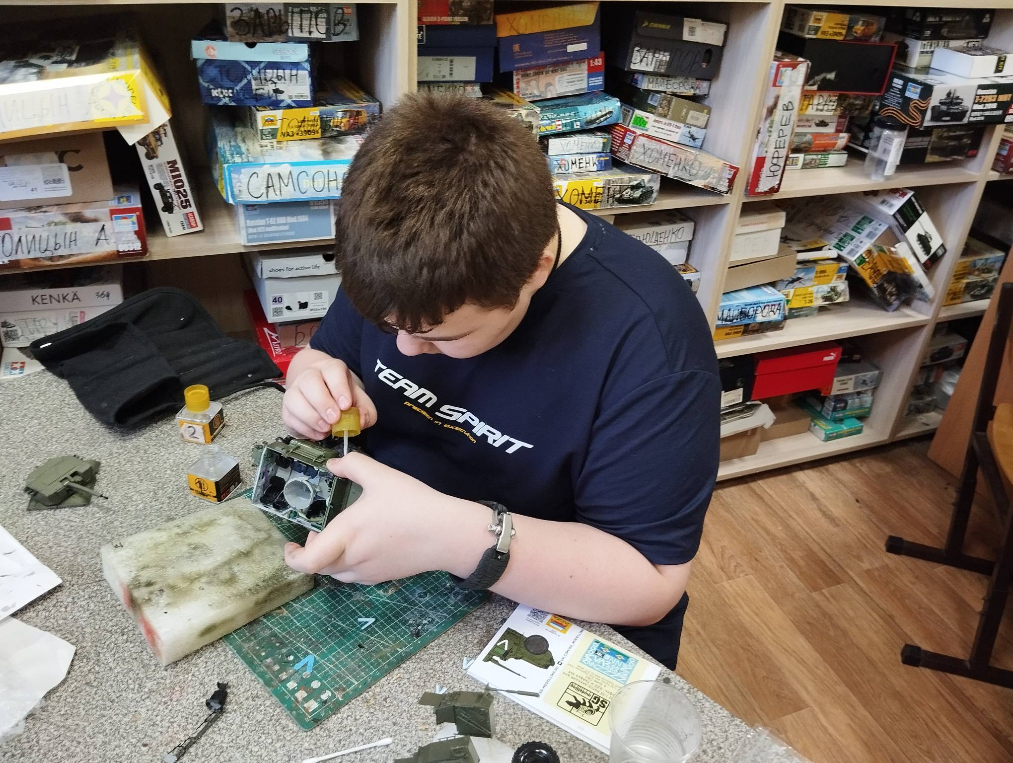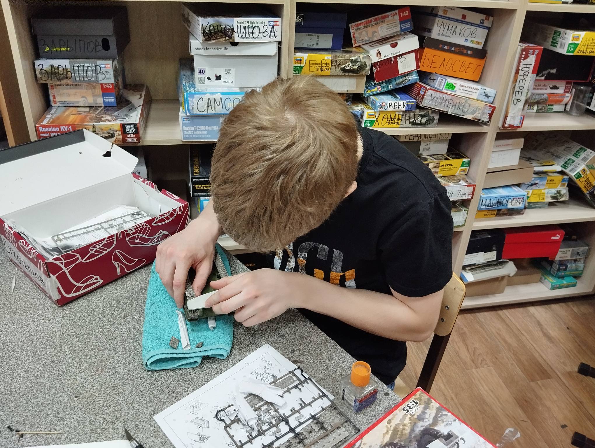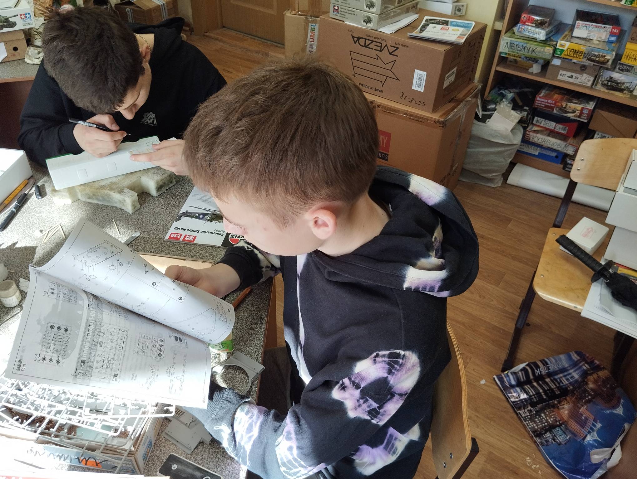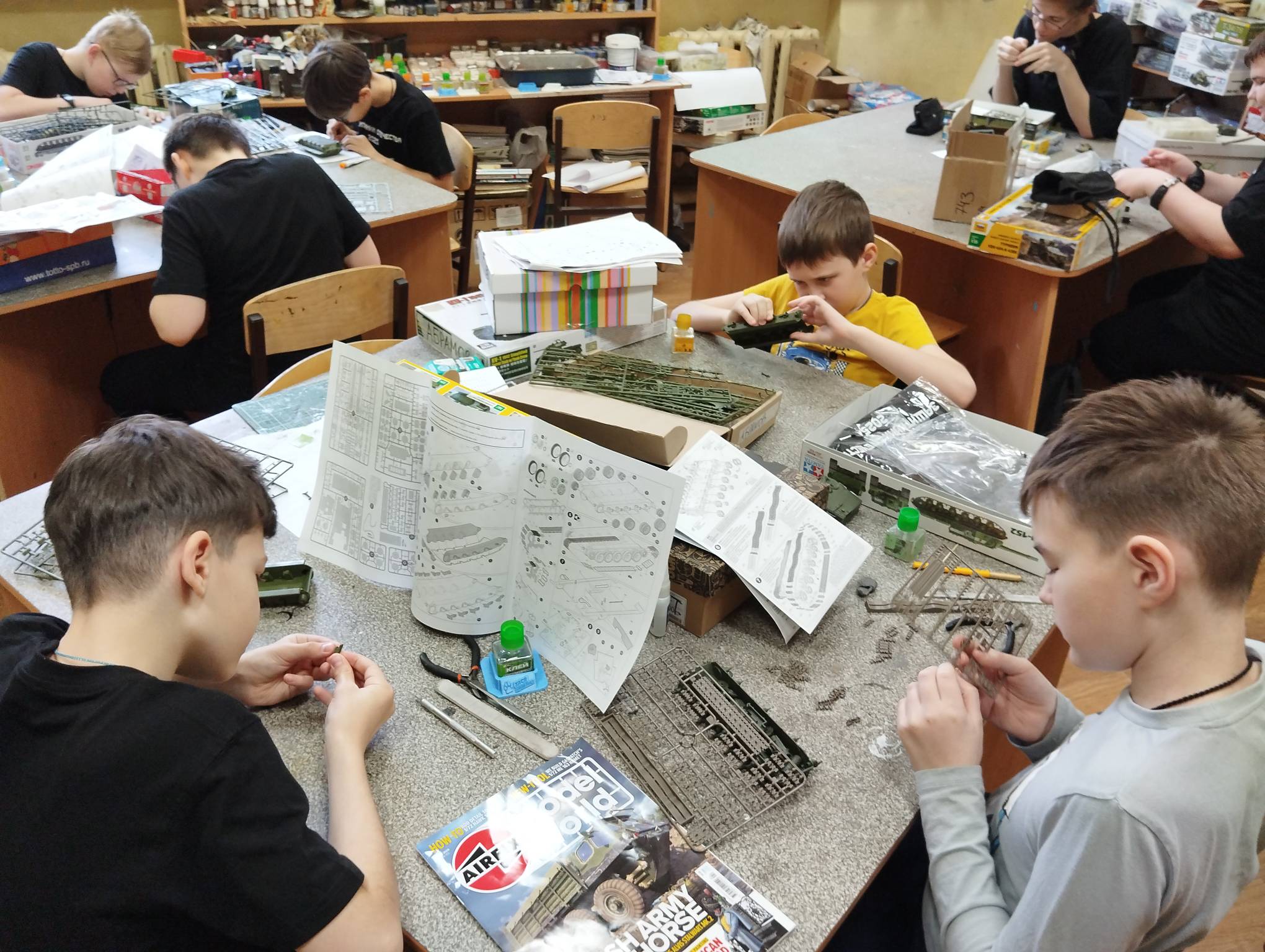 В субботу весь день занимались. Все стараются успеть доделать модели к нашей выставке в Нижнем Новгороде, ведь уже меньше месяца осталось.