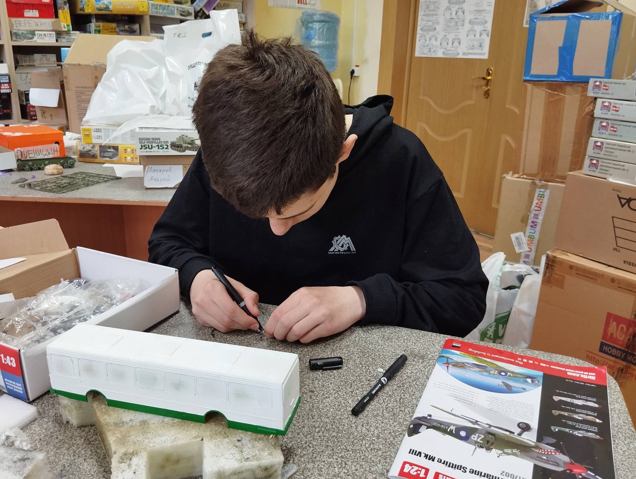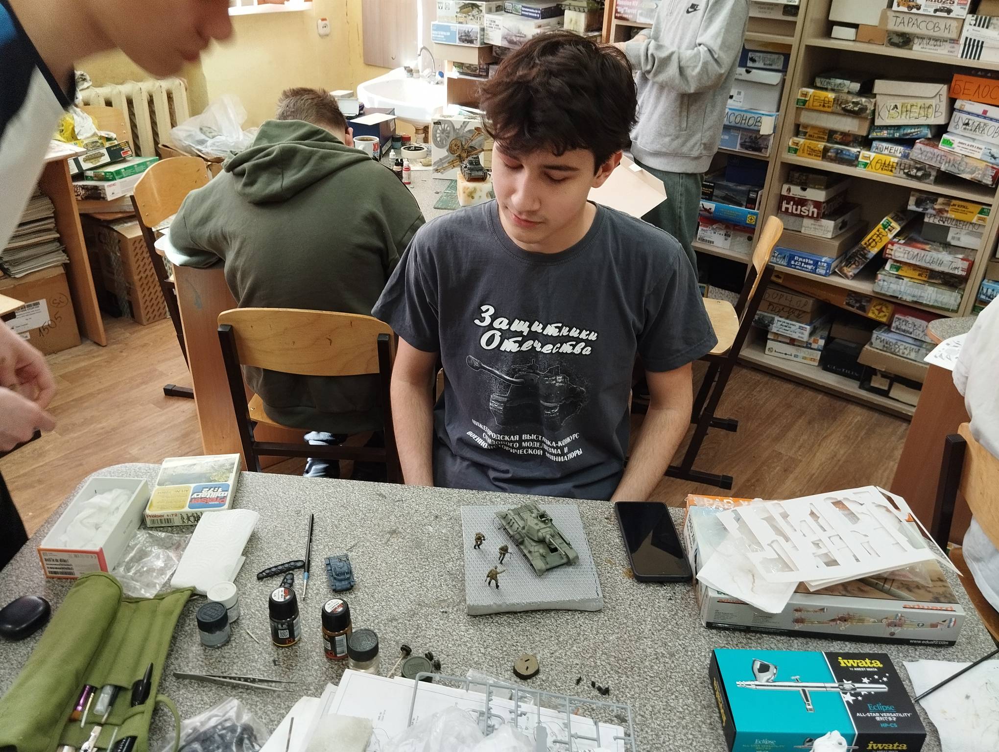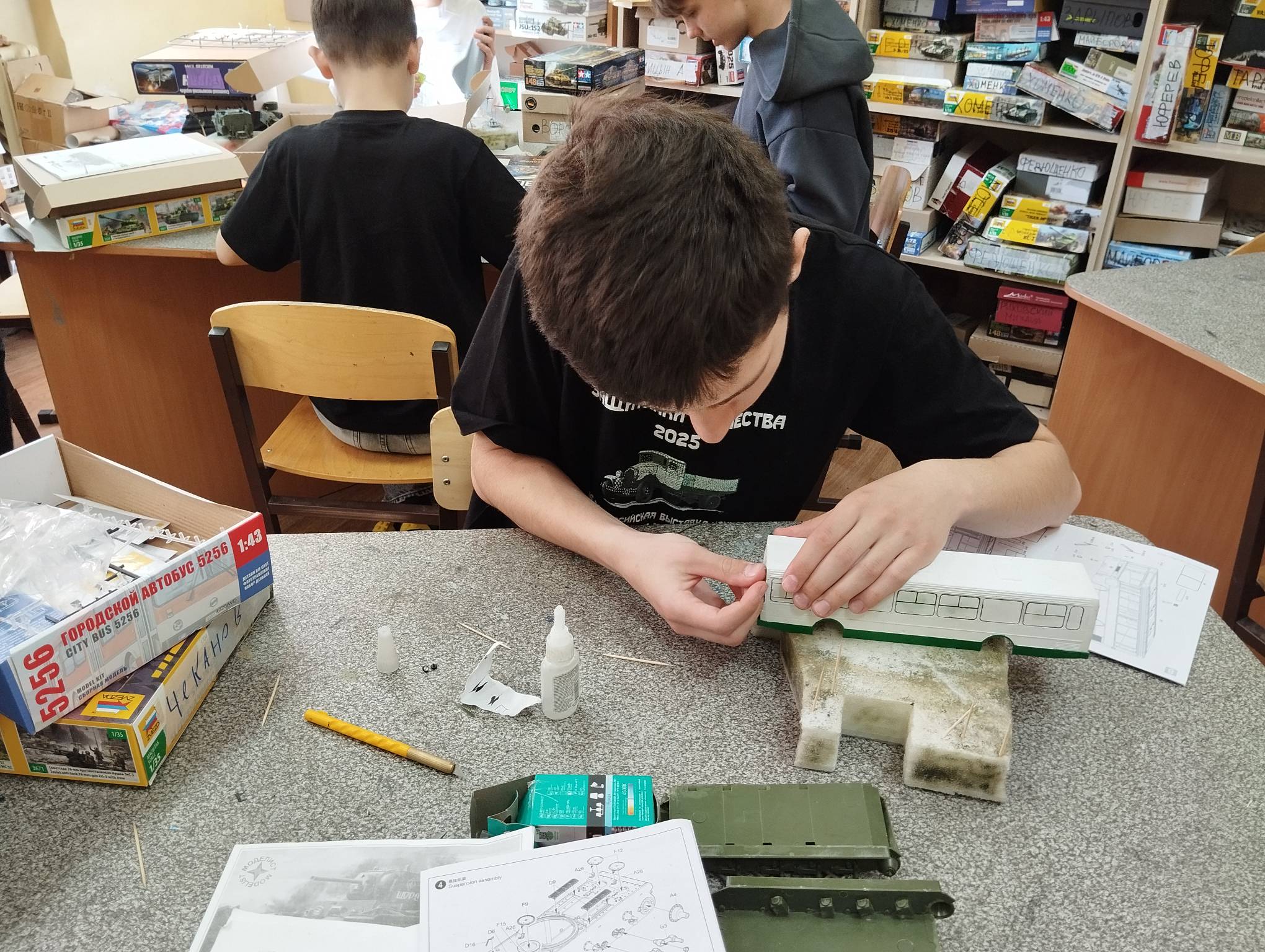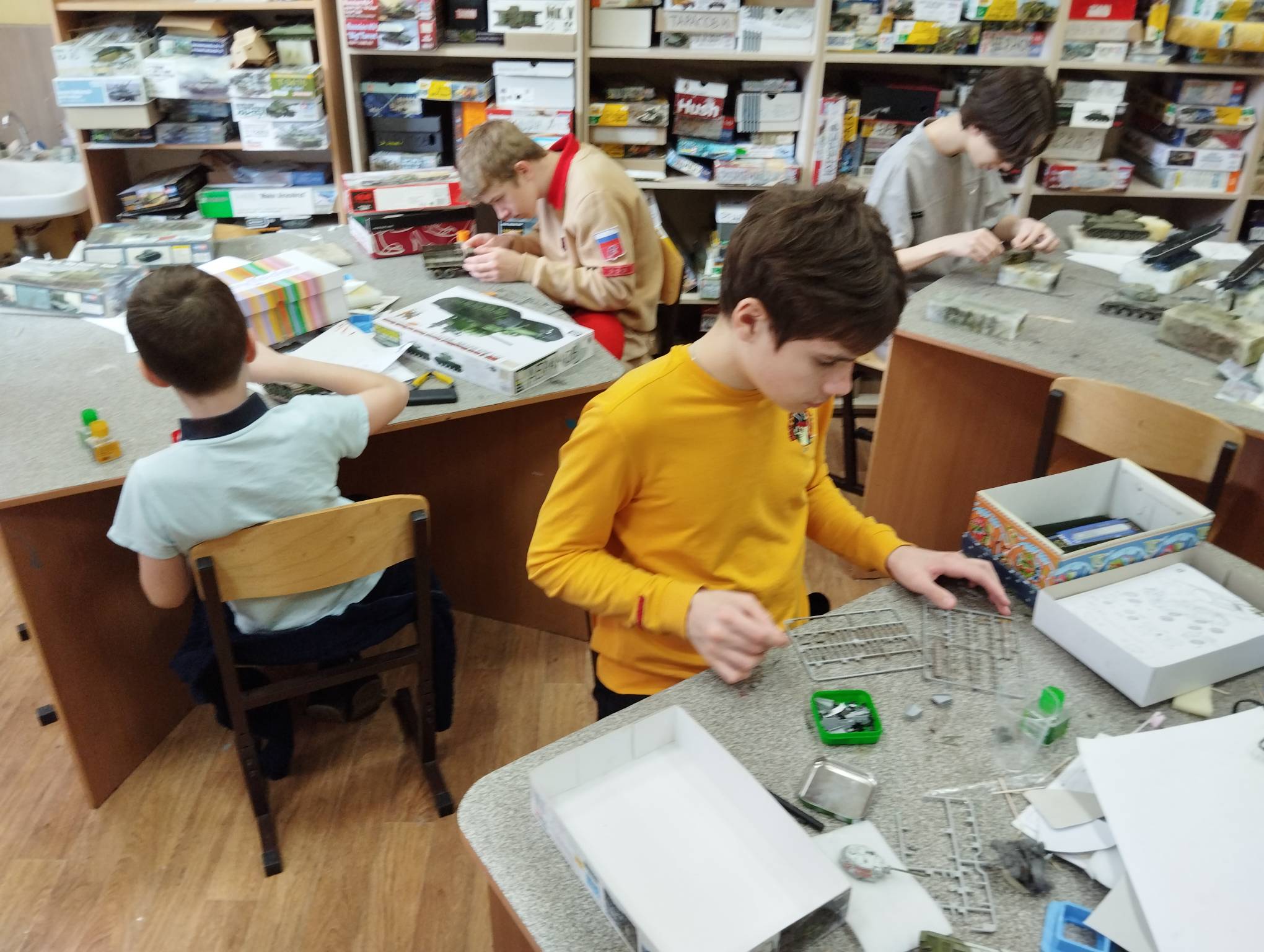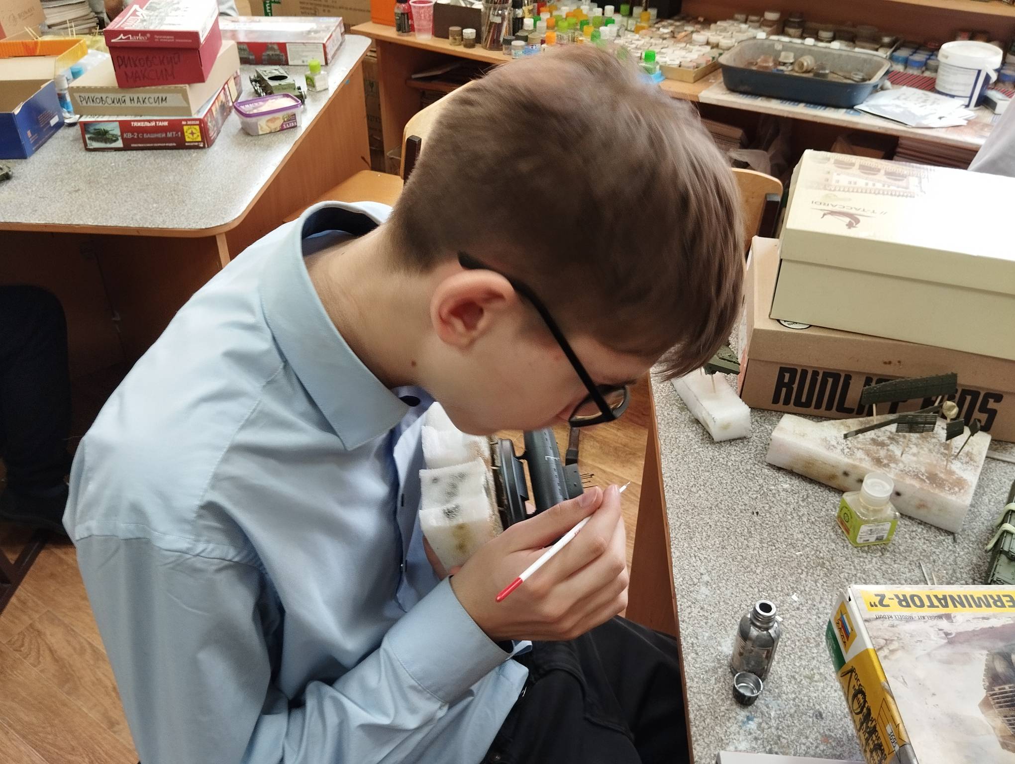 В субботу весь день занимались. Все стараются успеть доделать модели к нашей выставке в Нижнем Новгороде, ведь уже меньше месяца осталось.
