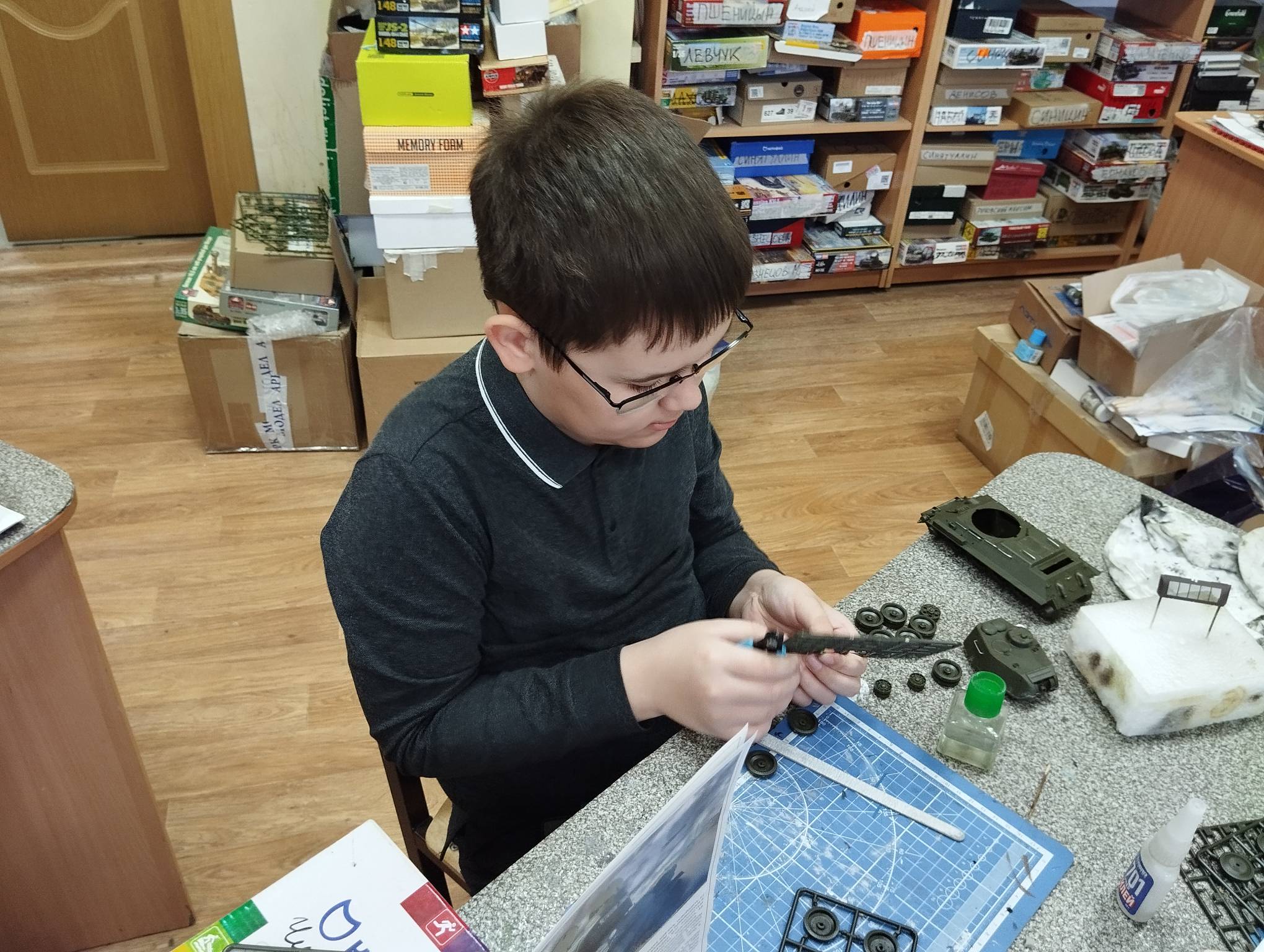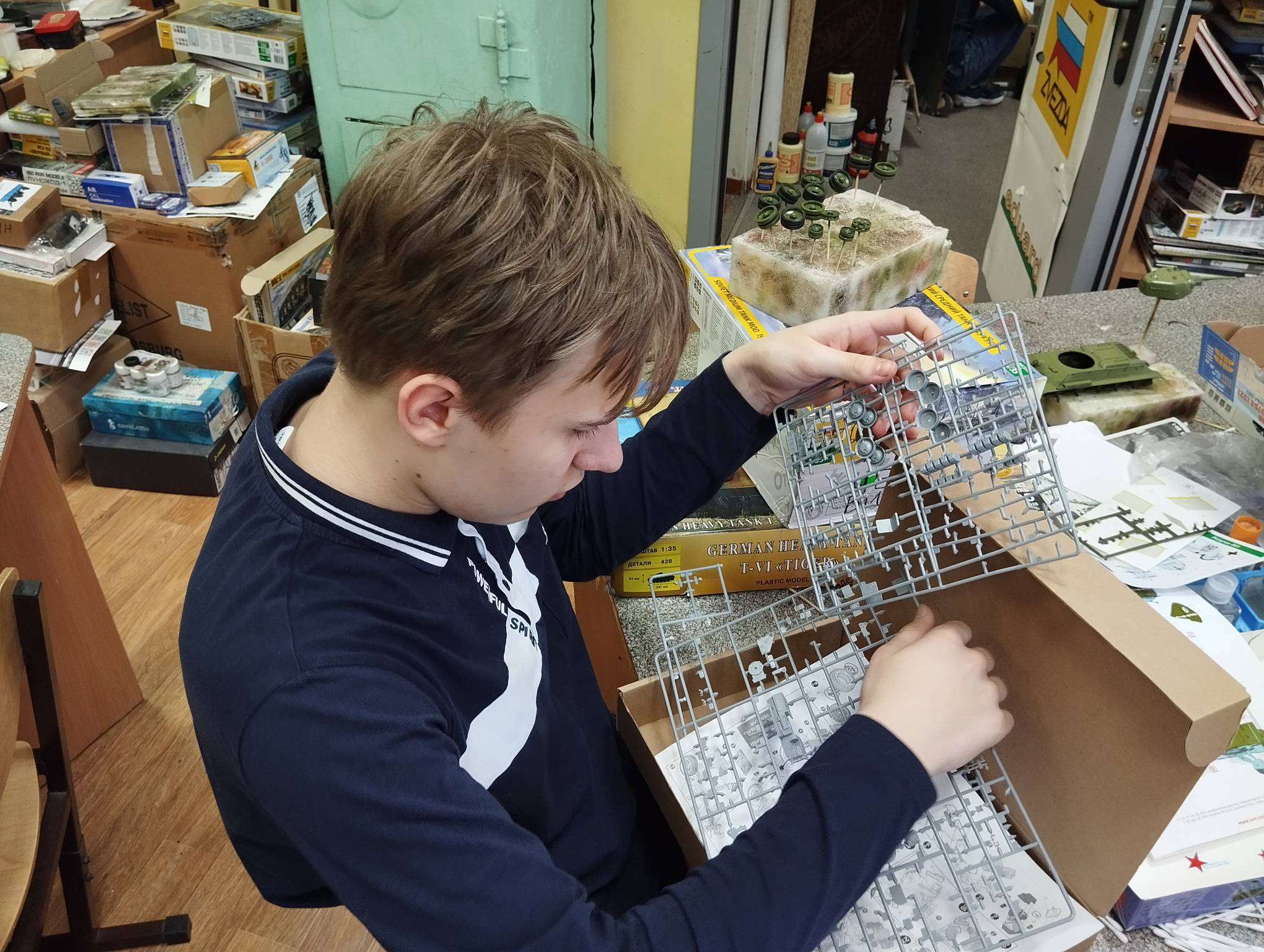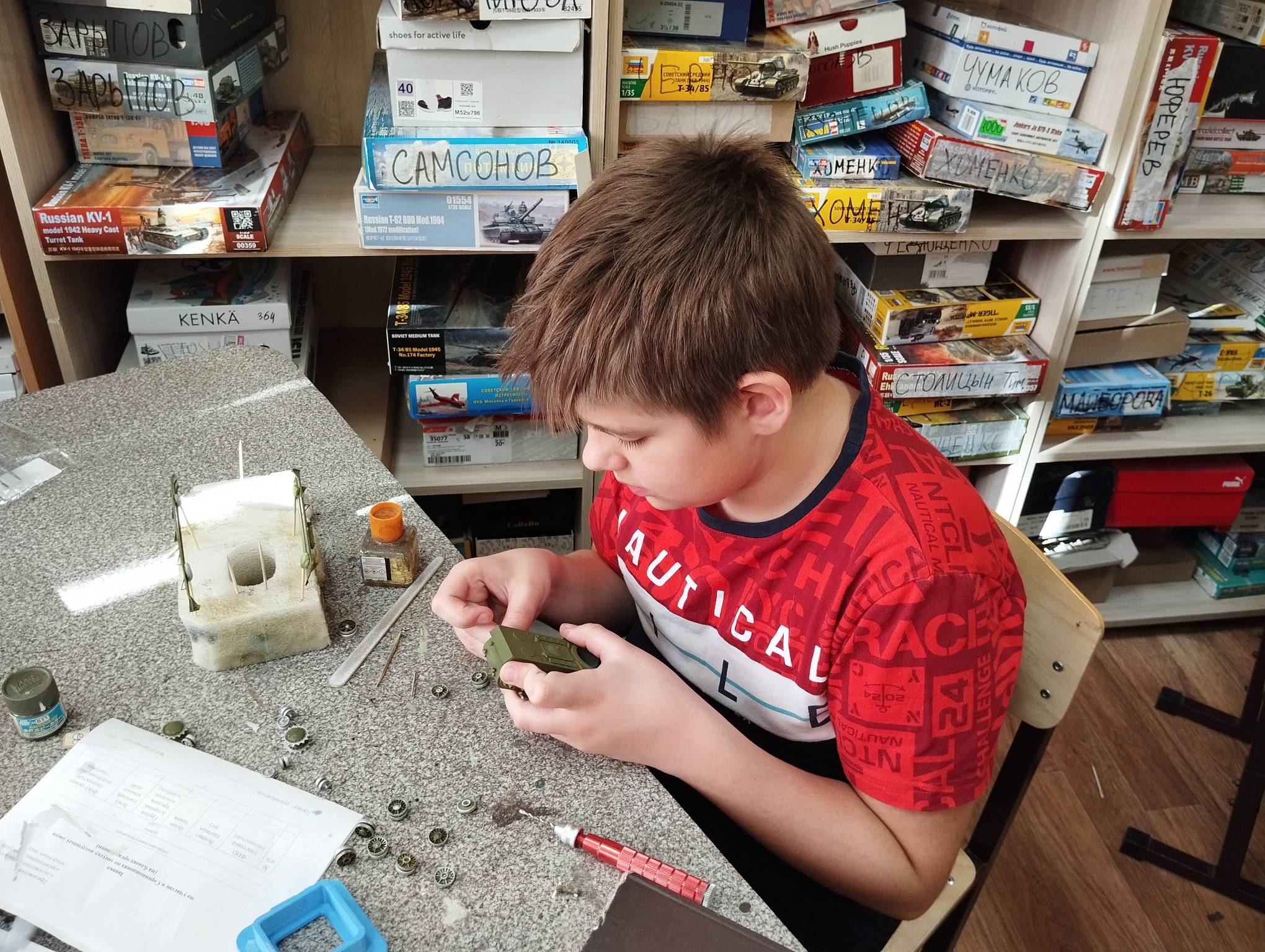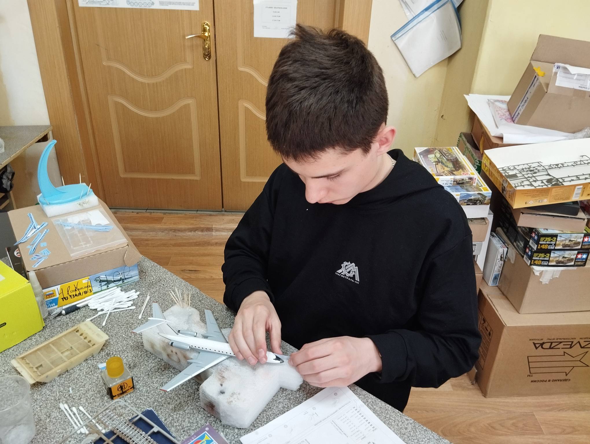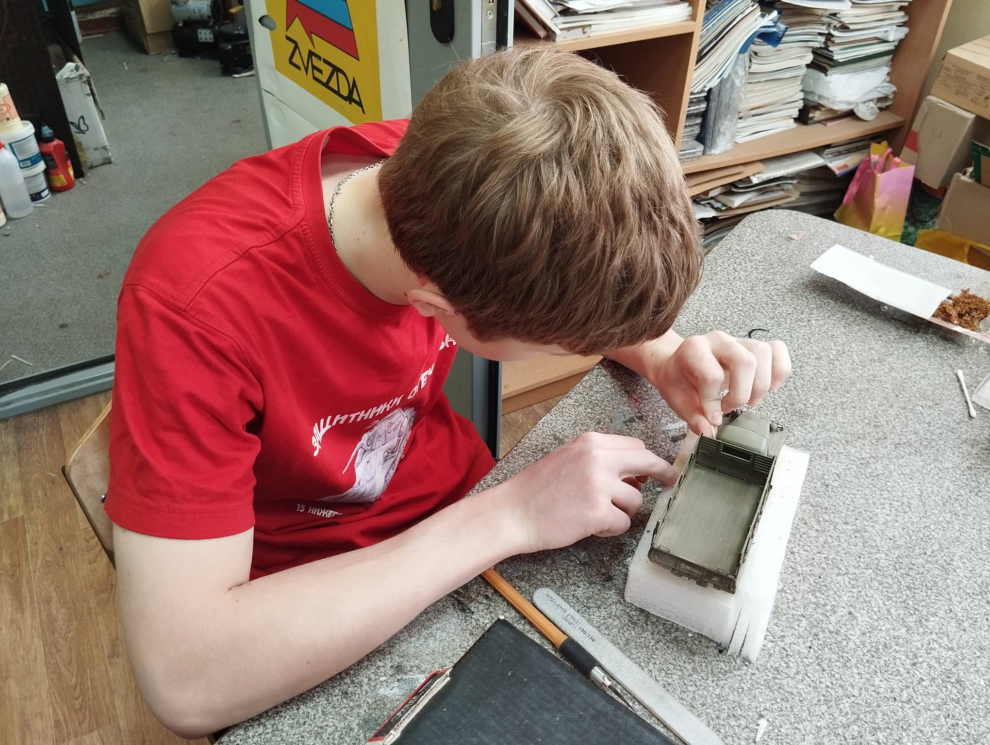 В субботу весь день занимались. Все стараются успеть доделать модели к нашей выставке в Нижнем Новгороде, ведь уже меньше месяца осталось.