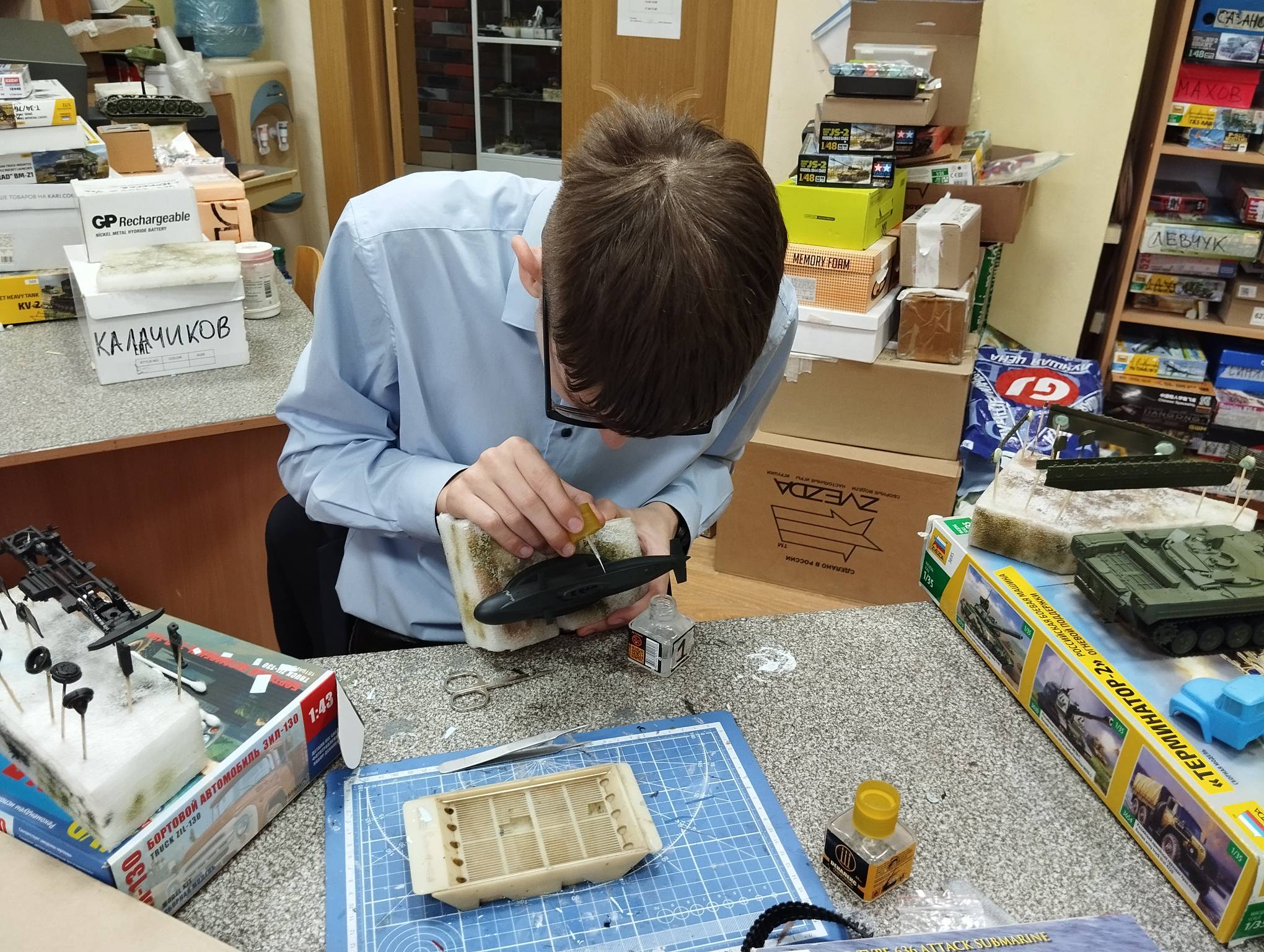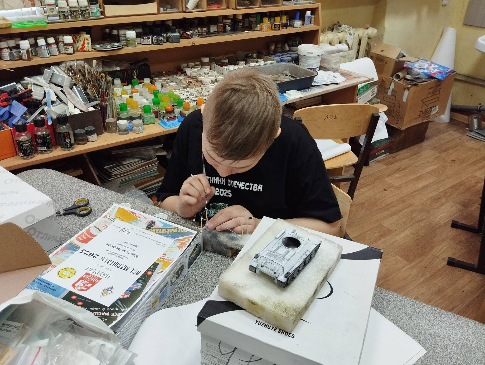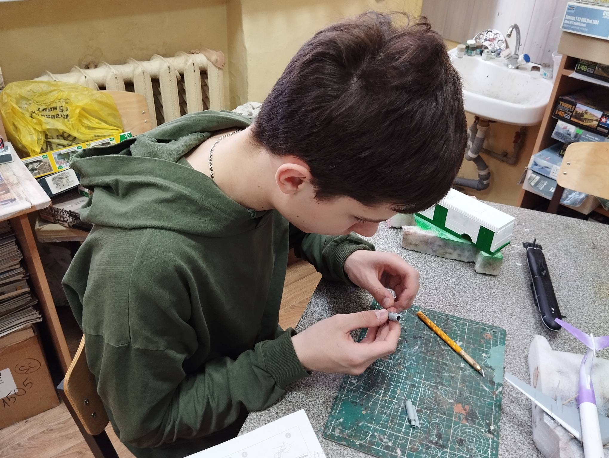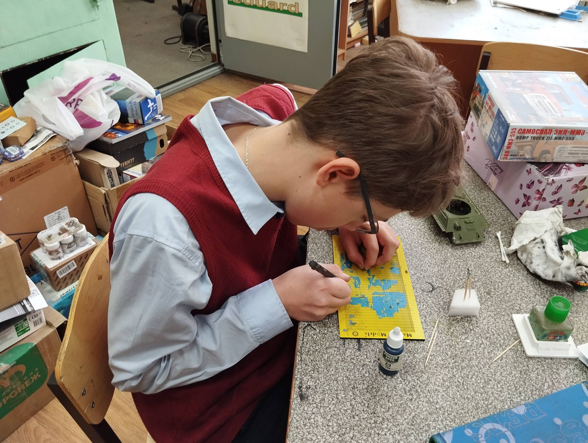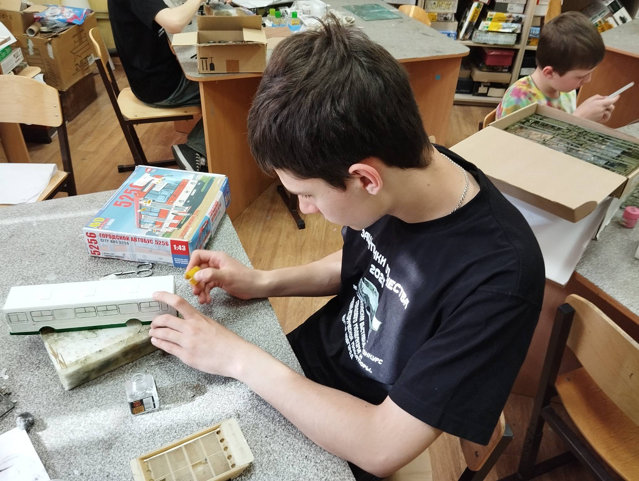 В субботу весь день занимались. Все стараются успеть доделать модели к нашей выставке в Нижнем Новгороде, ведь уже меньше месяца осталось.