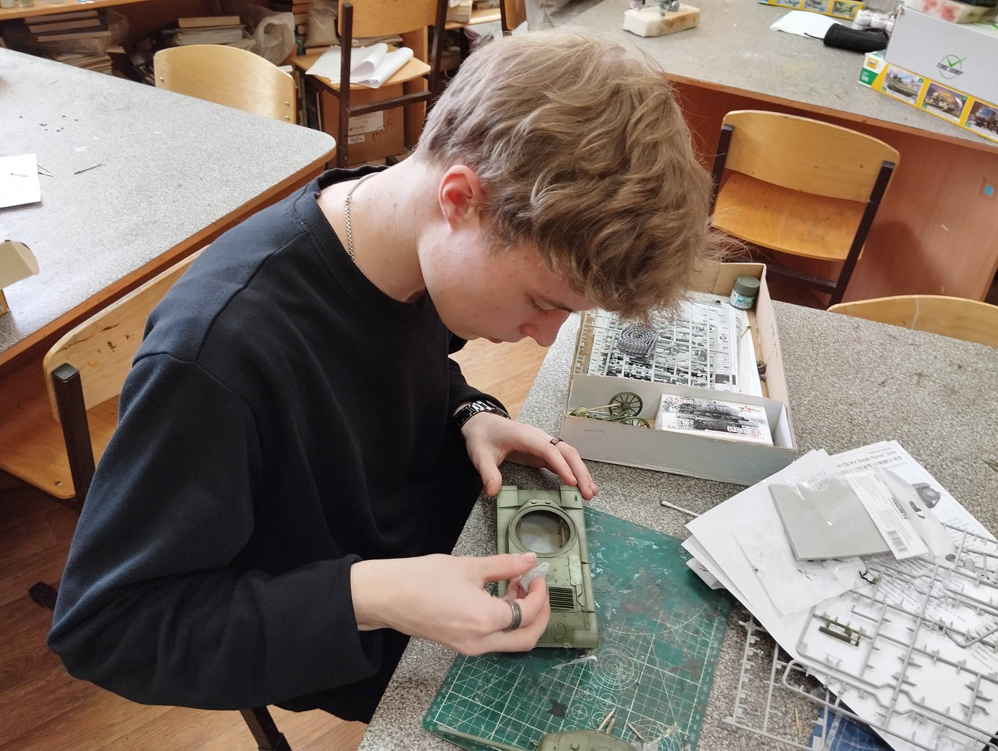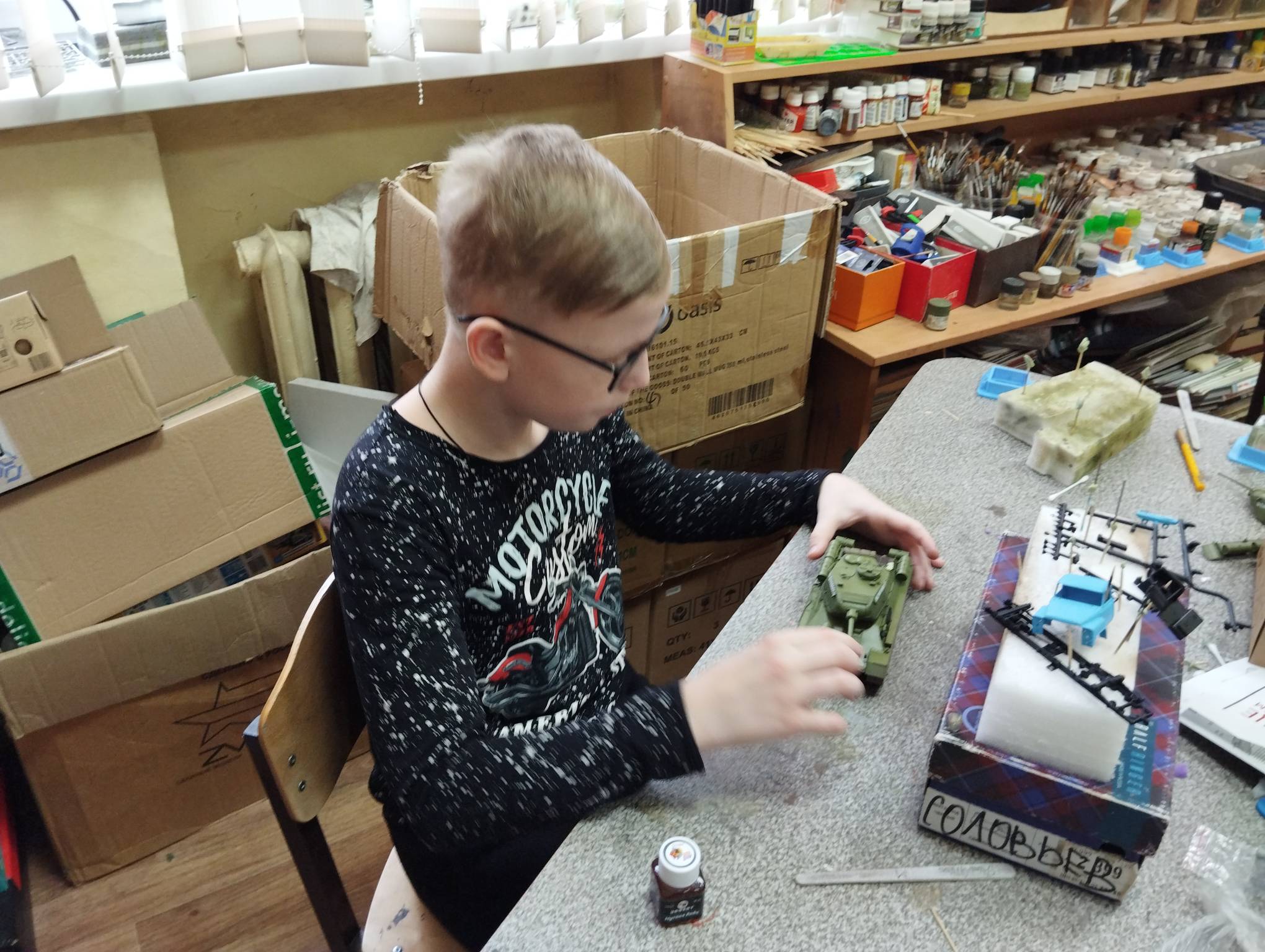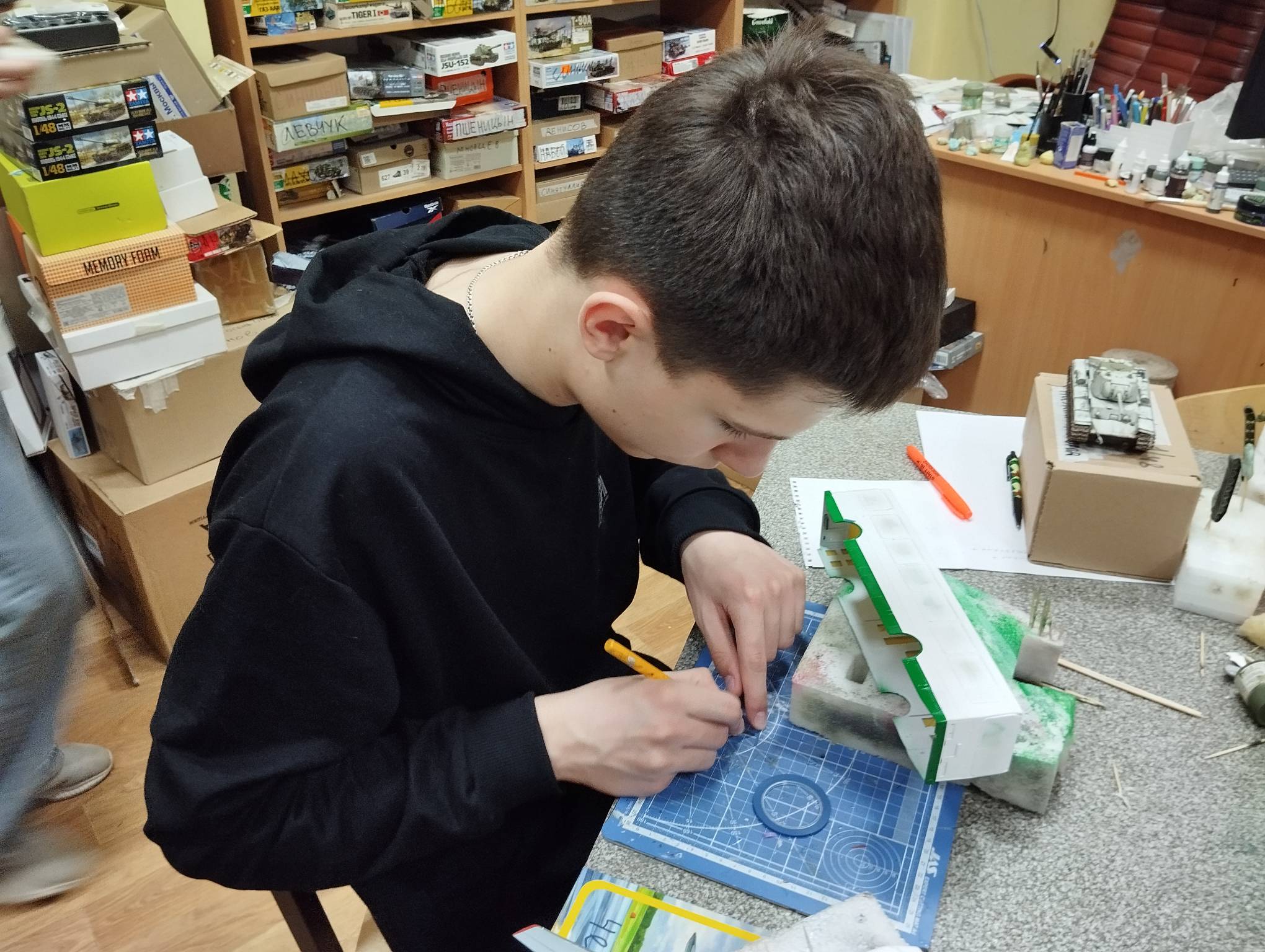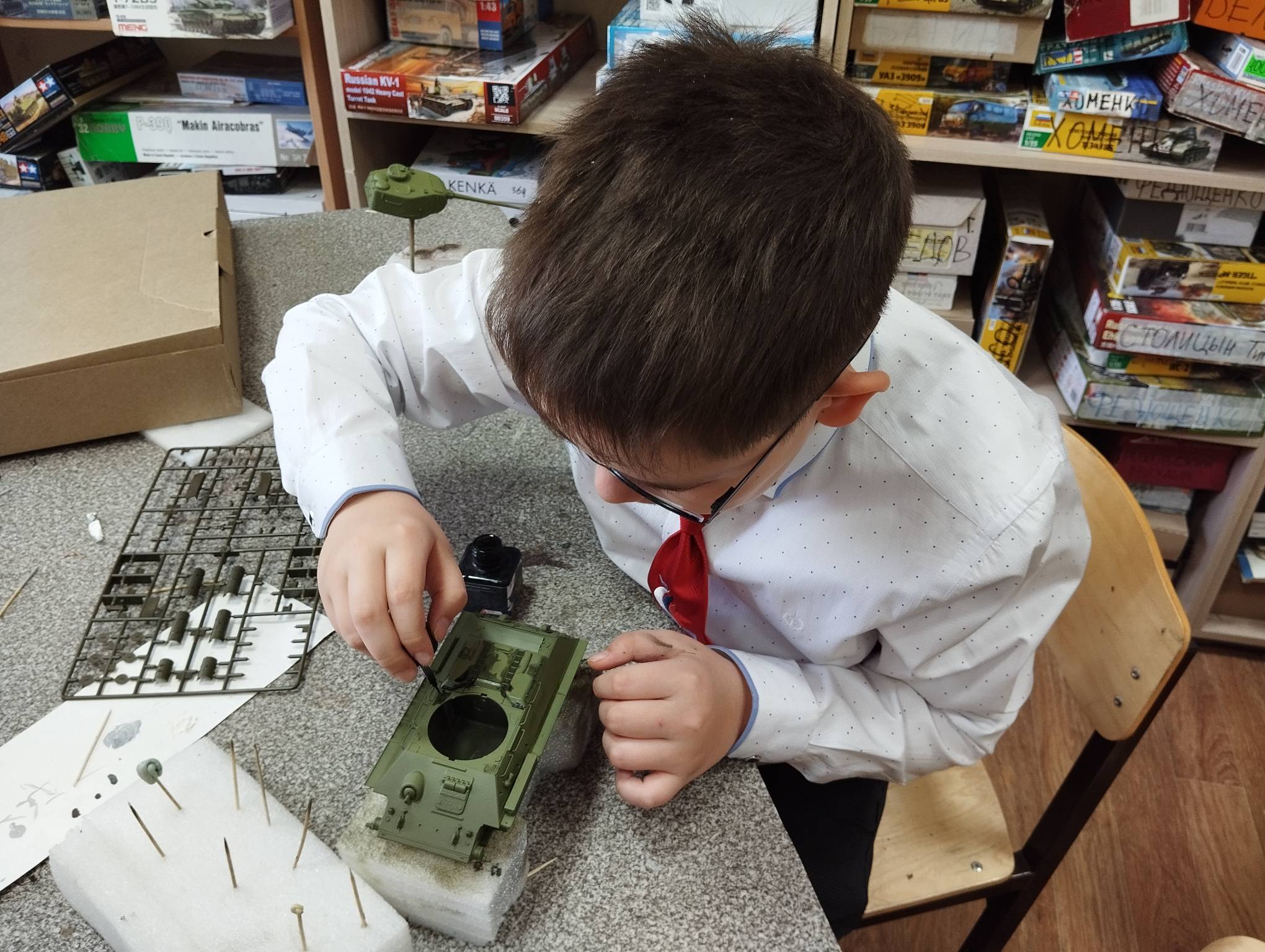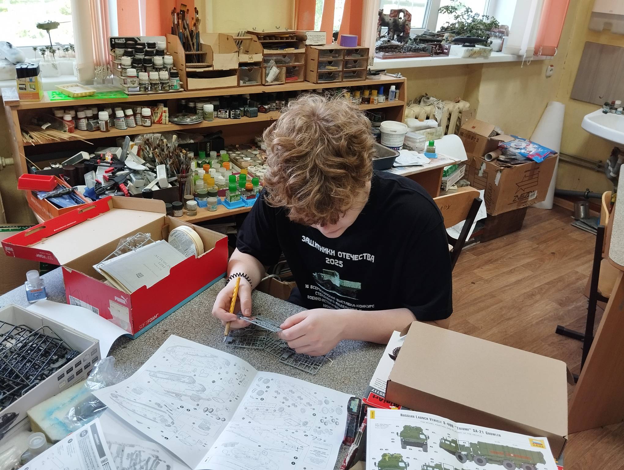 В субботу весь день занимались. Все стараются успеть доделать модели к нашей выставке в Нижнем Новгороде, ведь уже меньше месяца осталось.
