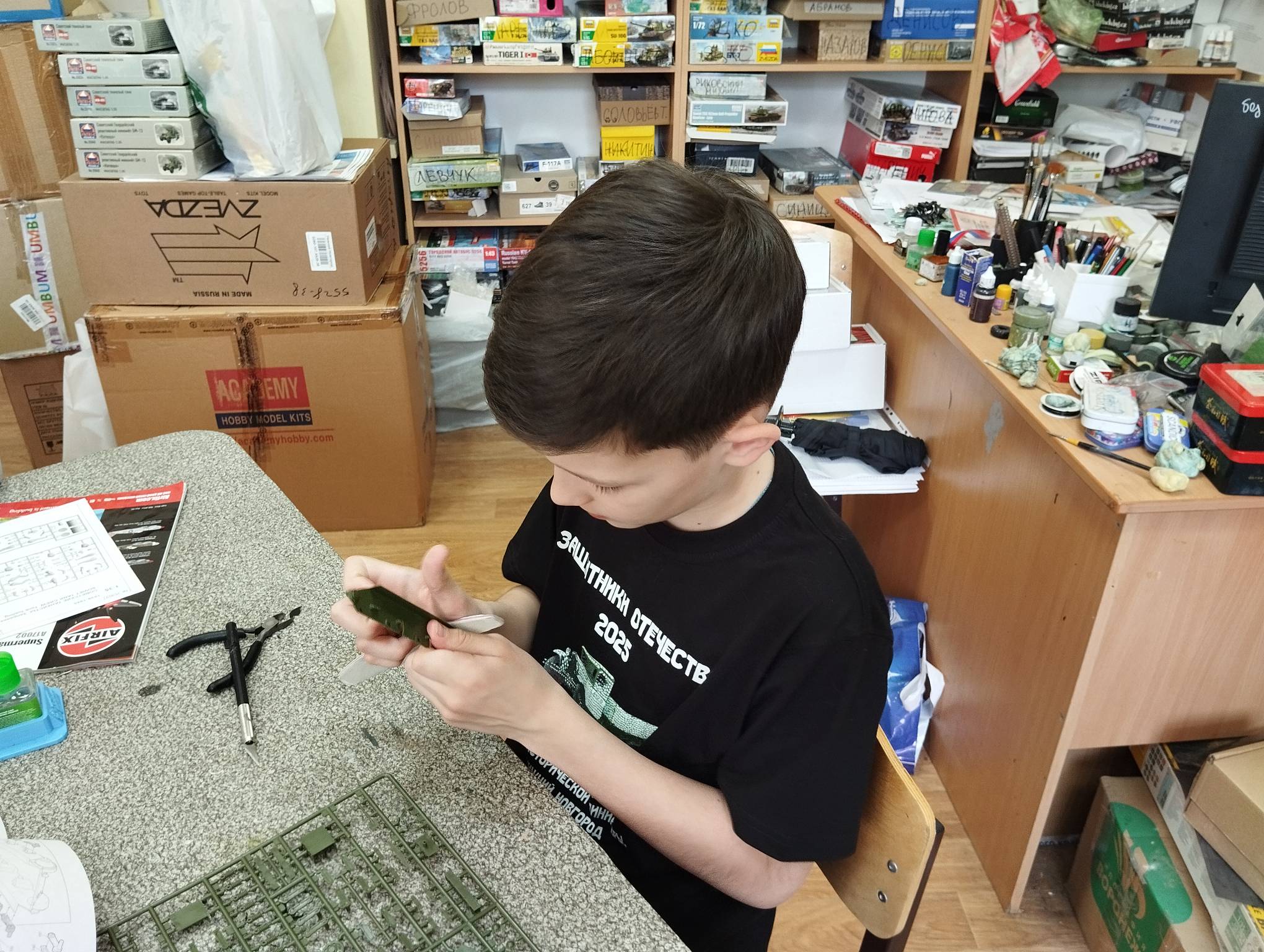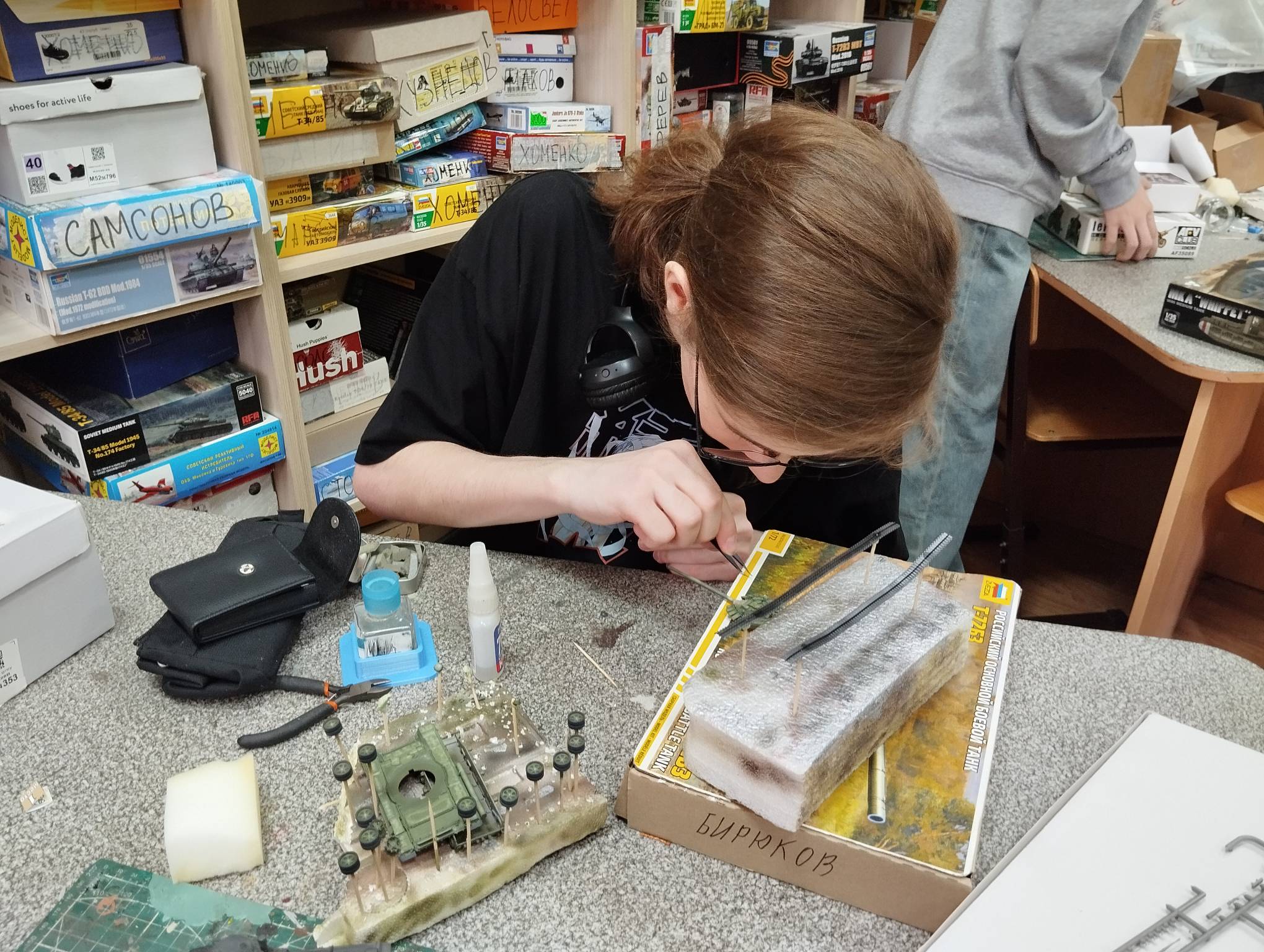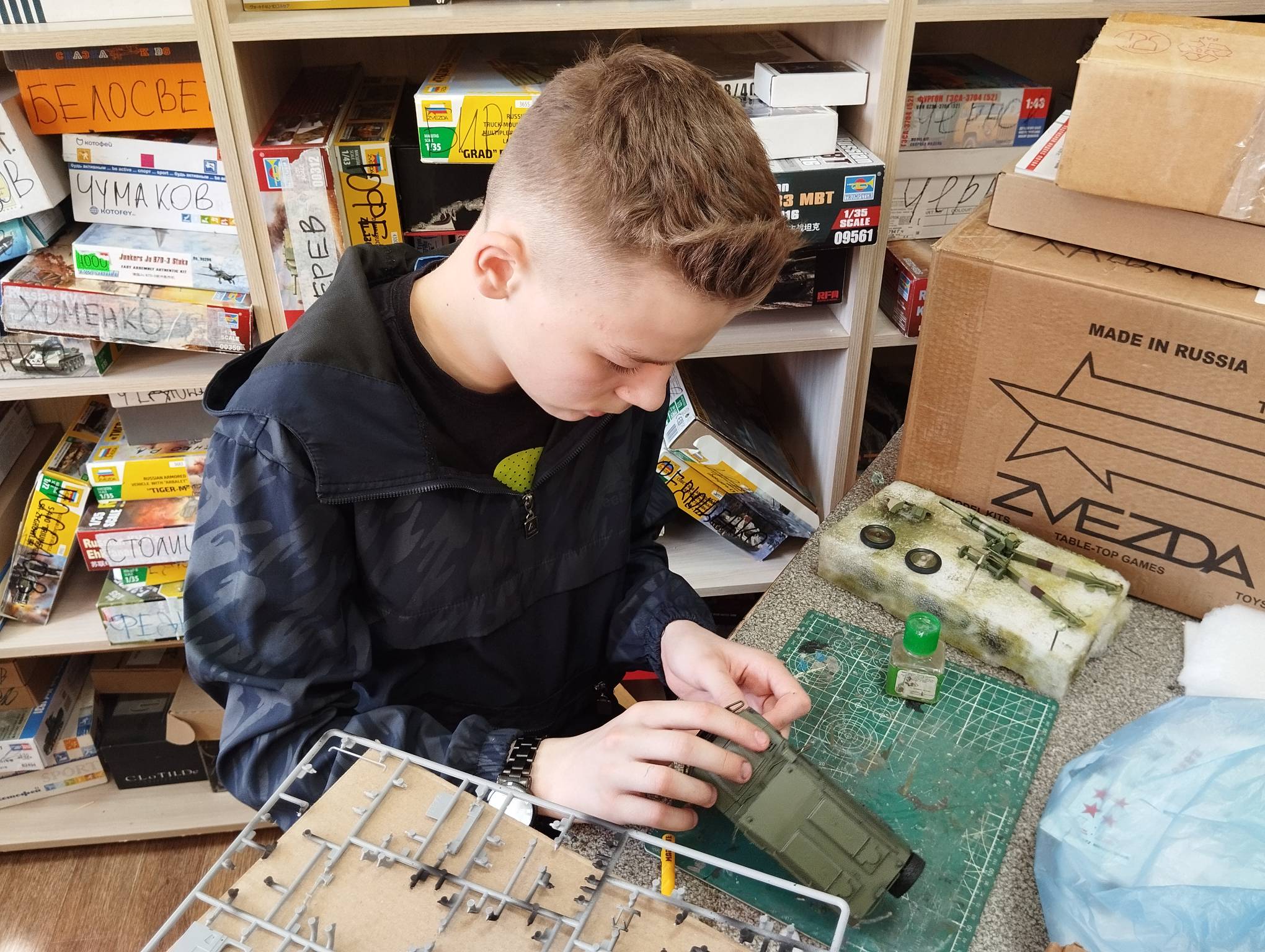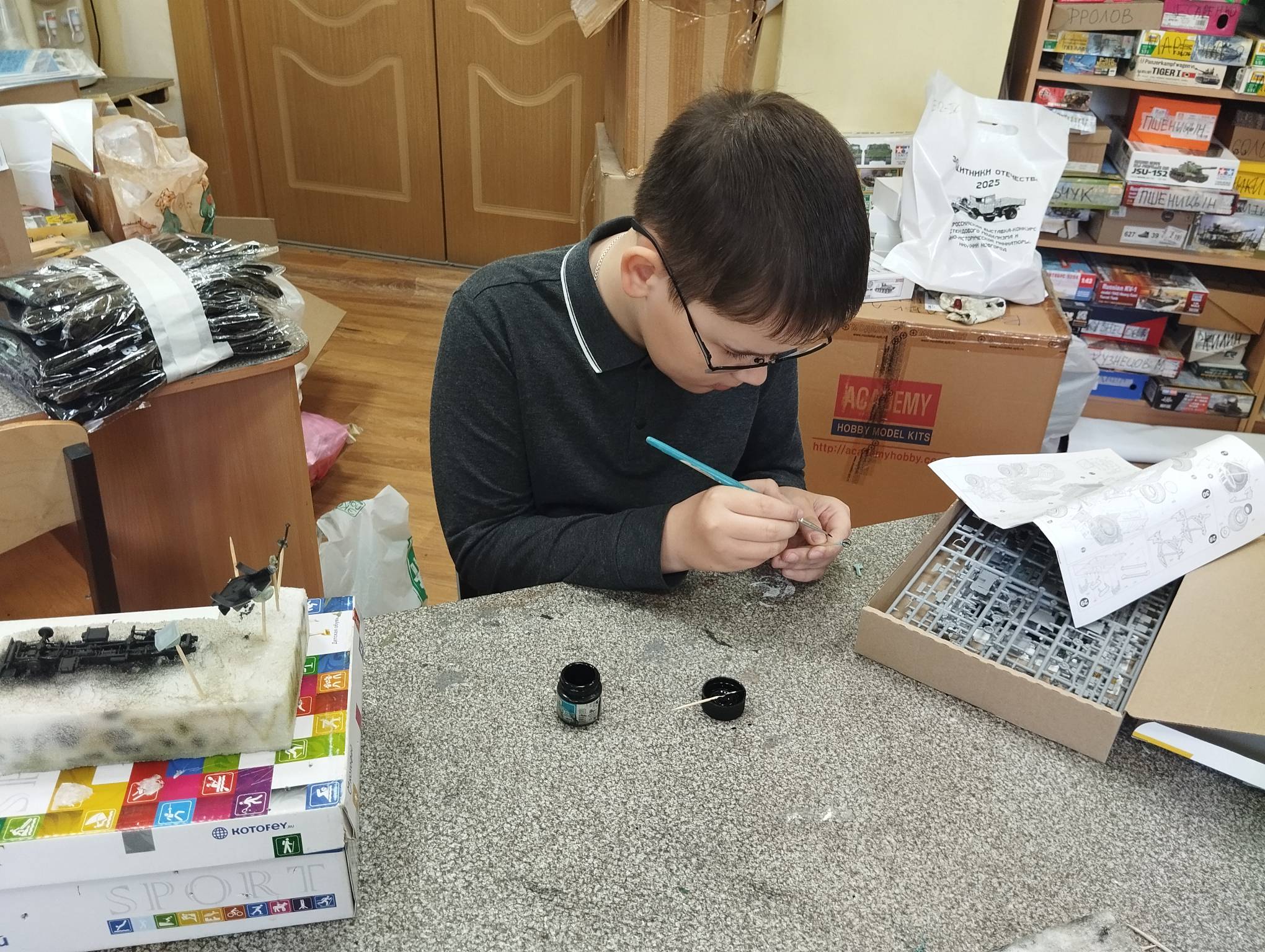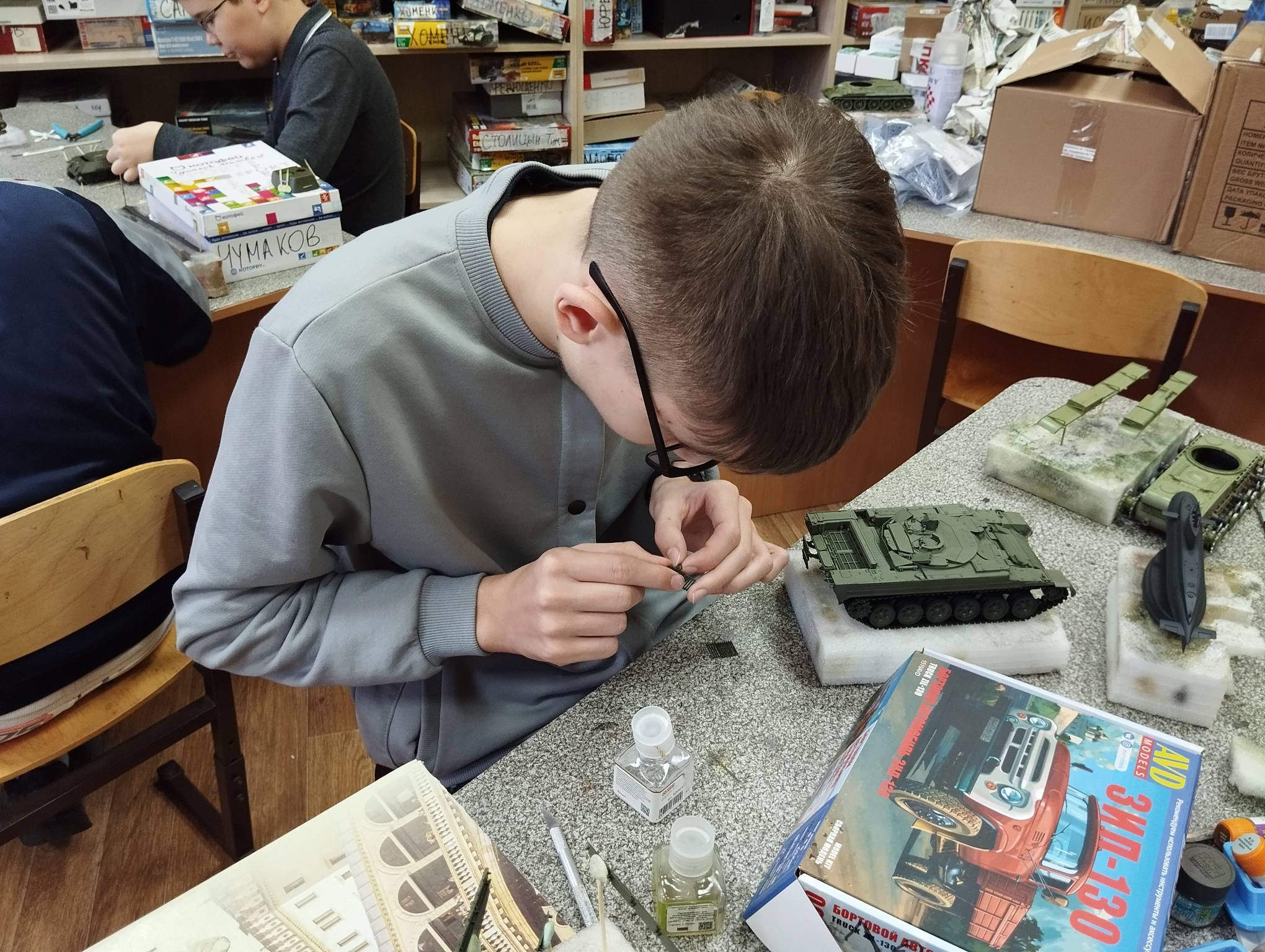 В субботу весь день занимались. Все стараются успеть доделать модели к нашей выставке в Нижнем Новгороде, ведь уже меньше месяца осталось.