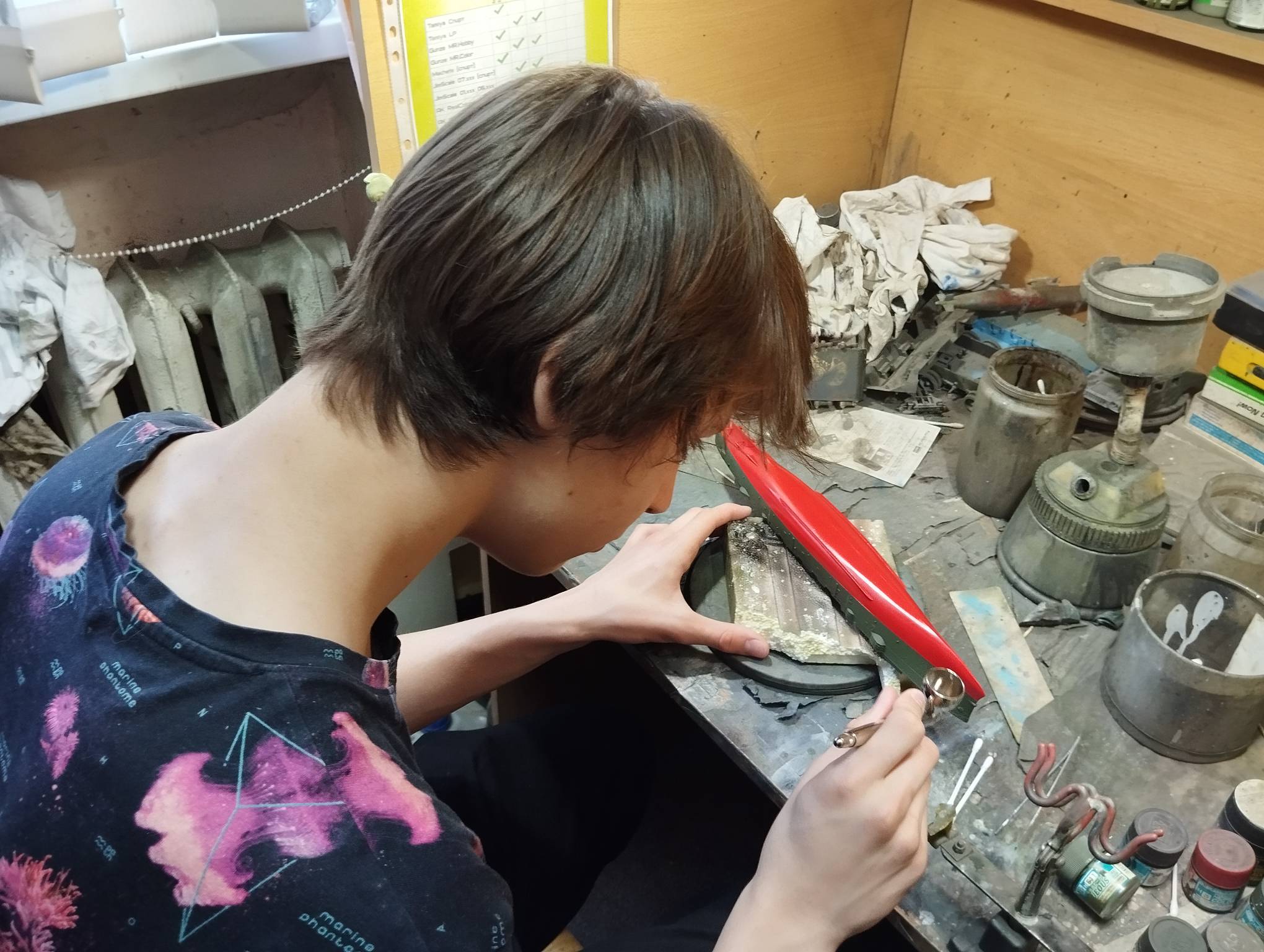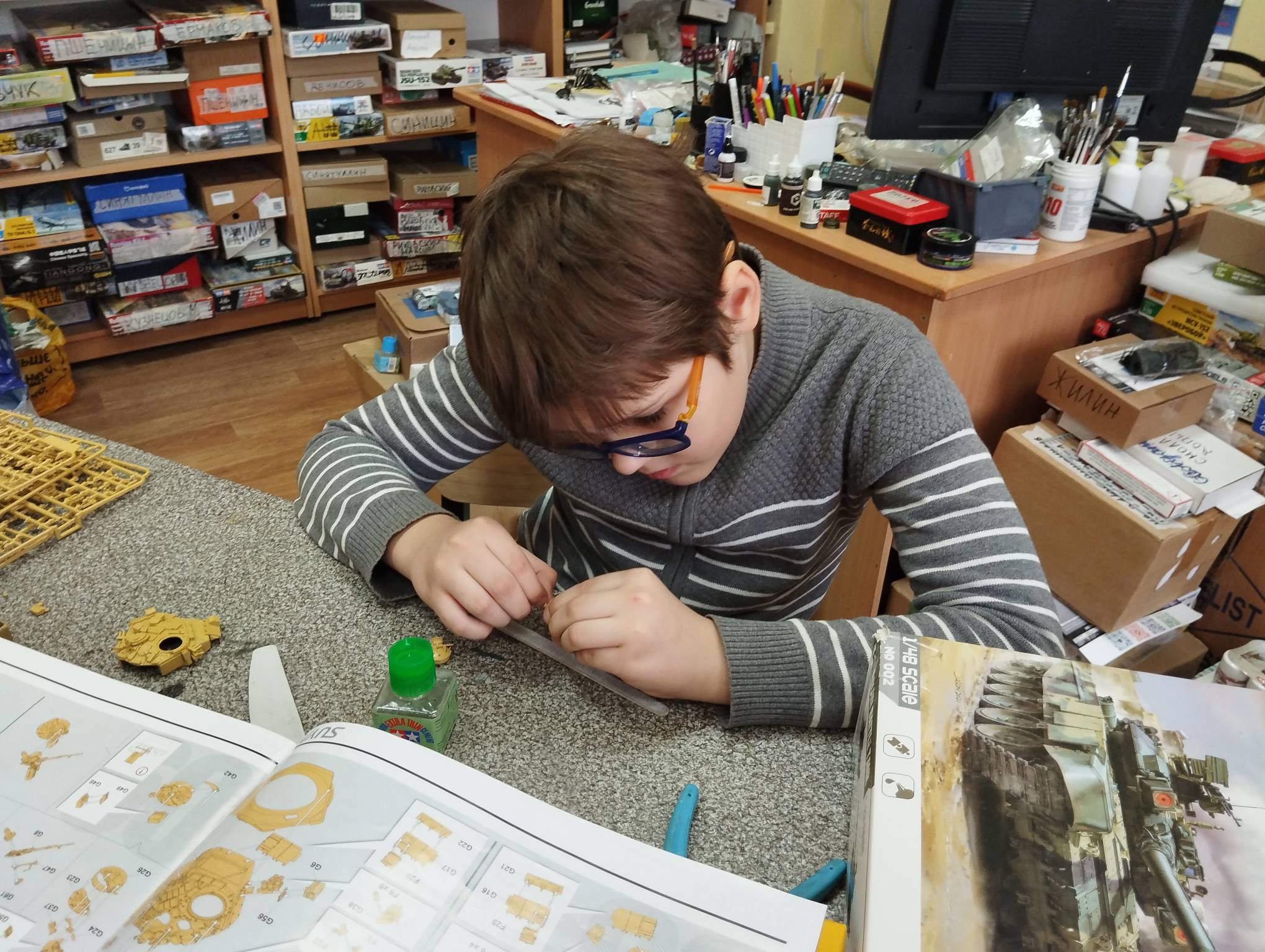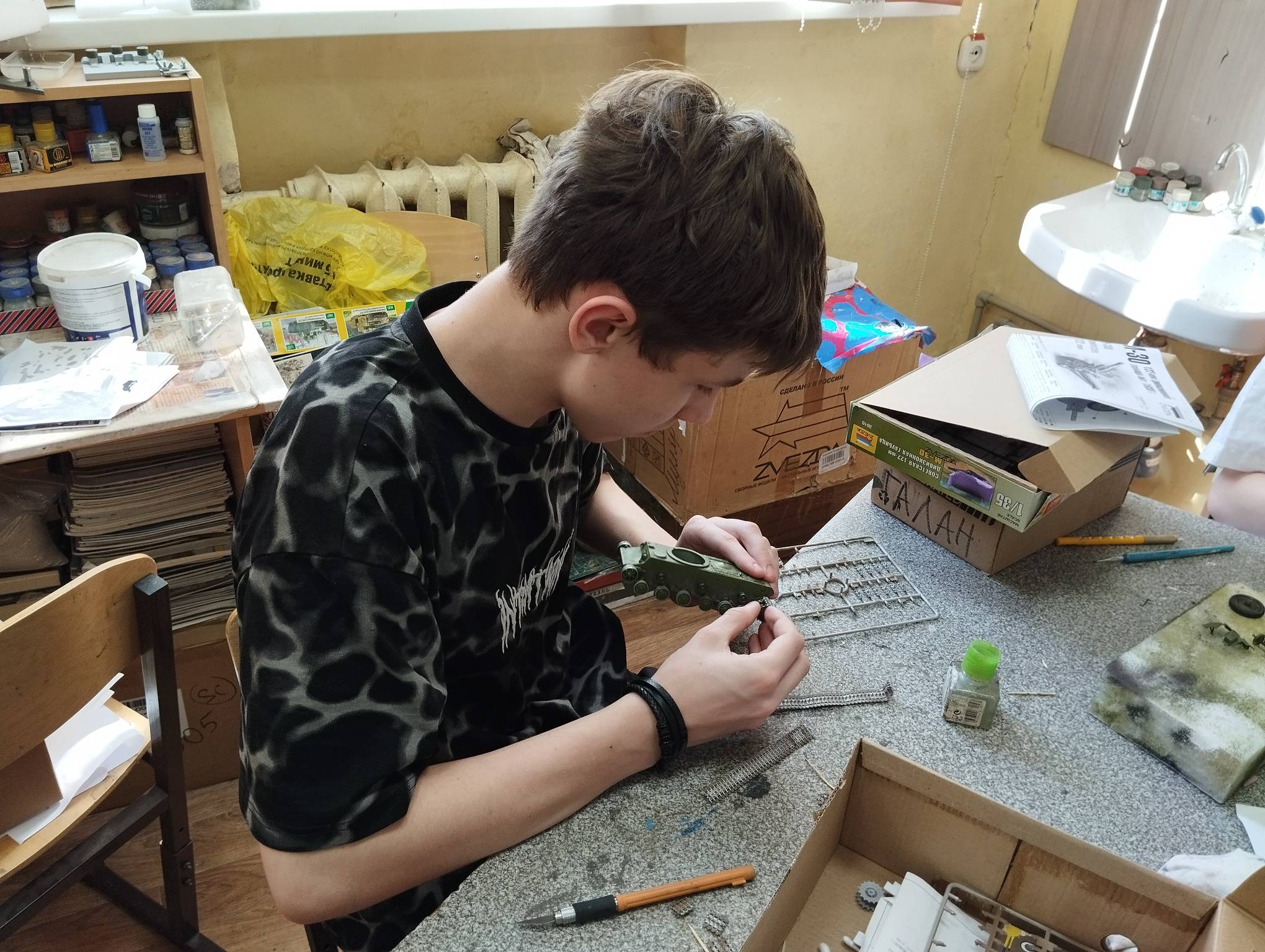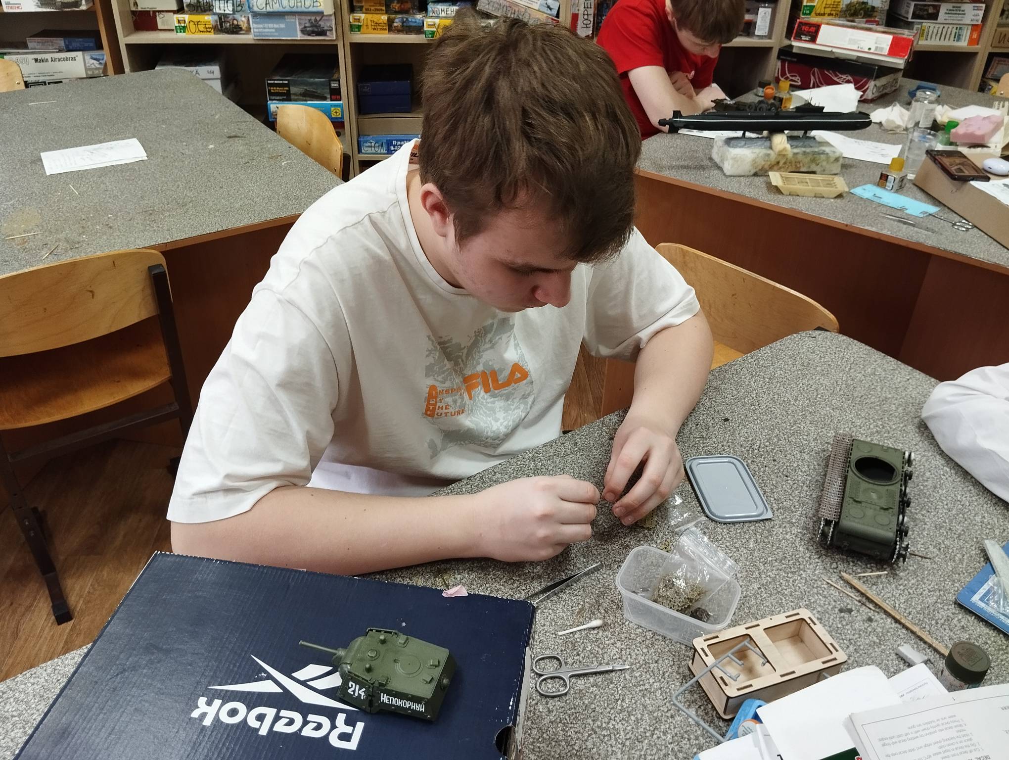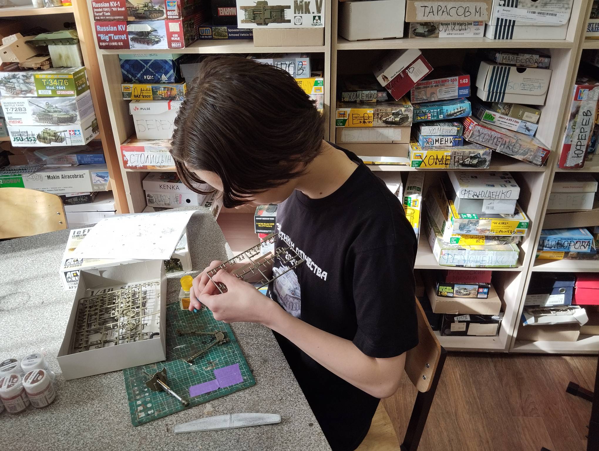 В субботу весь день занимались. Все стараются успеть доделать модели к нашей выставке в Нижнем Новгороде, ведь уже меньше месяца осталось.