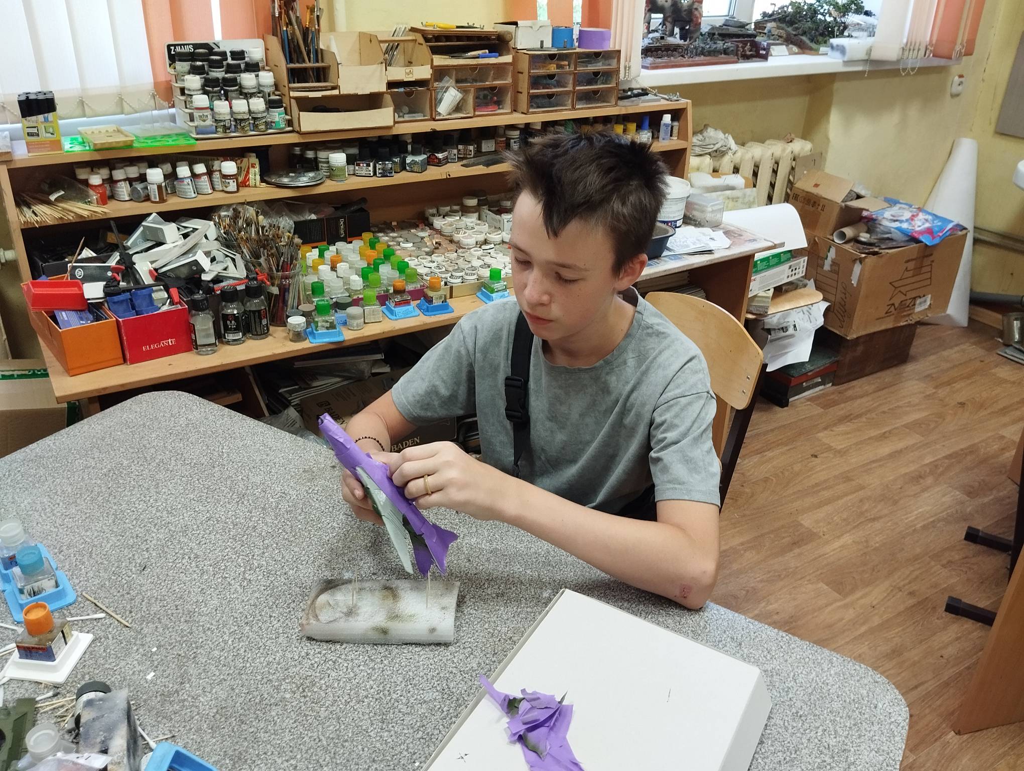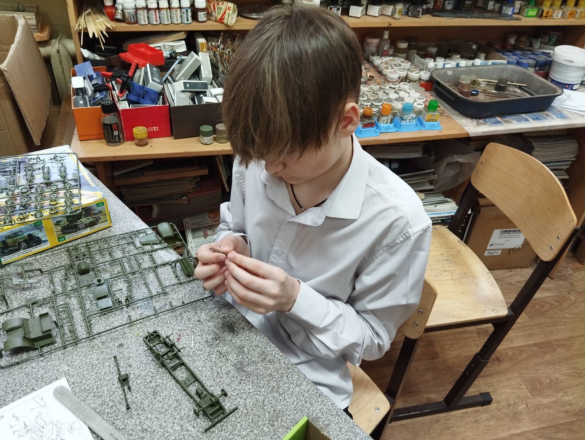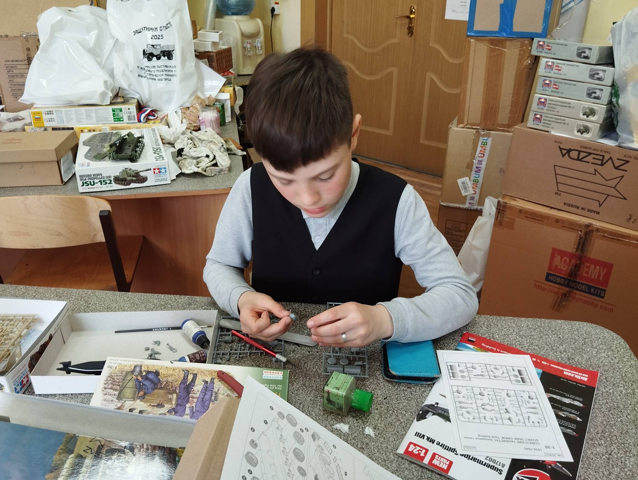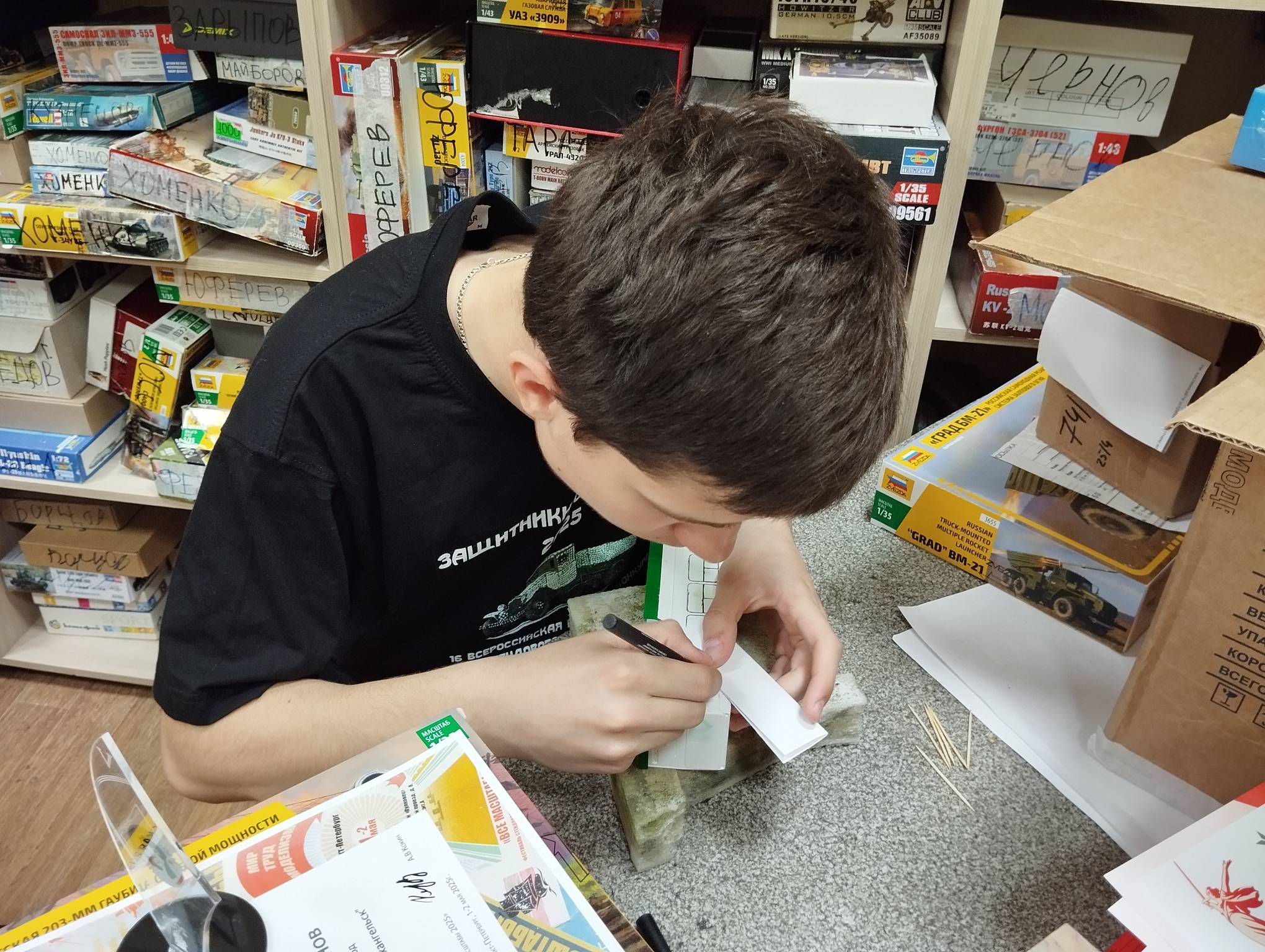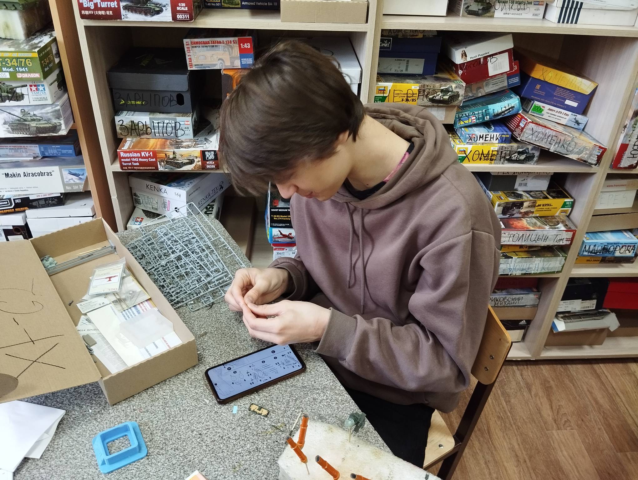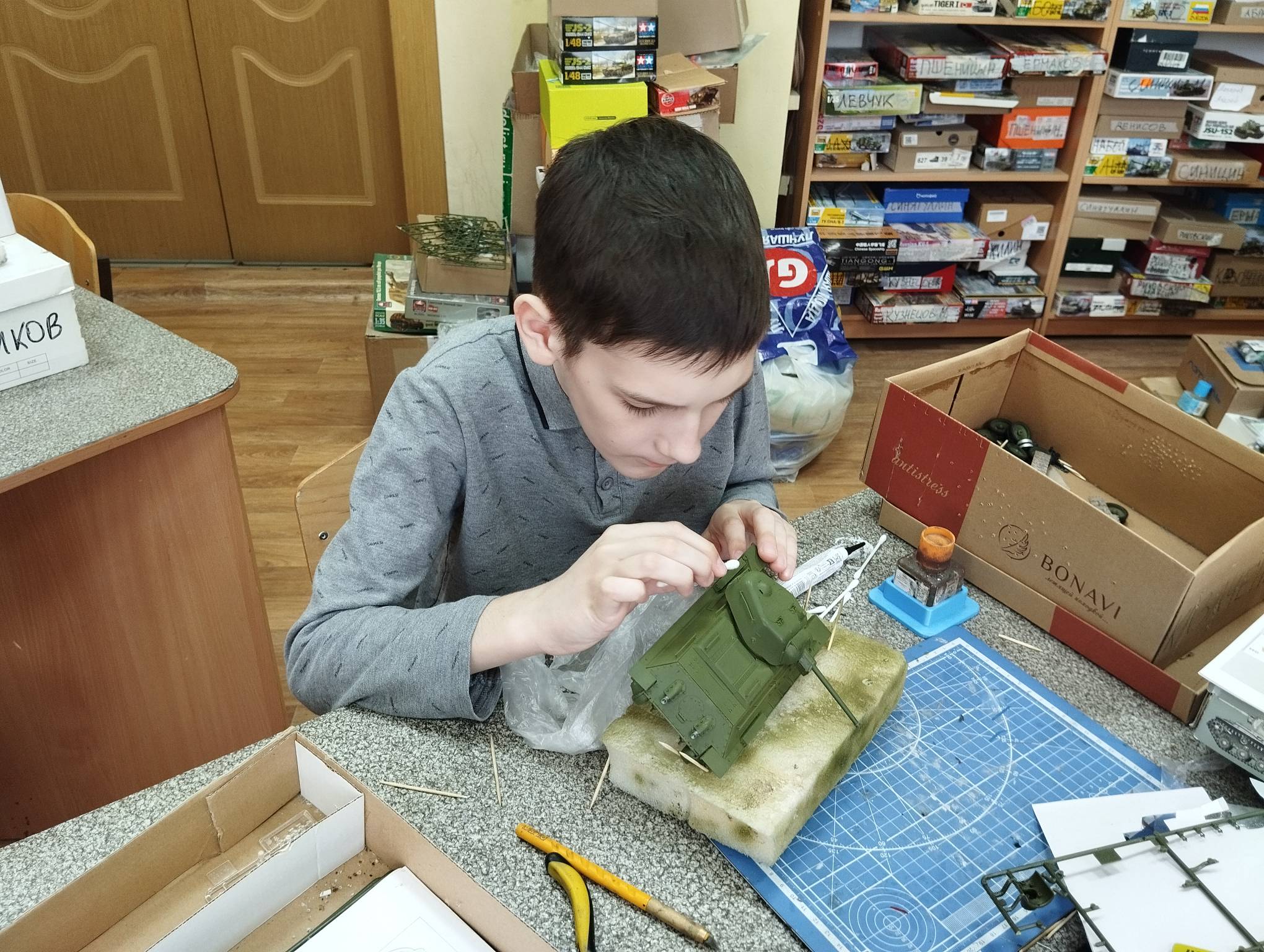 В субботу весь день занимались. Все стараются успеть доделать модели к нашей выставке в Нижнем Новгороде, ведь уже меньше месяца осталось.
