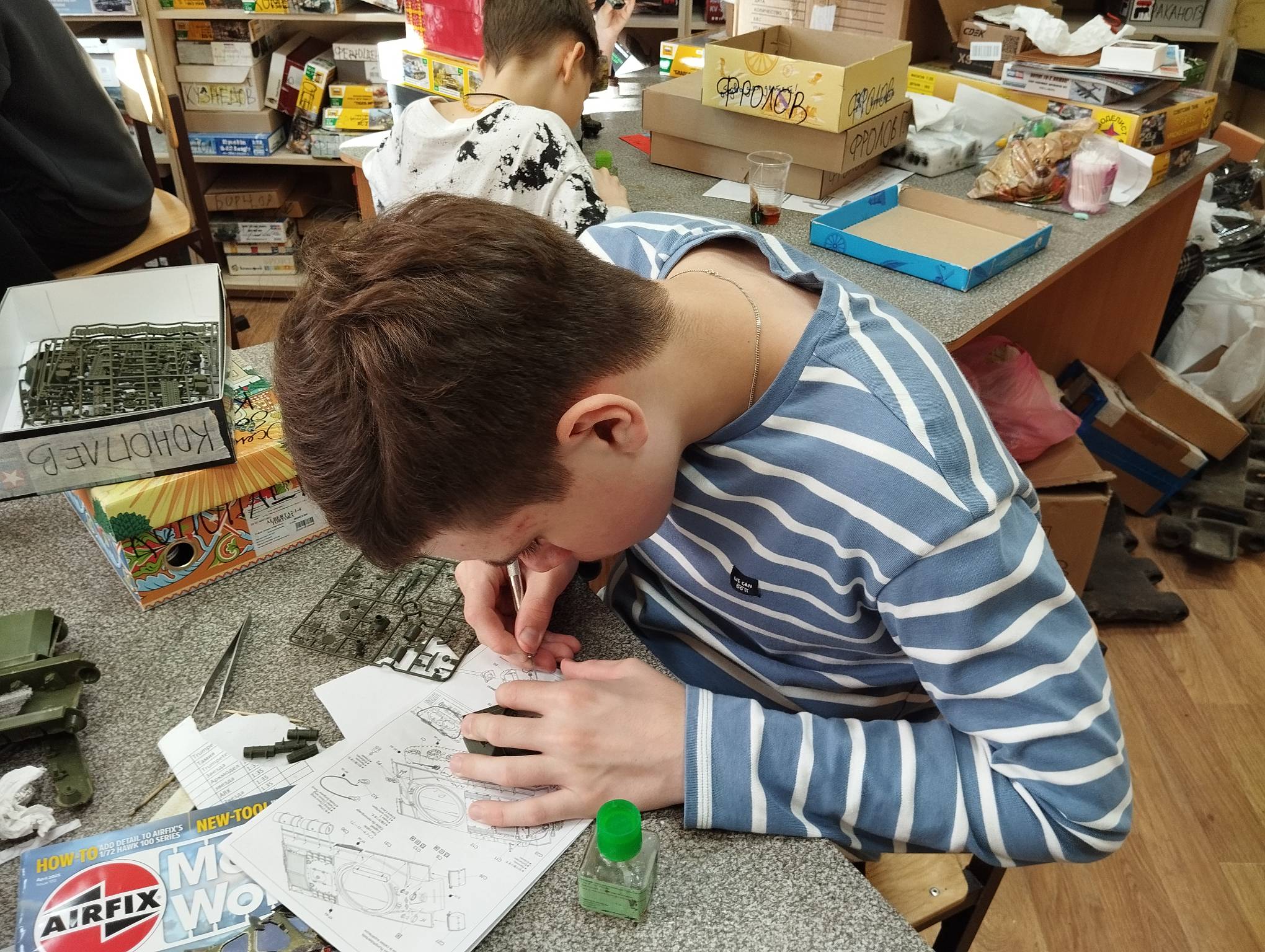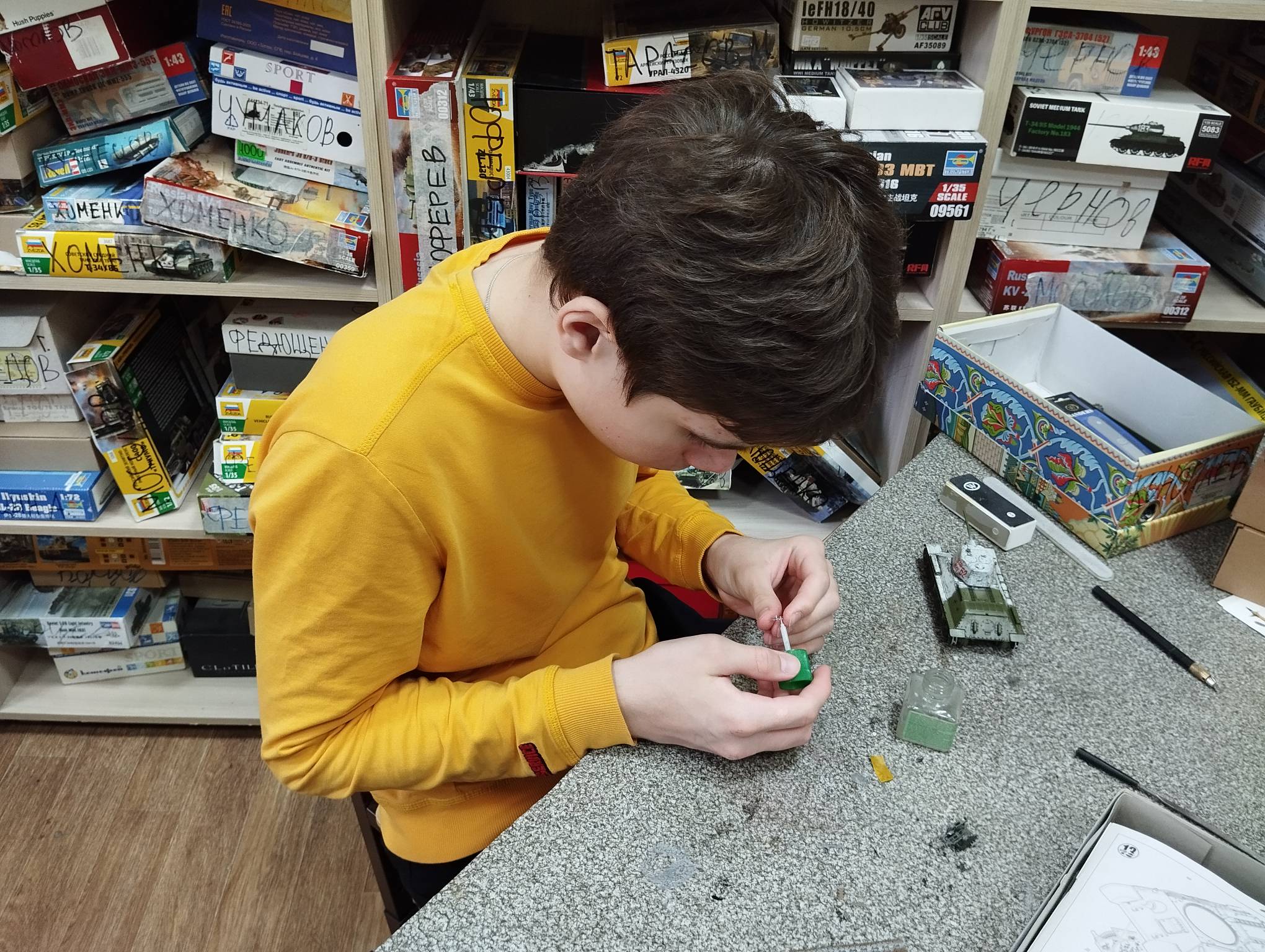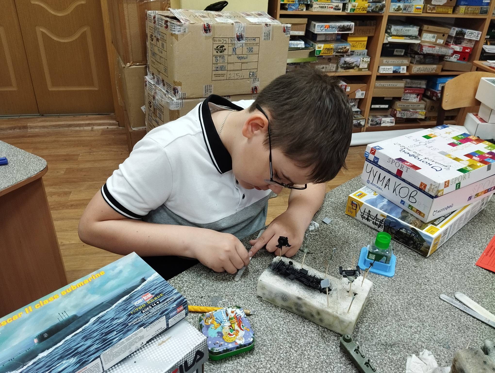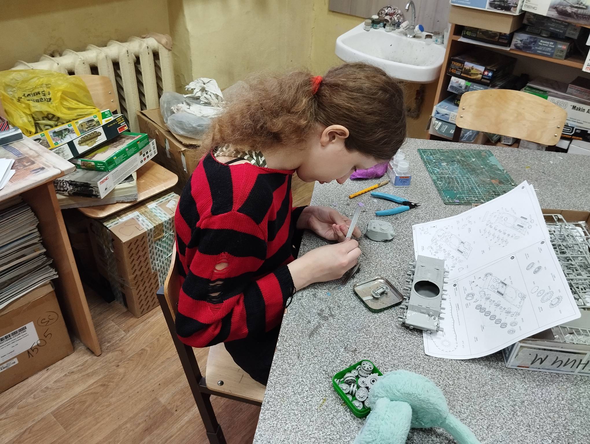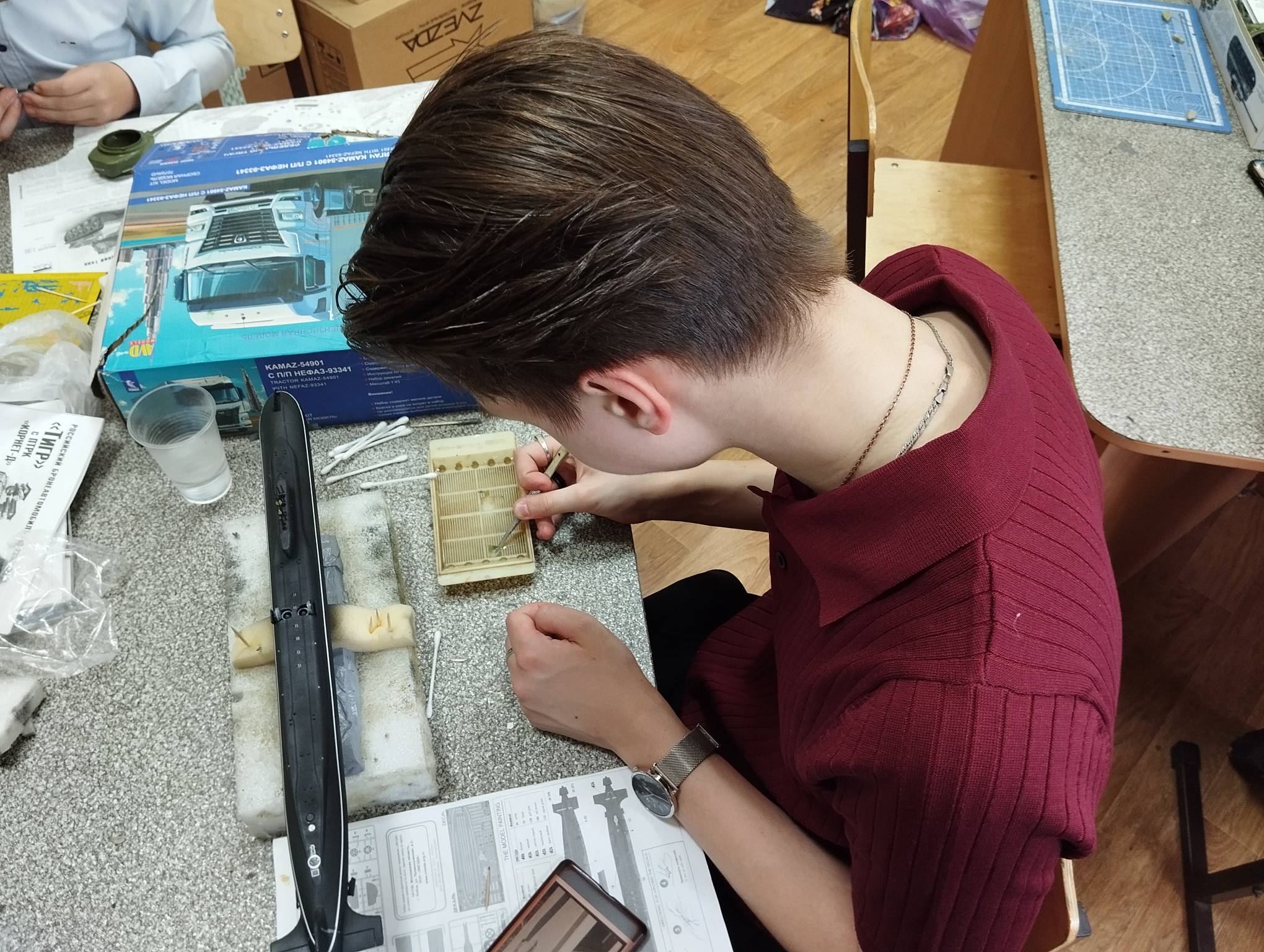 В субботу весь день занимались. Все стараются успеть доделать модели к нашей выставке в Нижнем Новгороде, ведь уже меньше месяца осталось.