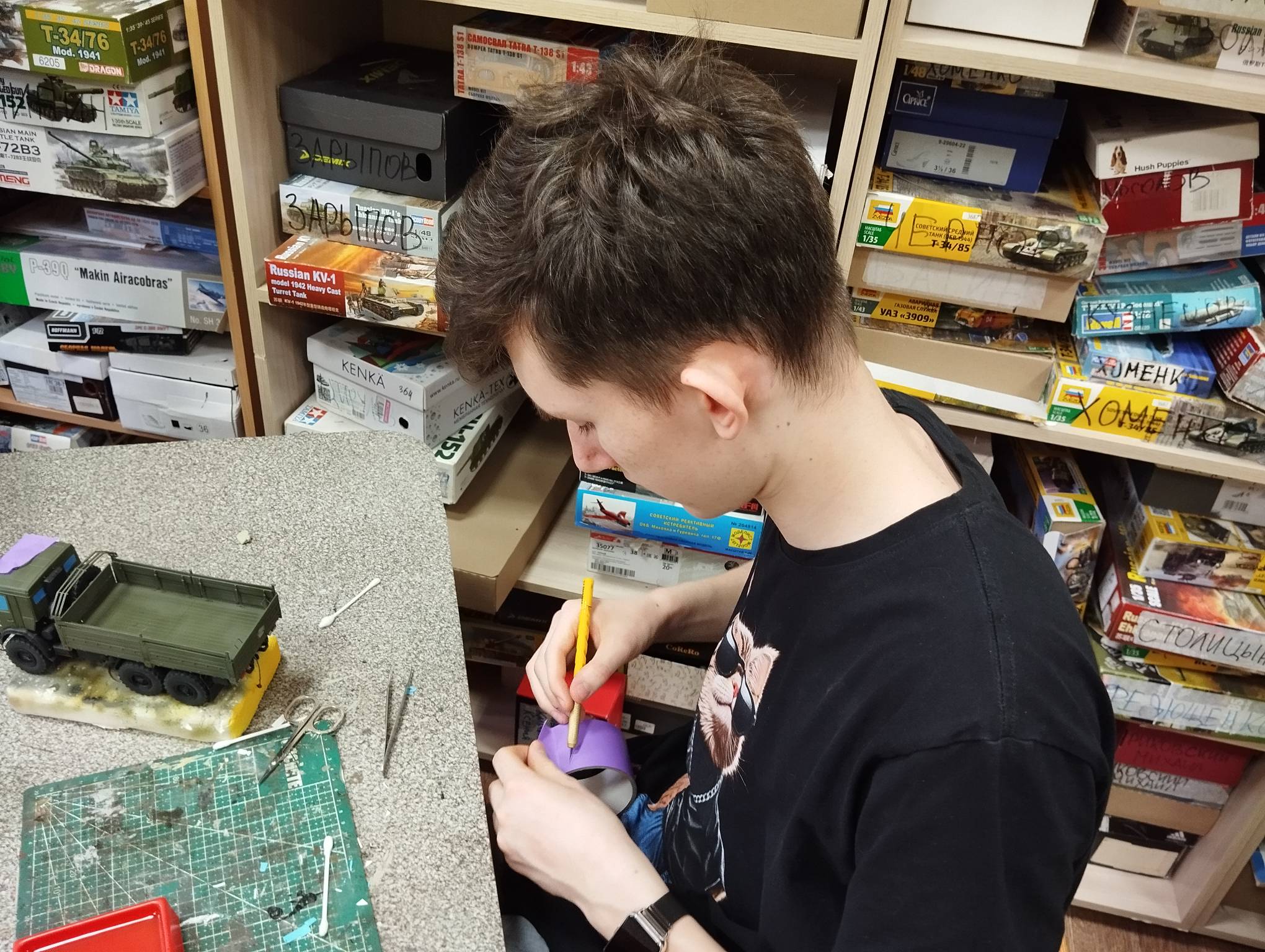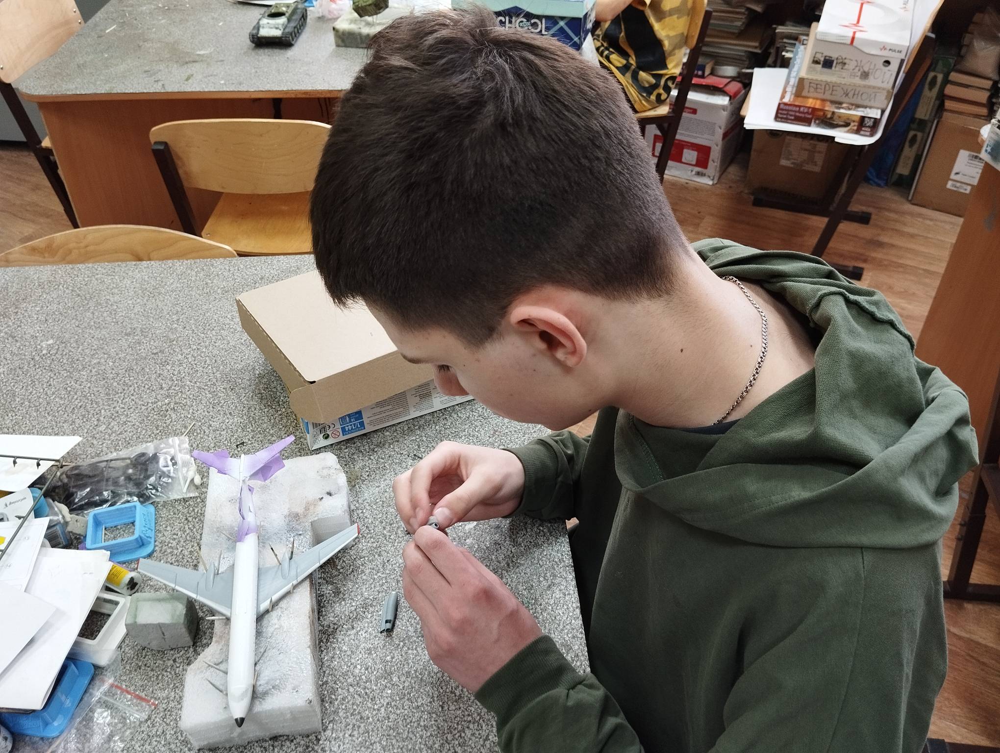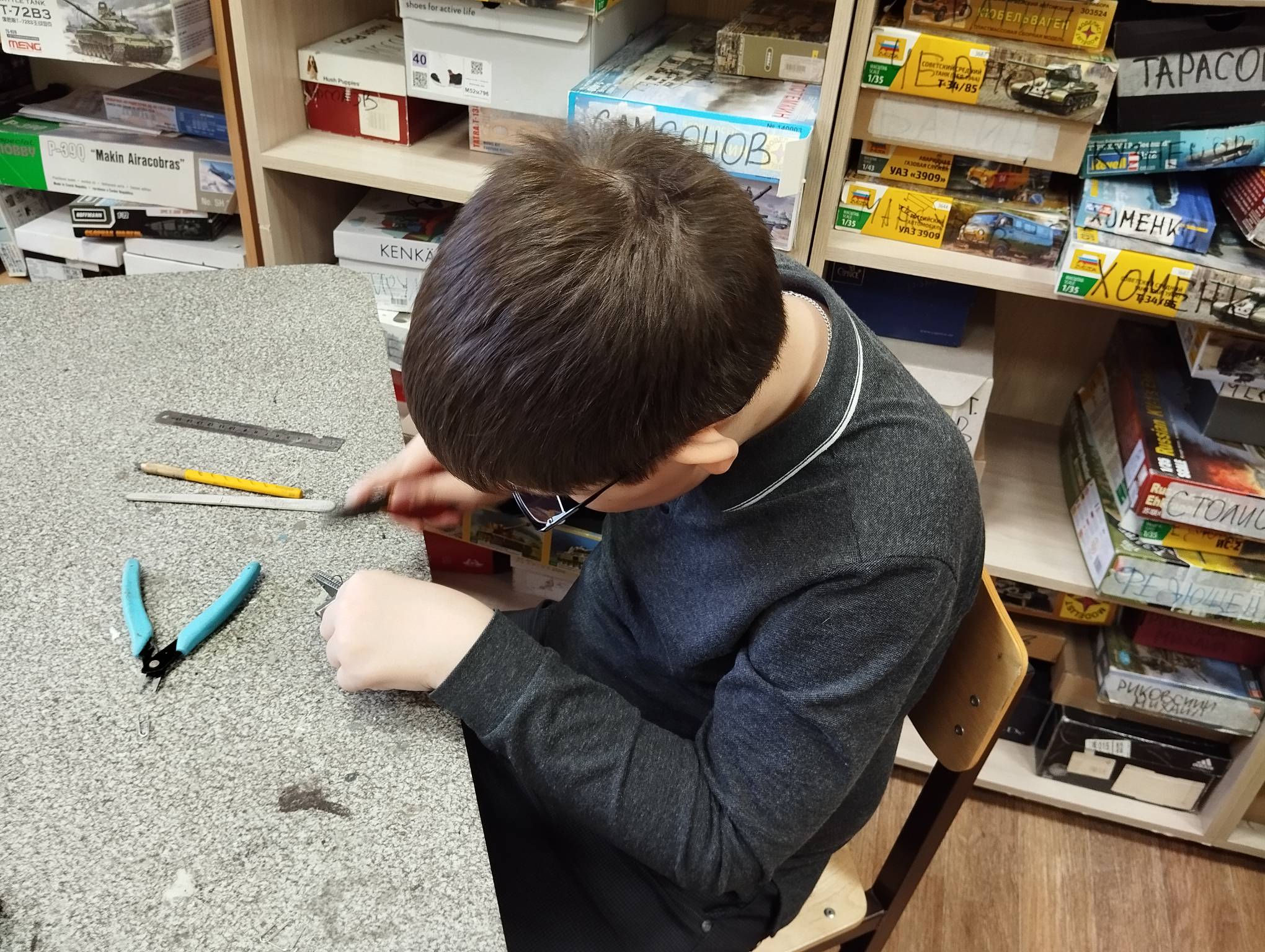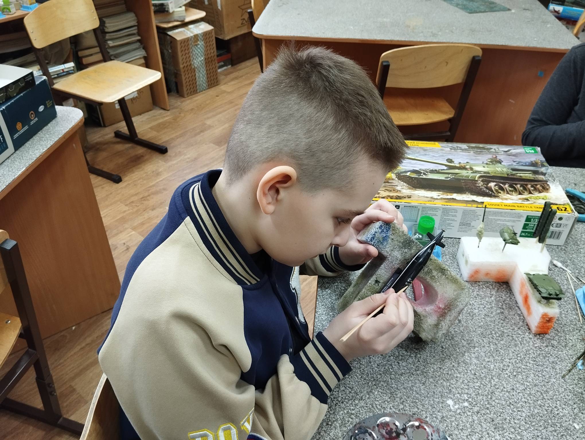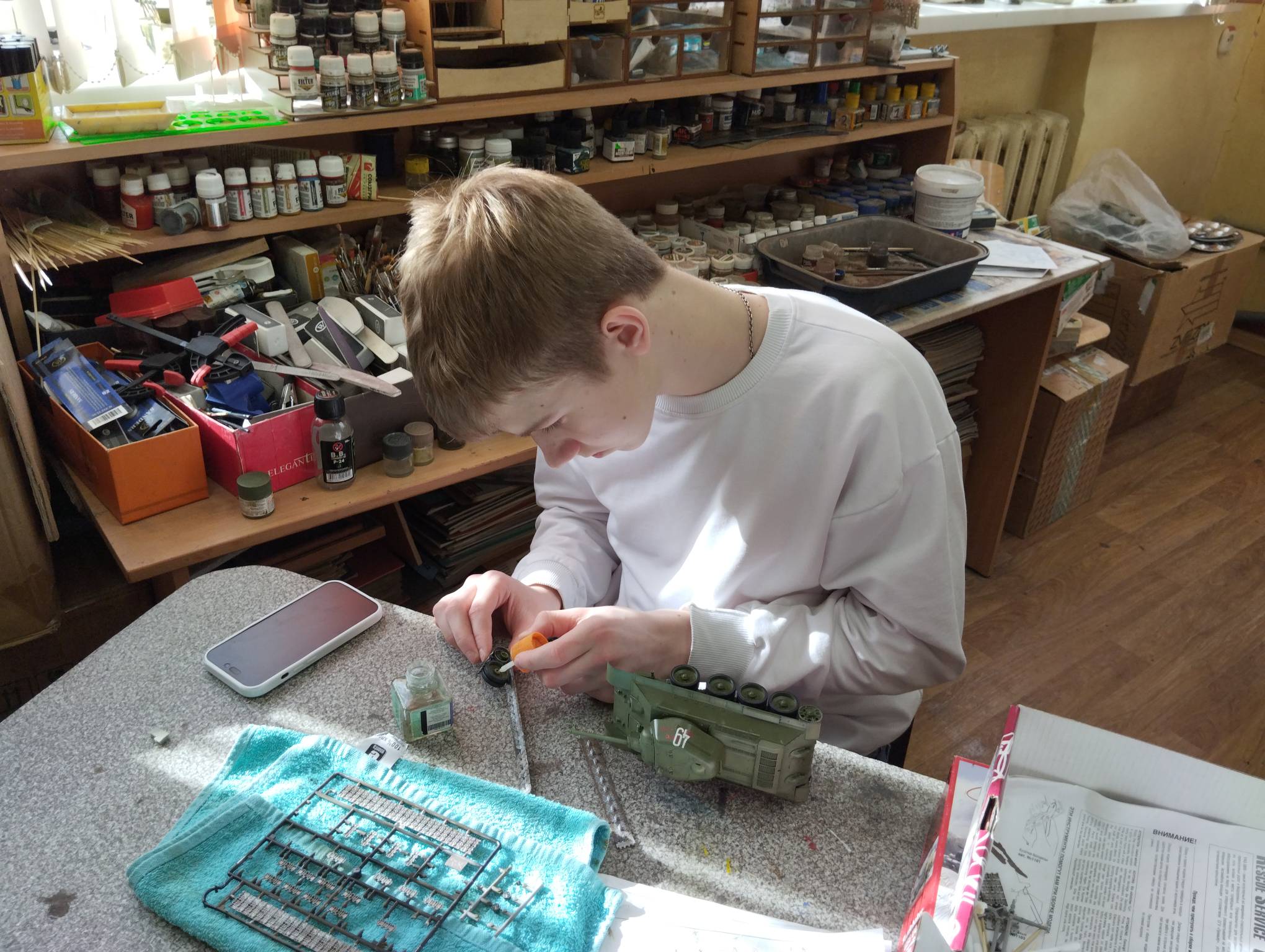 В субботу весь день занимались. Все стараются успеть доделать модели к нашей выставке в Нижнем Новгороде, ведь уже меньше месяца осталось.