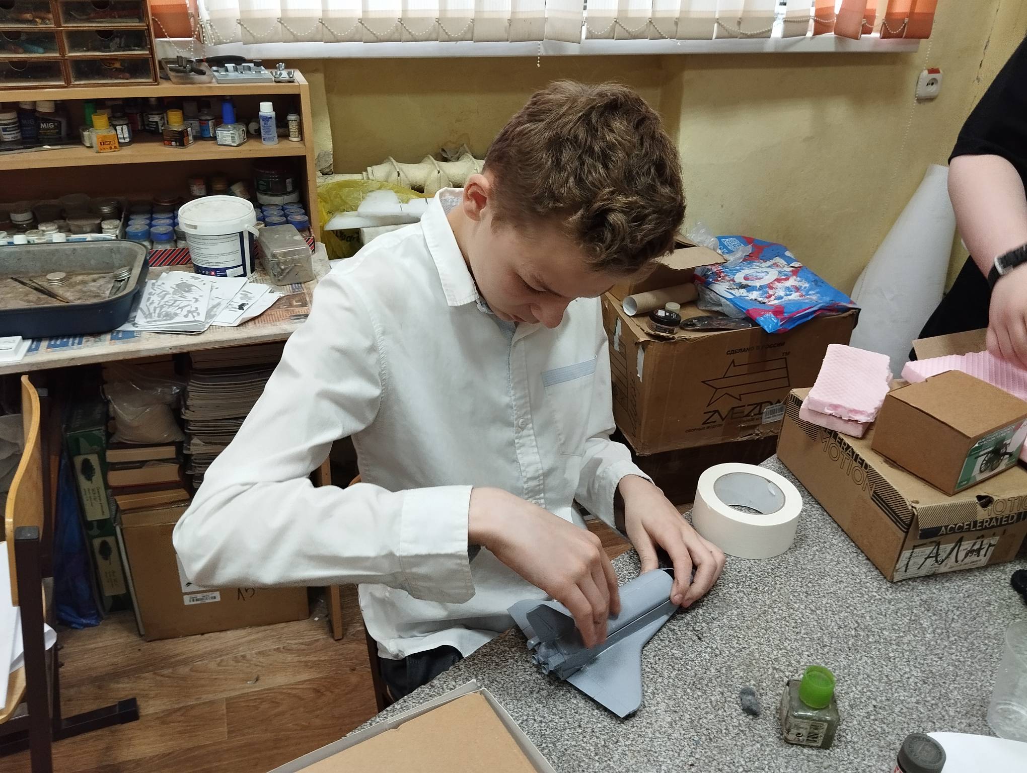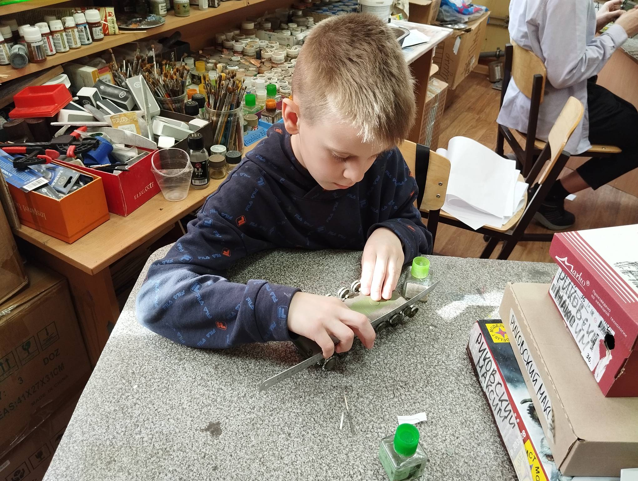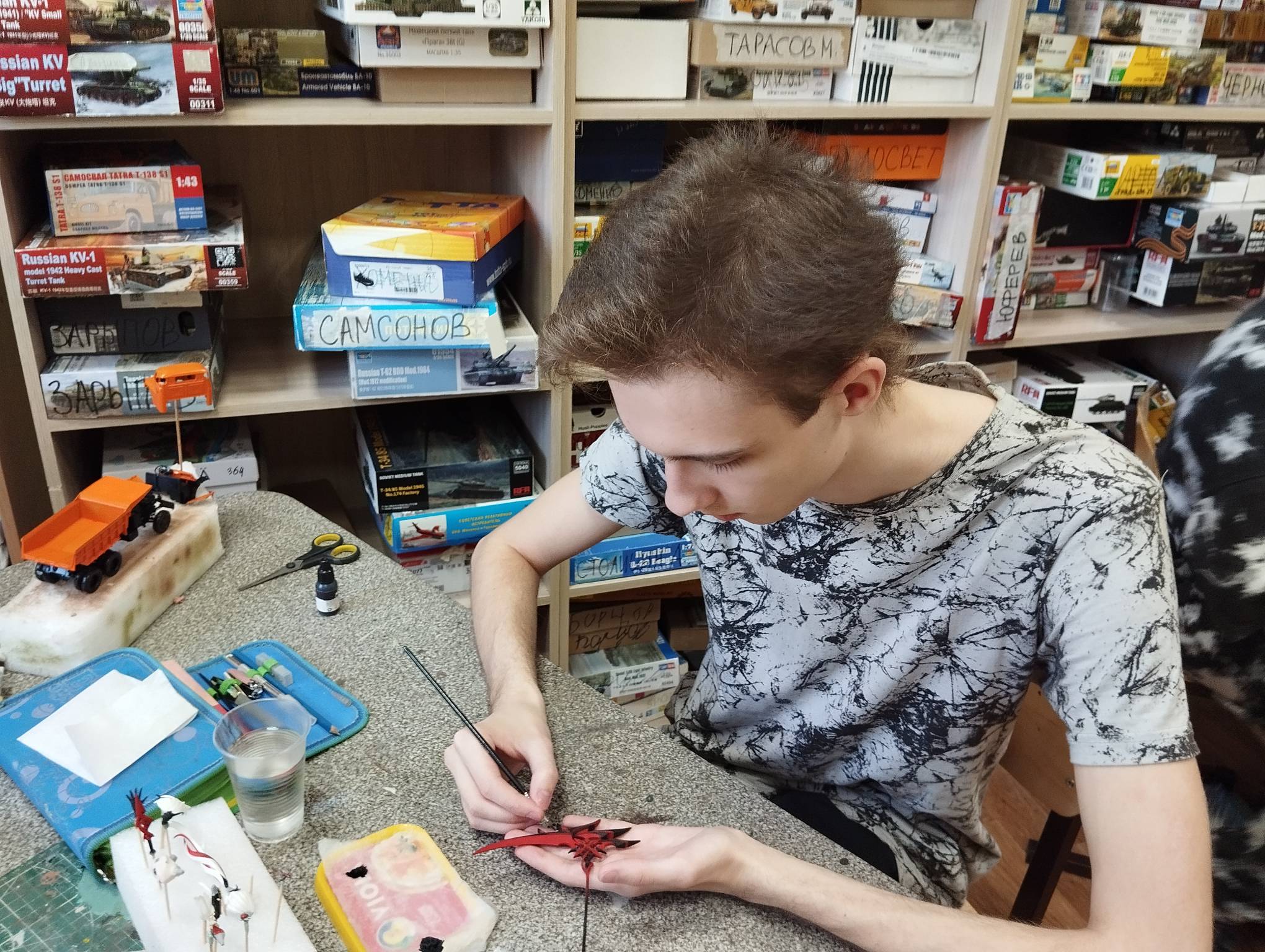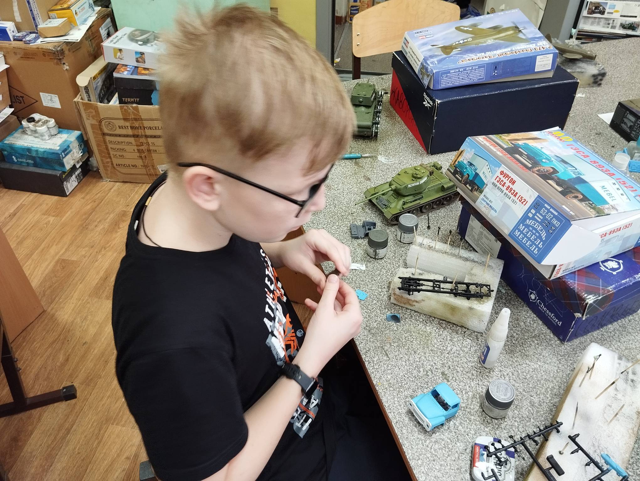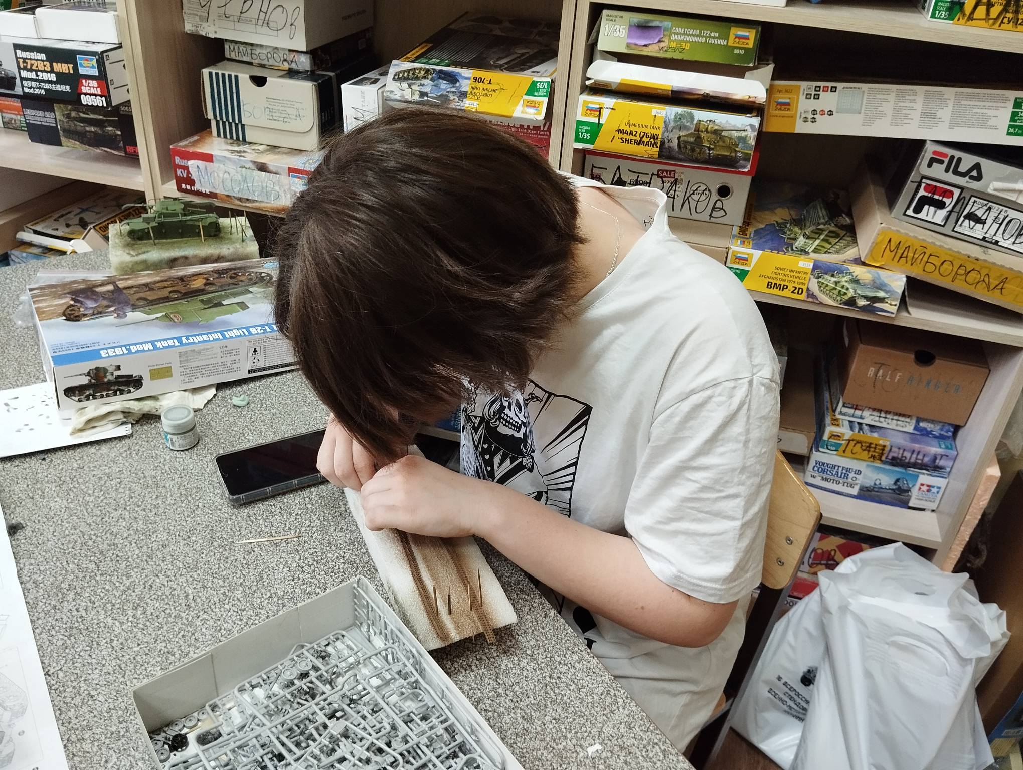 В субботу весь день занимались. Все стараются успеть доделать модели к нашей выставке в Нижнем Новгороде, ведь уже меньше месяца осталось.