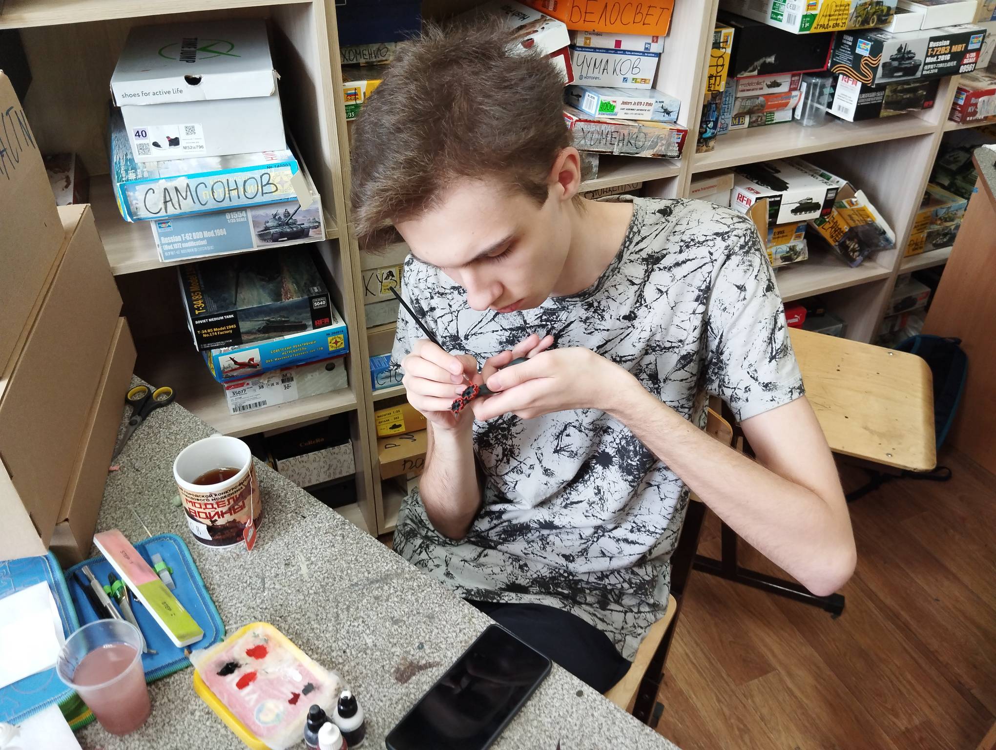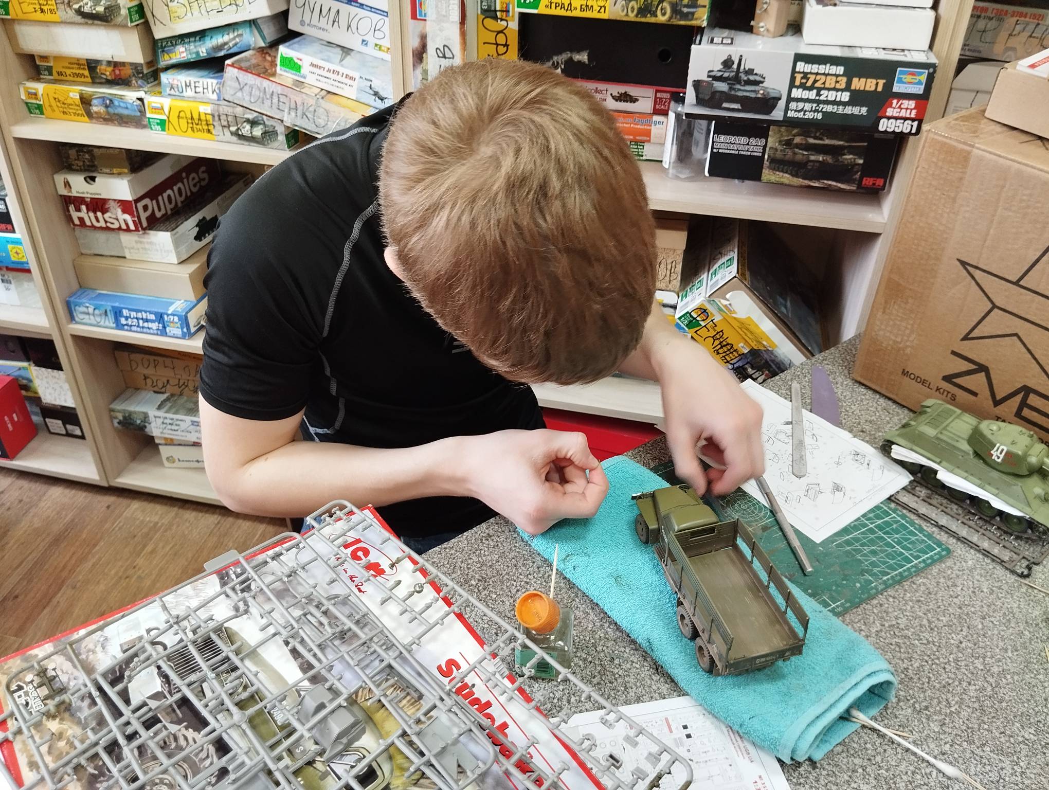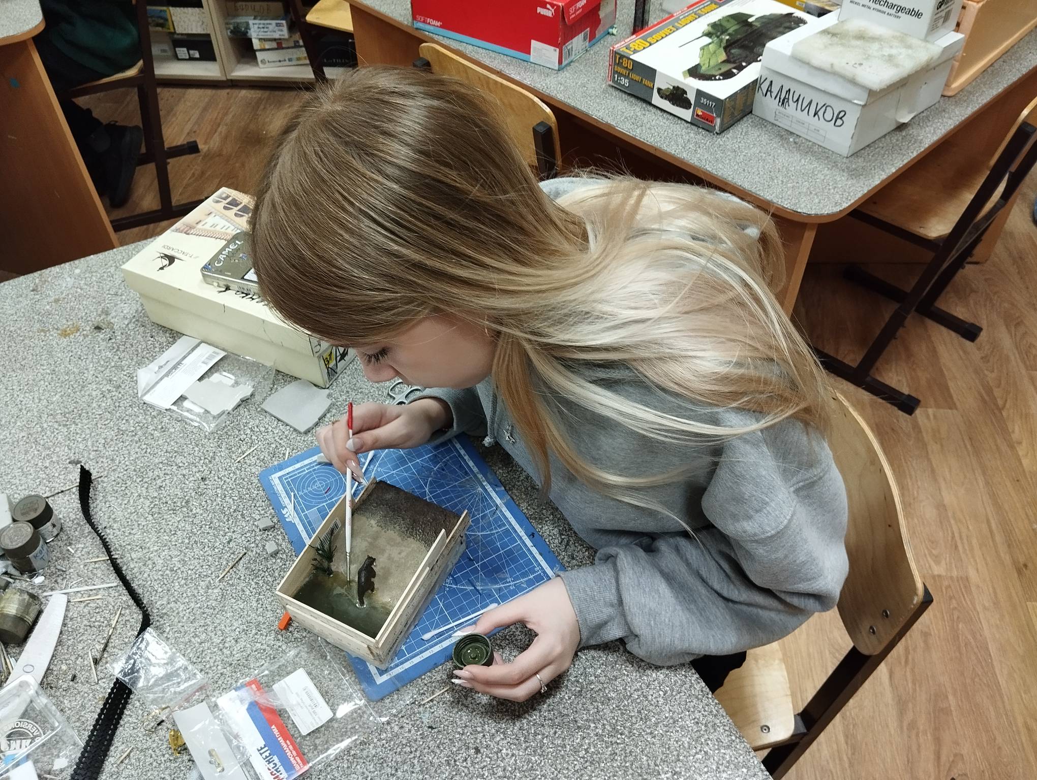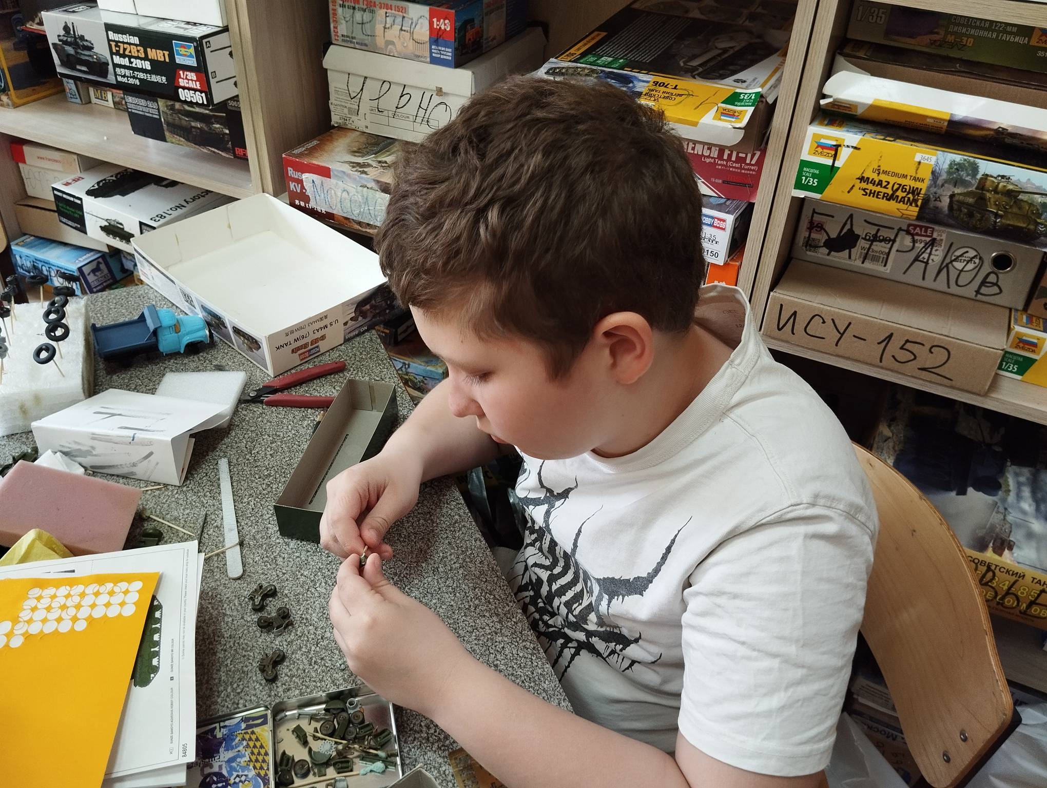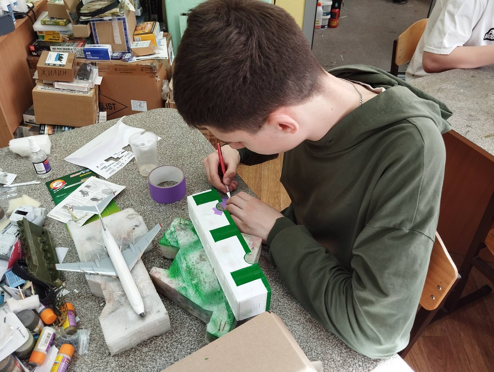 В субботу весь день занимались. Все стараются успеть доделать модели к нашей выставке в Нижнем Новгороде, ведь уже меньше месяца осталось.