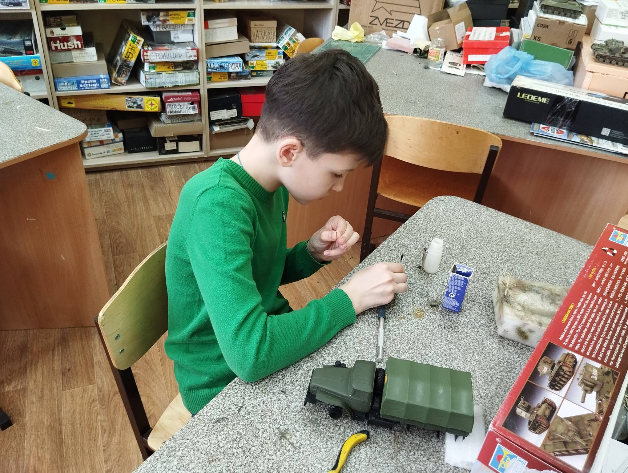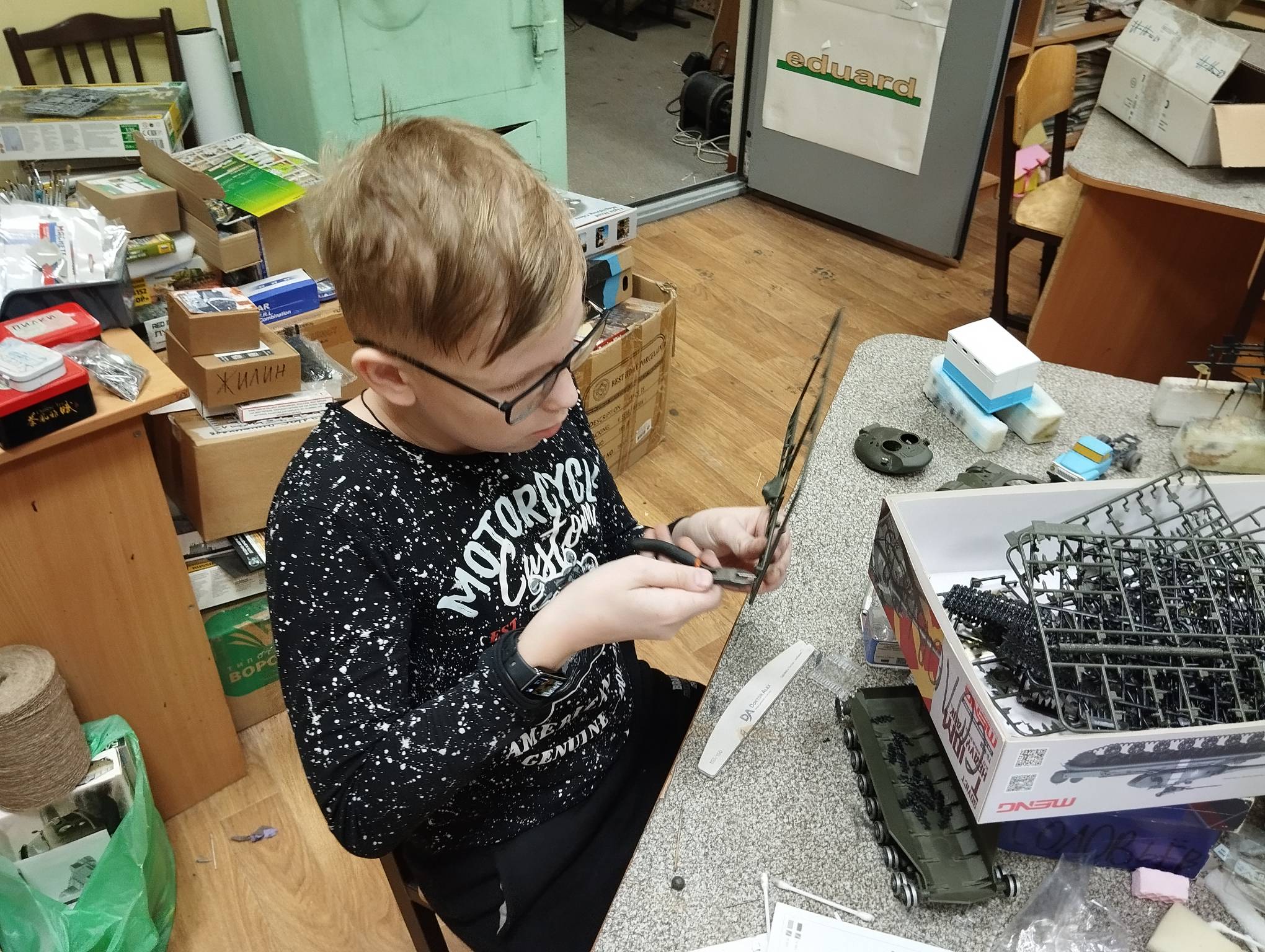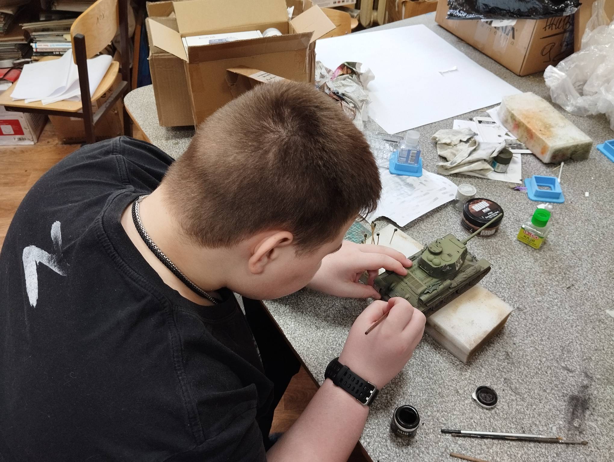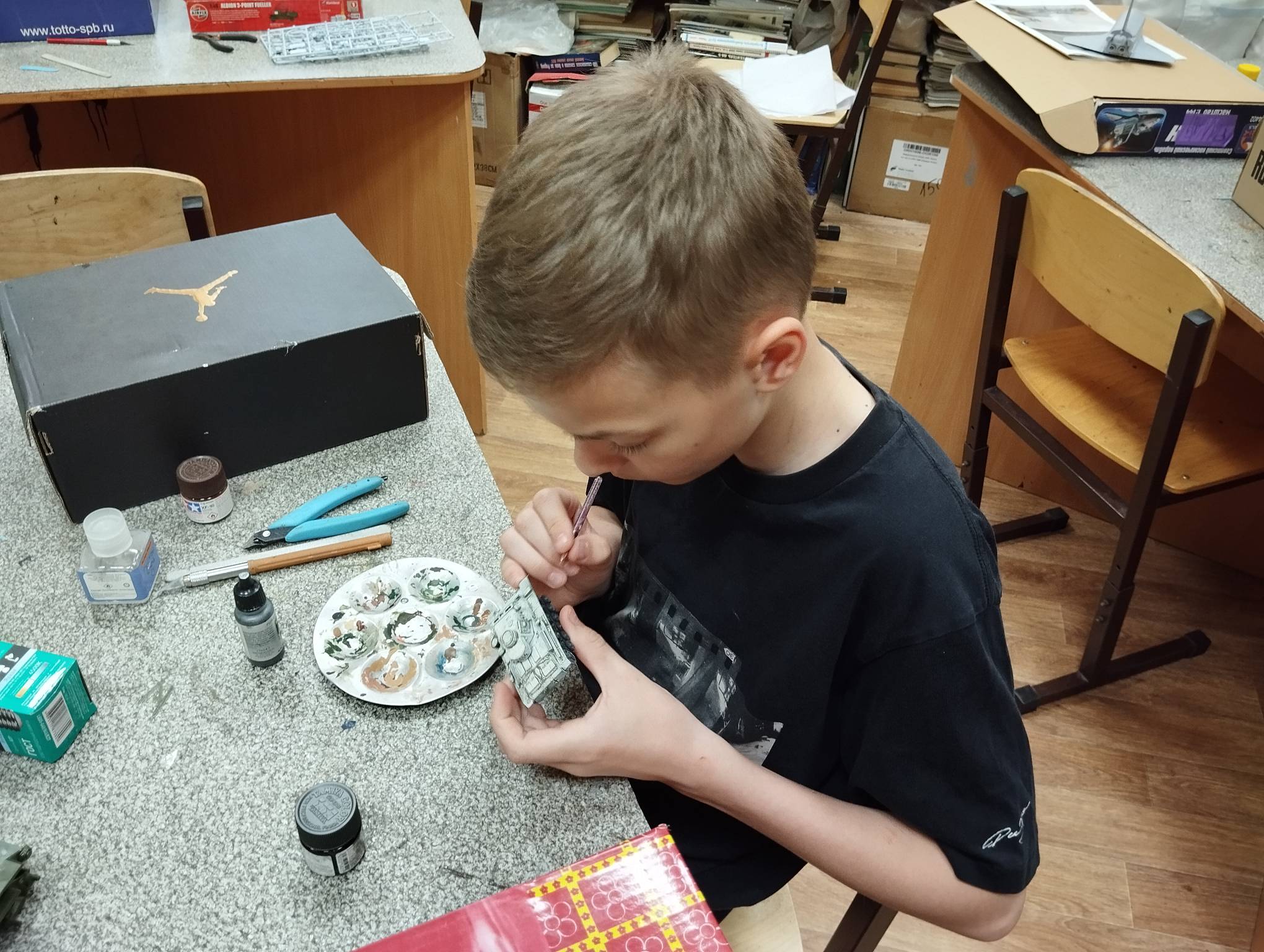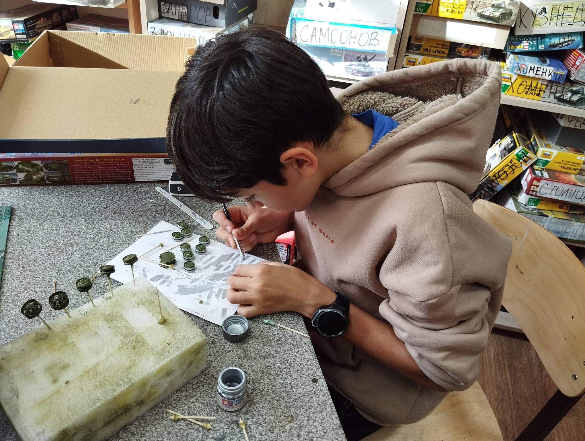 В субботу весь день занимались. Все стараются успеть доделать модели к нашей выставке в Нижнем Новгороде, ведь уже меньше месяца осталось.