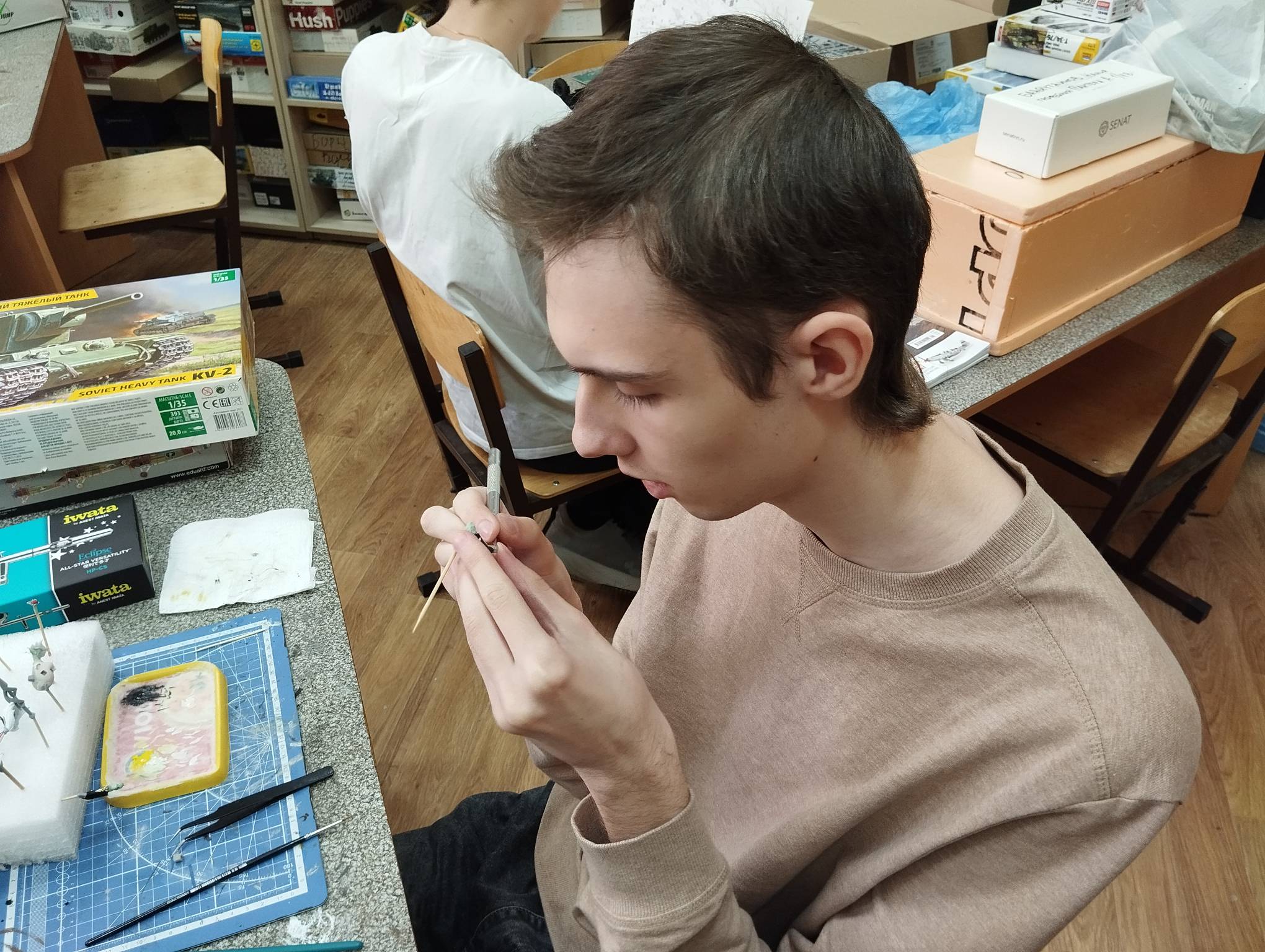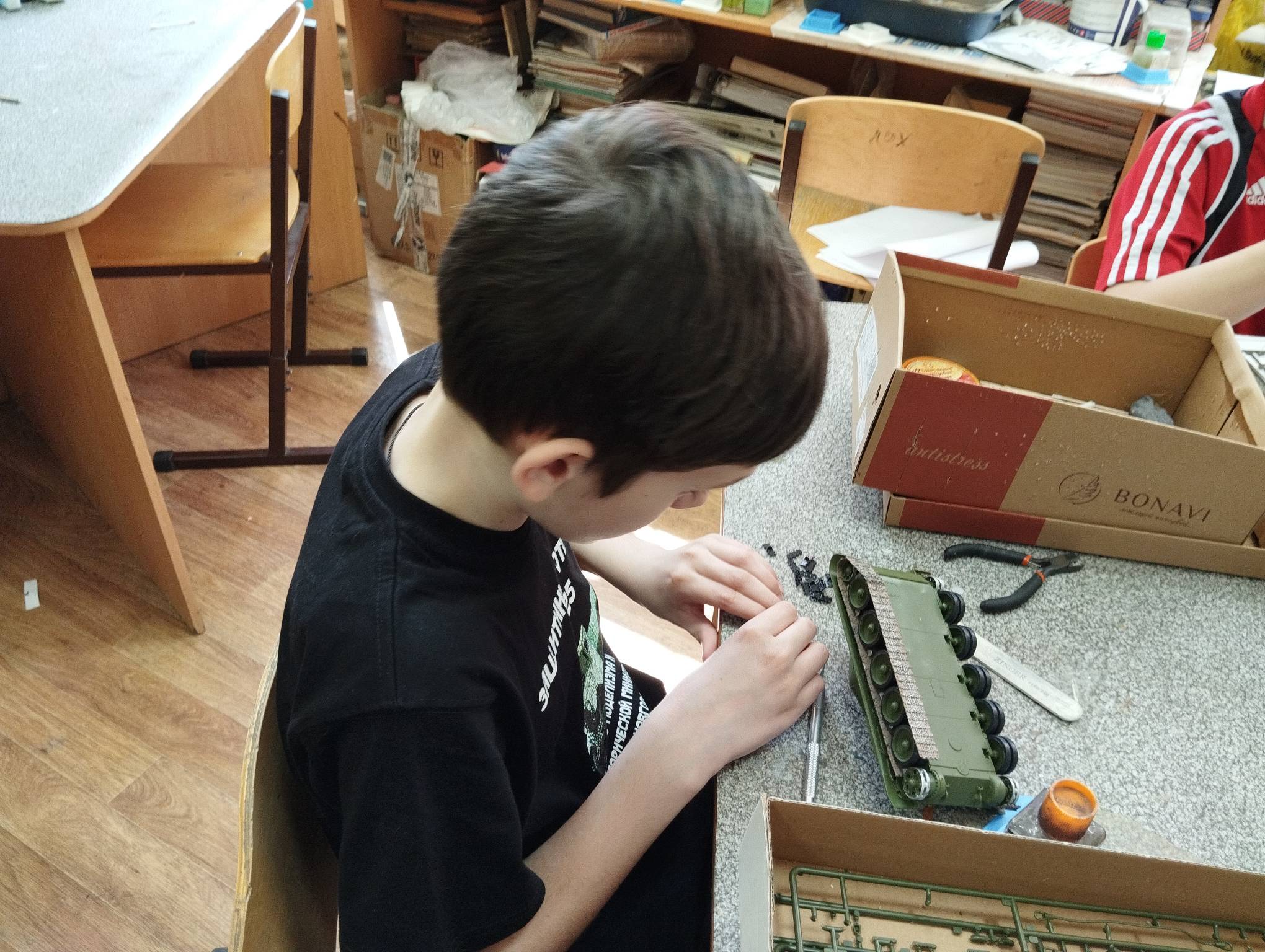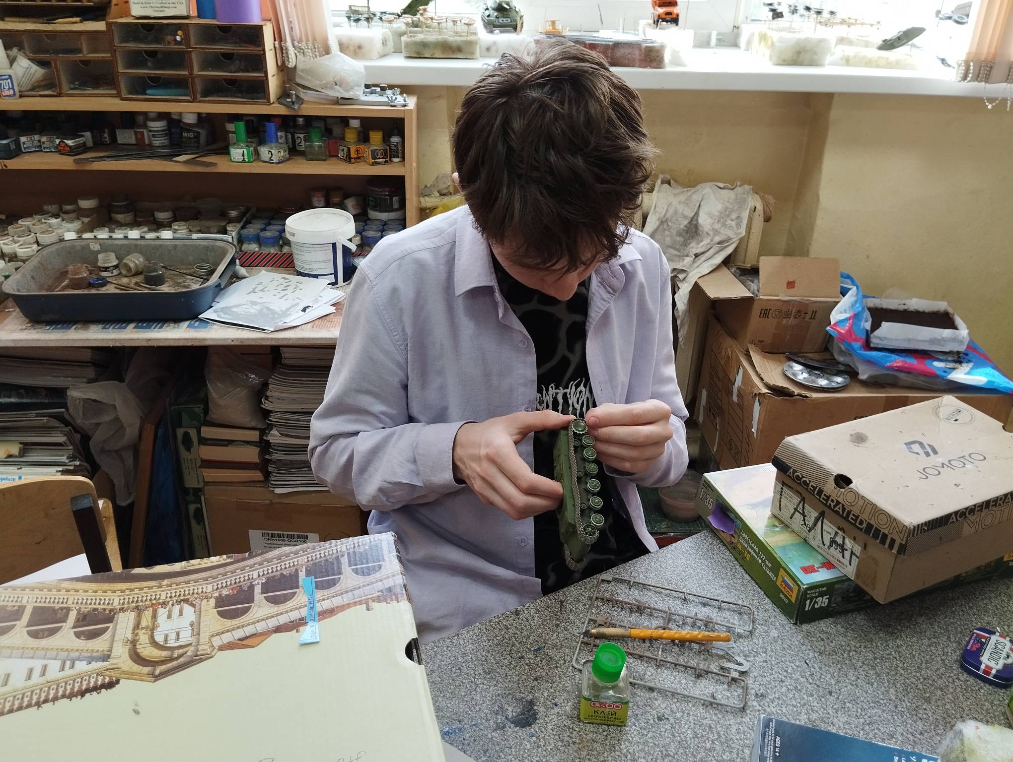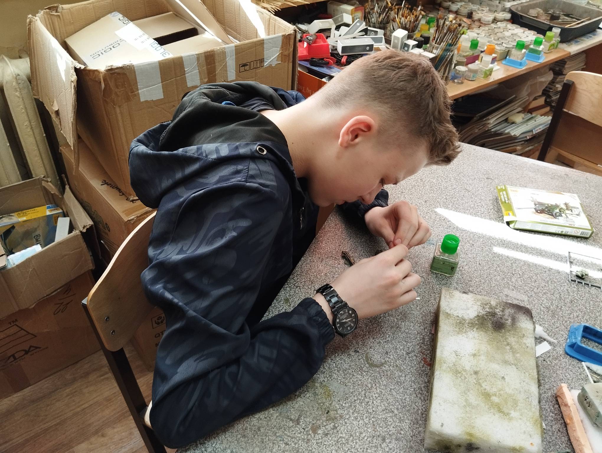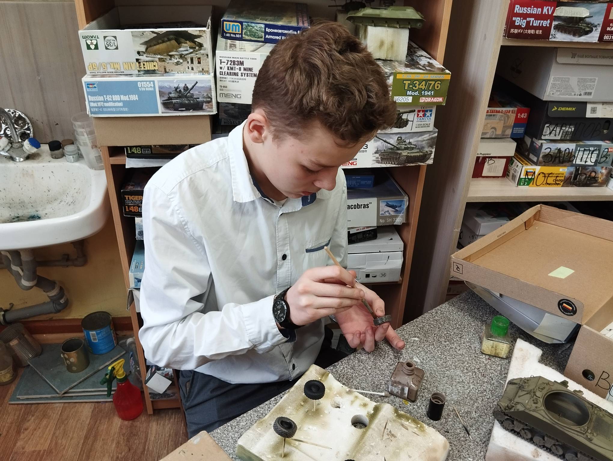 В субботу весь день занимались. Все стараются успеть доделать модели к нашей выставке в Нижнем Новгороде, ведь уже меньше месяца осталось.