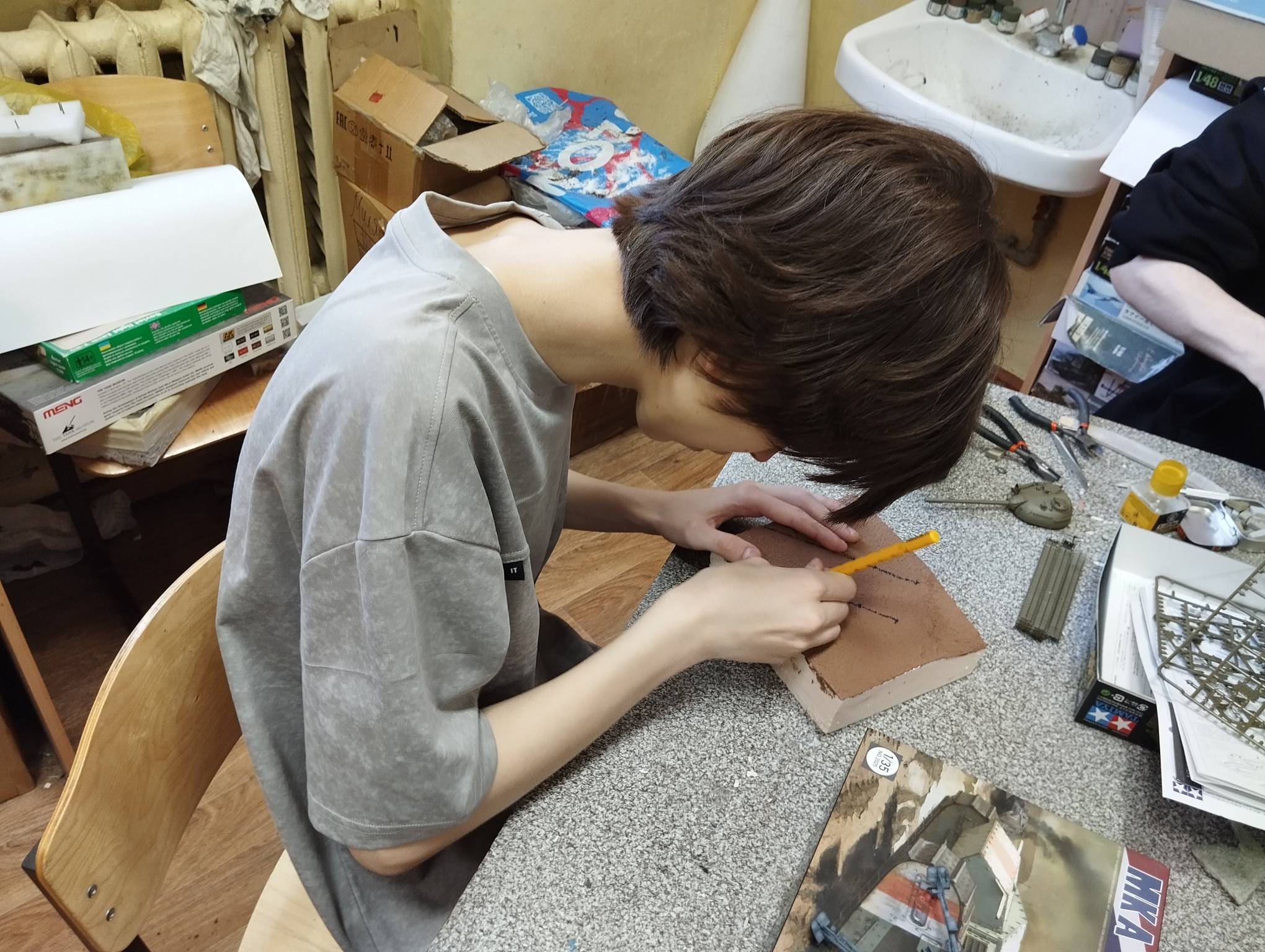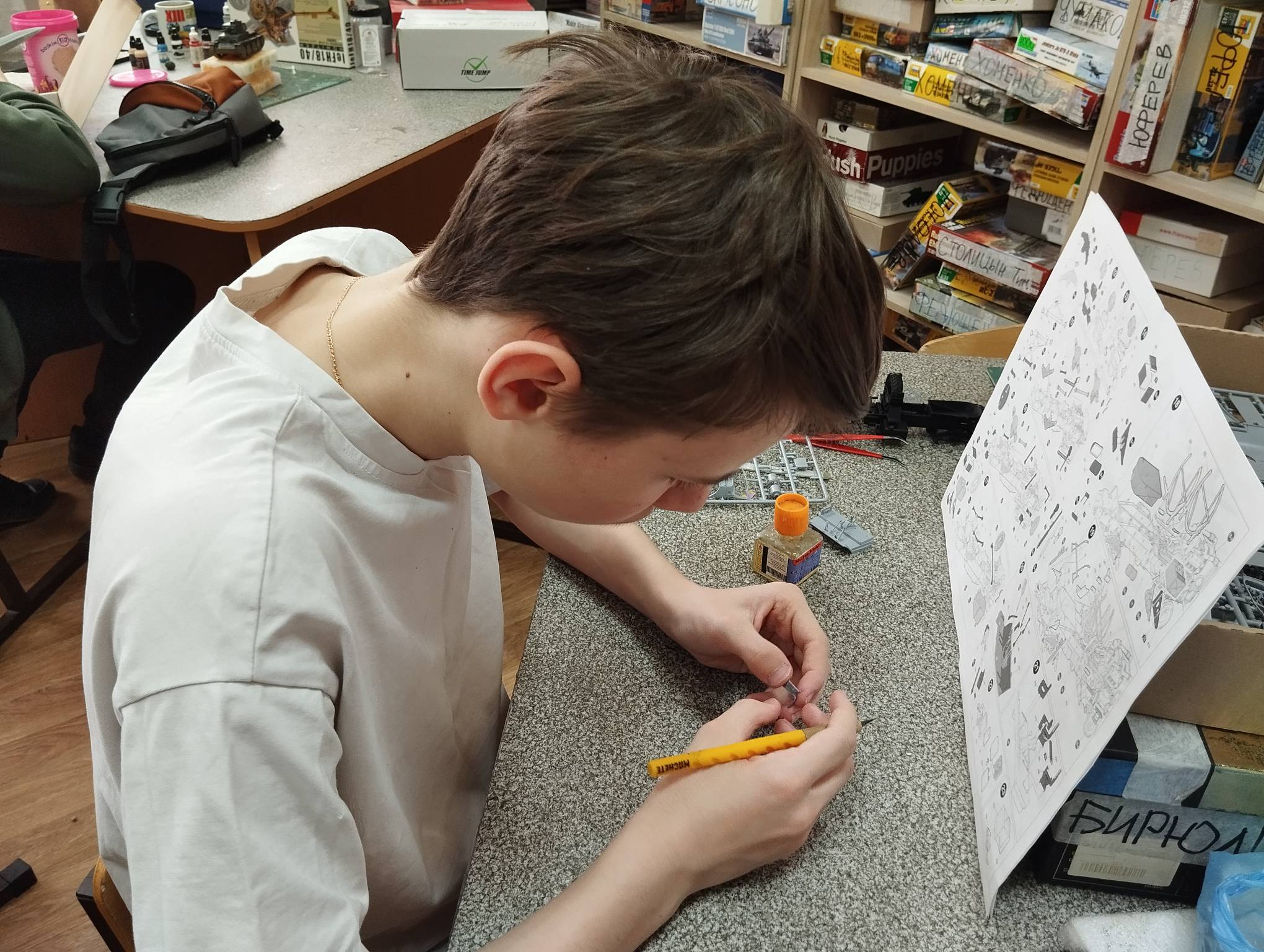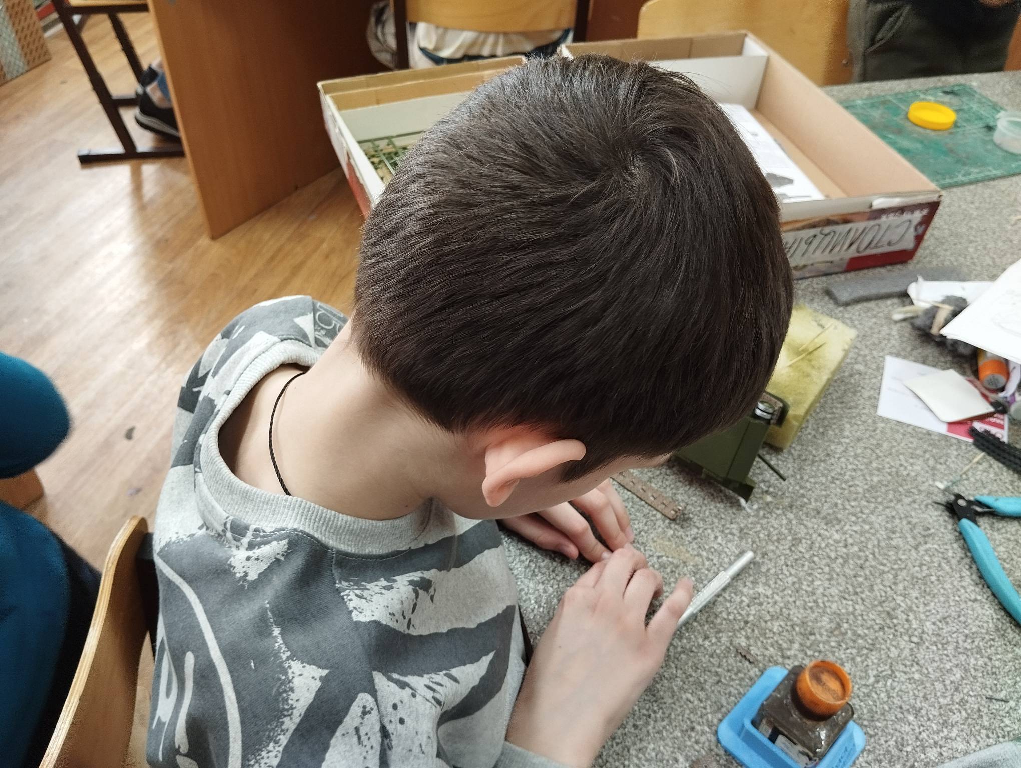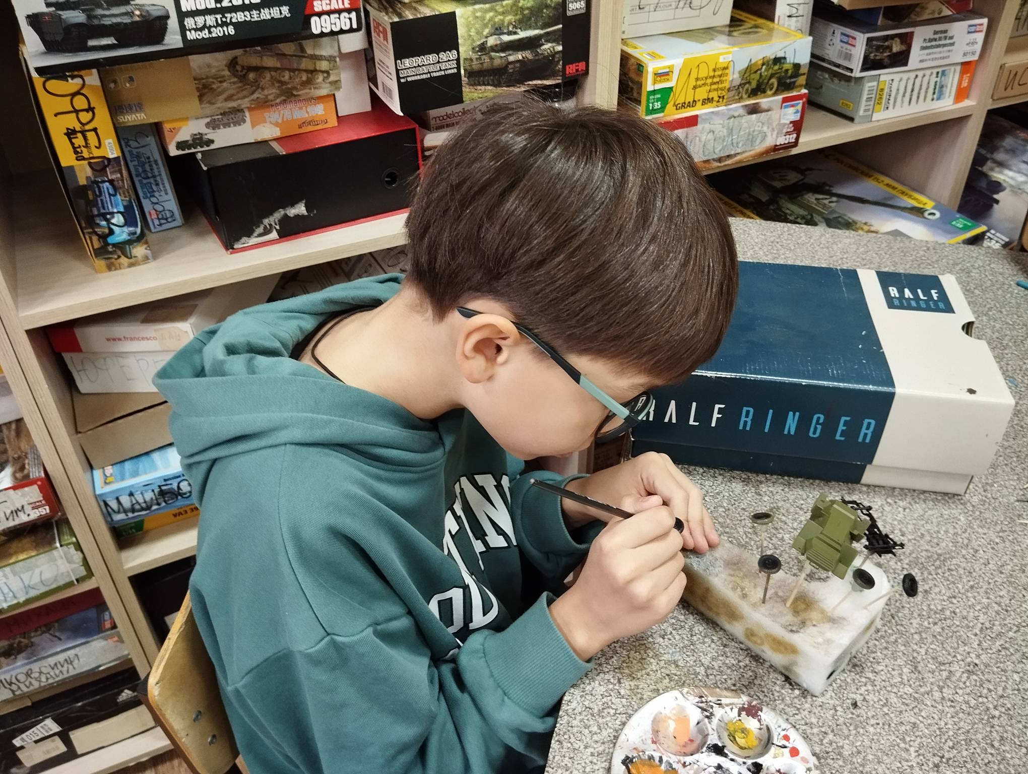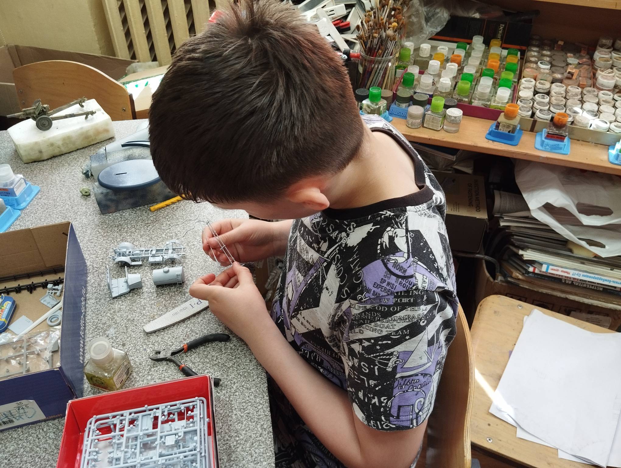 В субботу весь день занимались. Все стараются успеть доделать модели к нашей выставке в Нижнем Новгороде, ведь уже меньше месяца осталось.