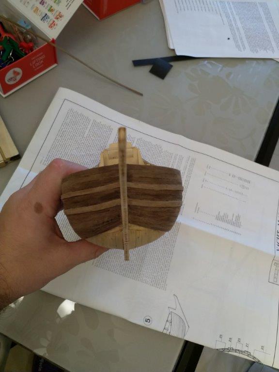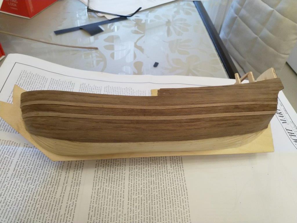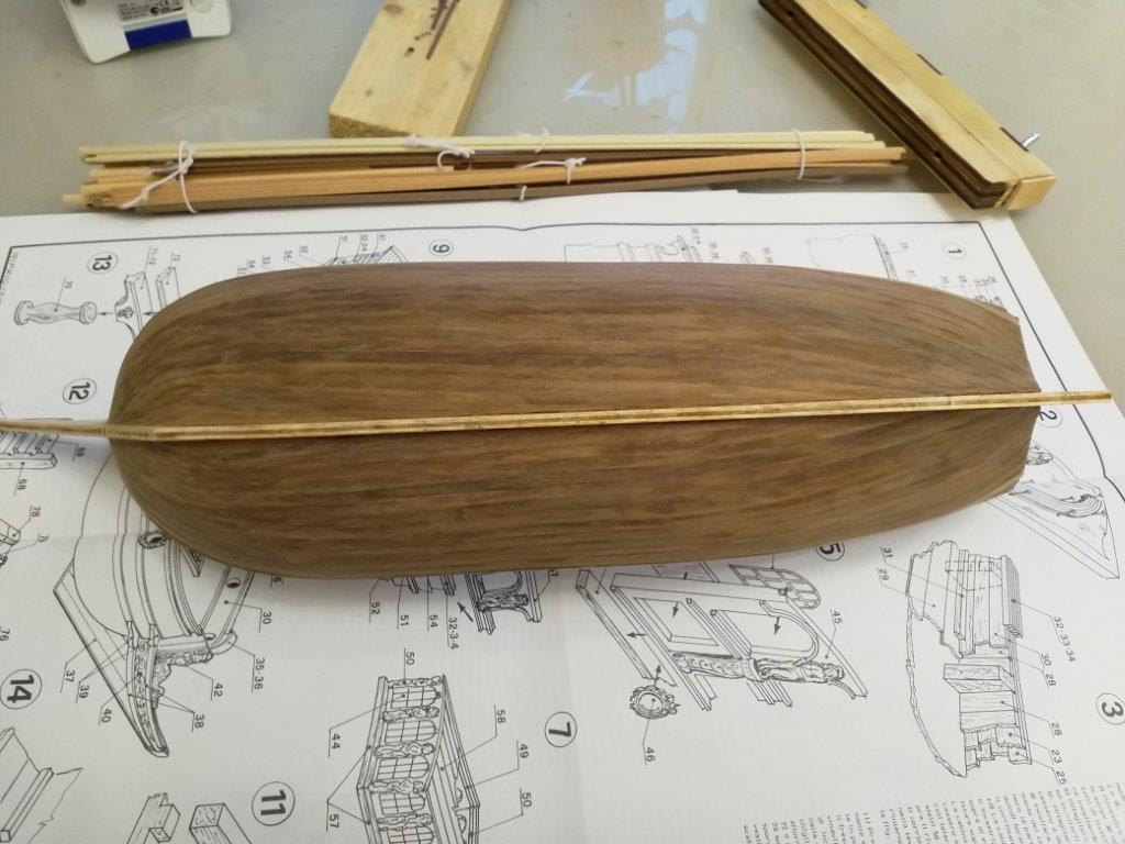 Приветствую! Так же нужно обшить чистовой обшивкой киль и форштевень и торец обязательно. Я в своё время поленился, а после морилки очень большой разбег по тональности получился.