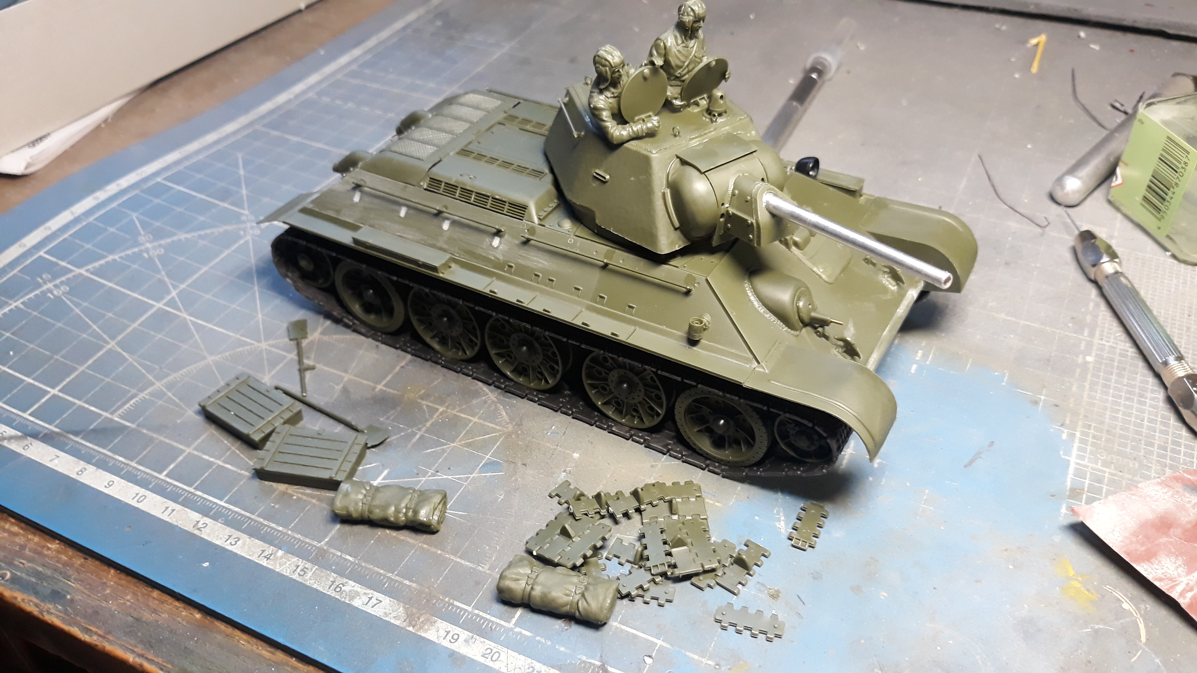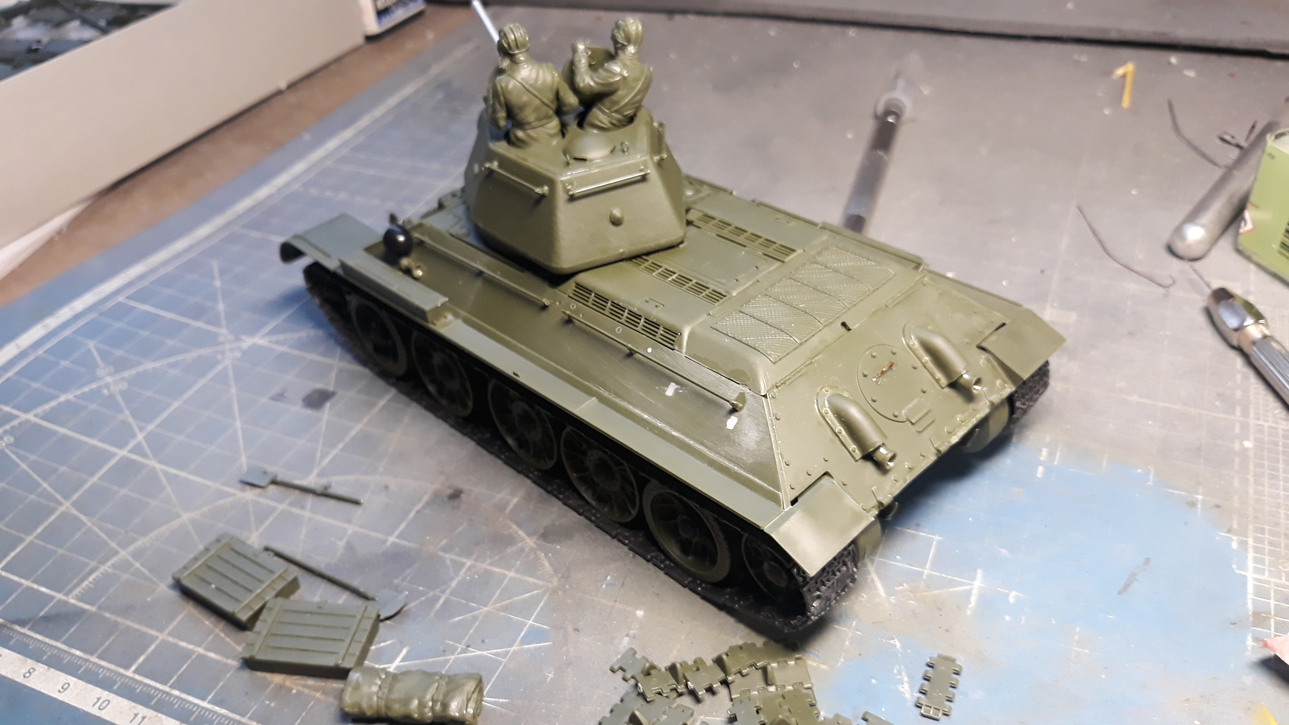 Матчасть пока неизучал хотя гдето должна быть подборка литературы по 34ке, в названии модели написано 43год, но зная насколько все сложно с матчастью попытаюсь просто построить из этого набора чтото более менее похожее на правду.