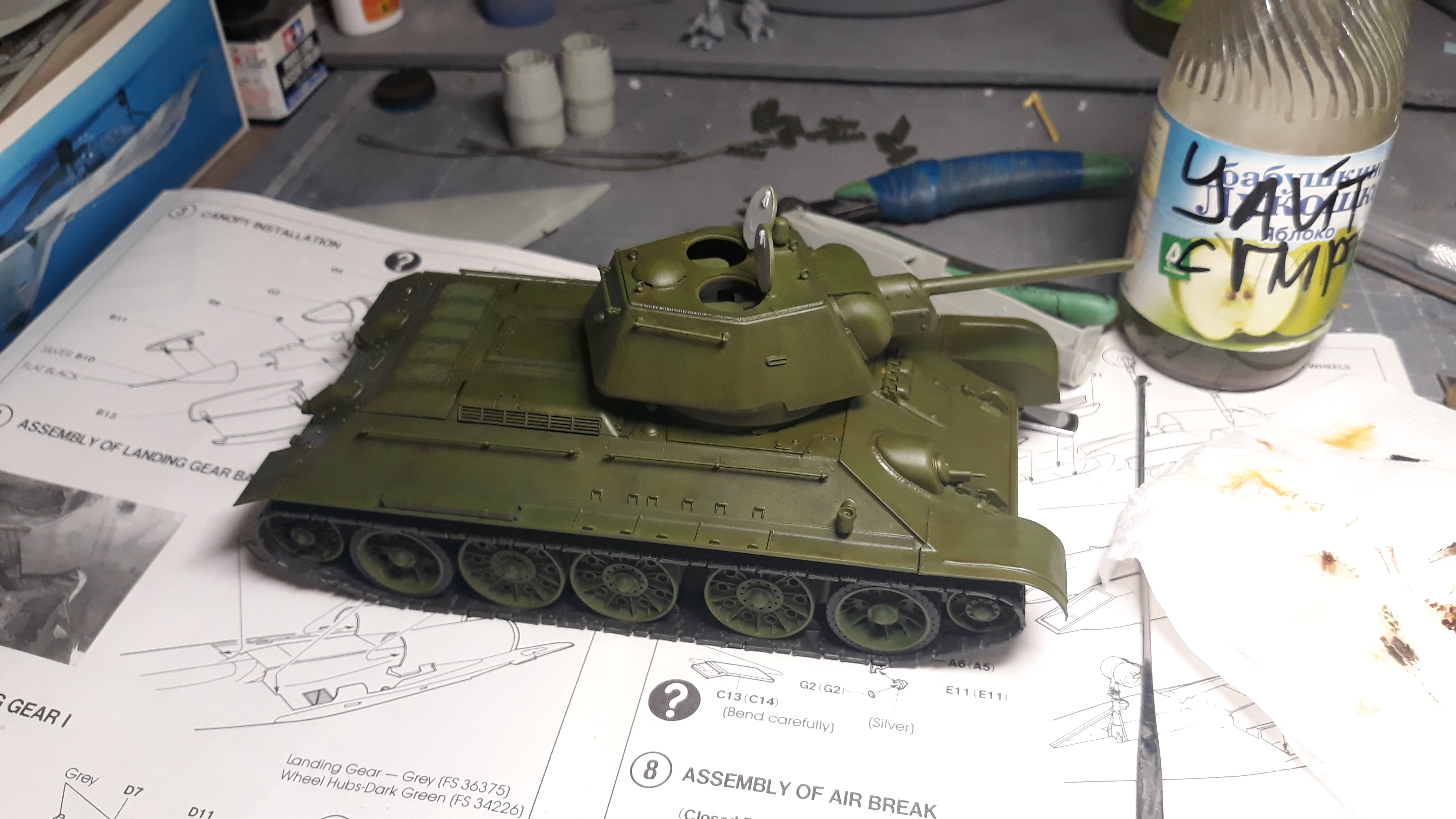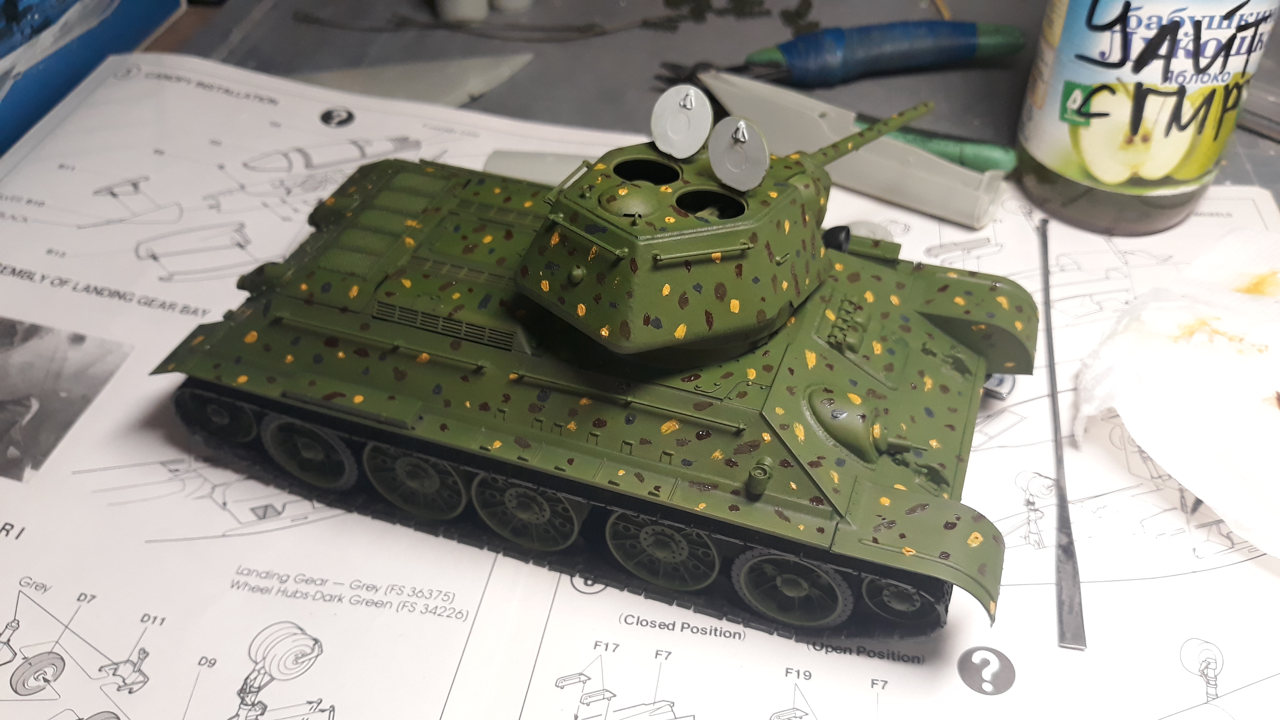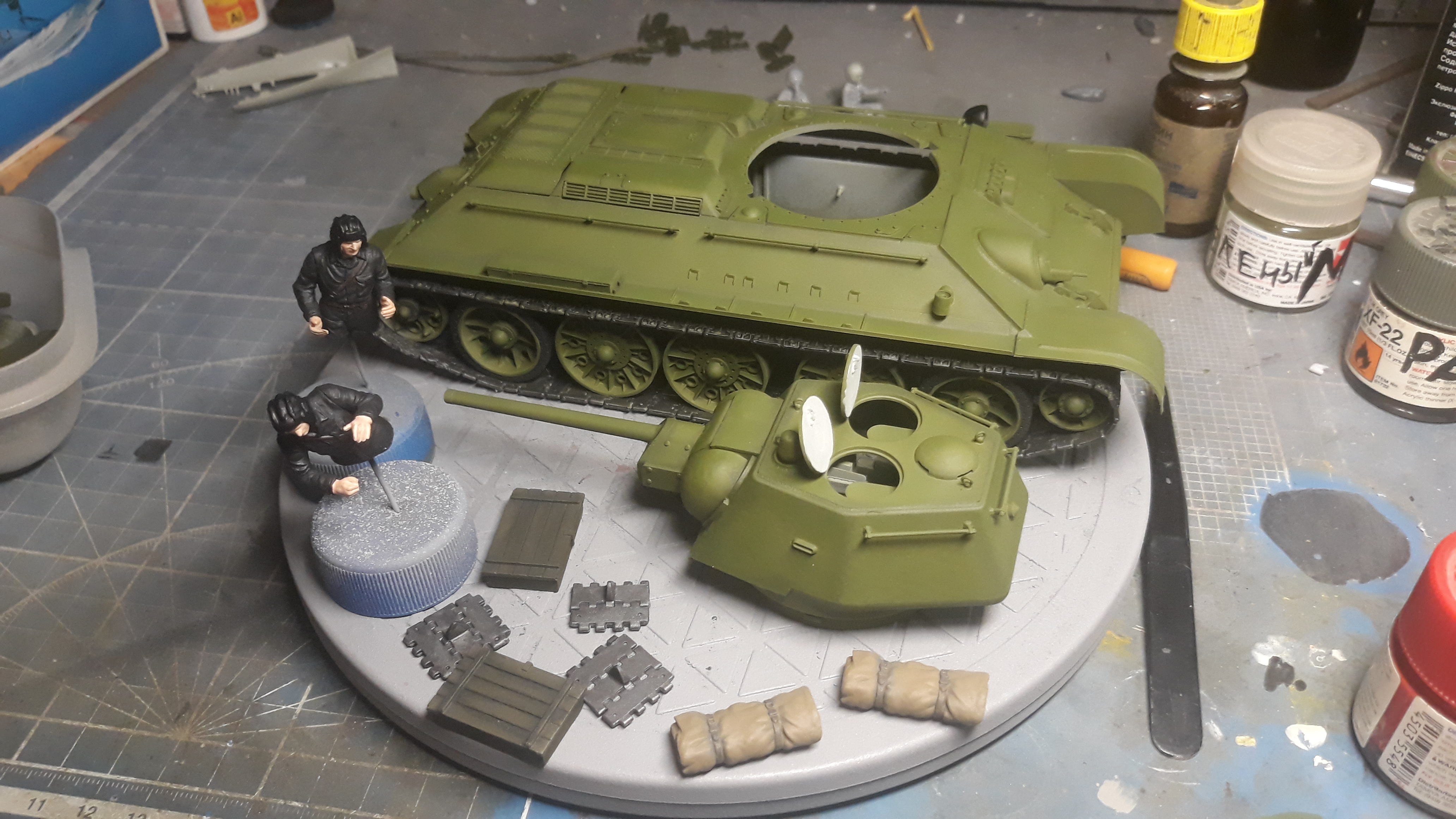 За вчерашний вечер успел нанести зеленый фильтр и нанес и растер маслянные точки. Сейчас модель сохнет закрытая глянцем, вечером сделаю смывку закрою матом и буду пачкать может быть даже успею закончить.