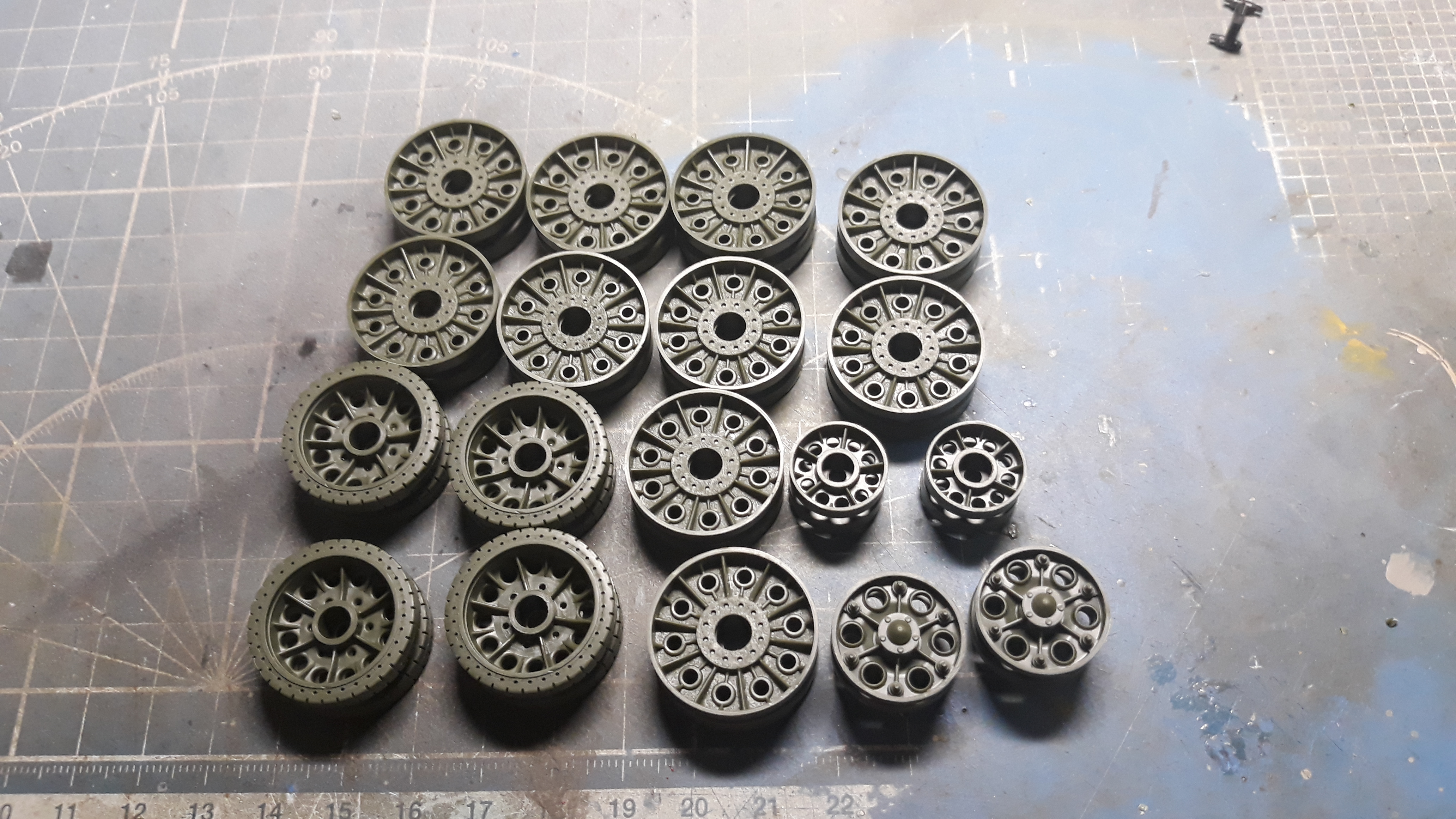 Ну а для начала собрал катки, но теперь надо понять подойдут ли они и в какой комбинации, если что то как вариант можно взять для донорства звездовский или мсдшный набор просто они есть в магазинах.