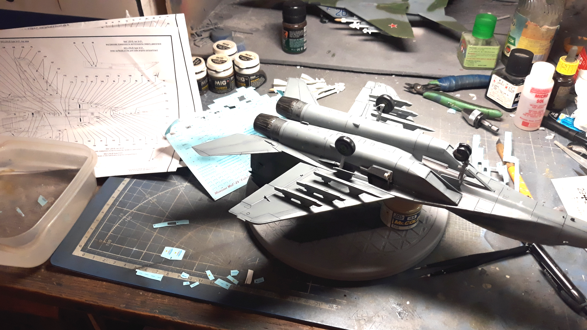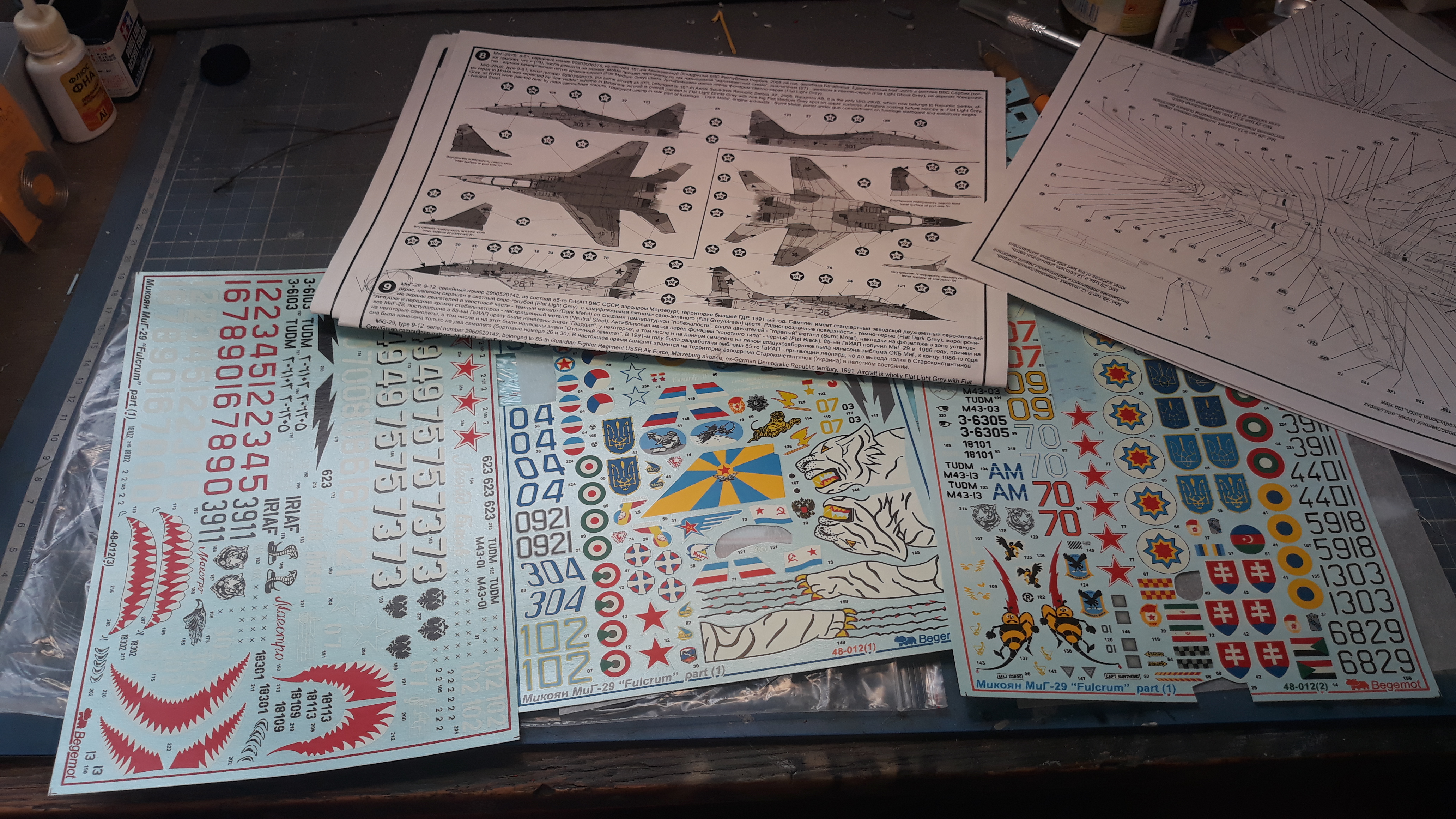 Ну и декали, как я и писал ранее использую декаль от бегемота, но частично относительно технички её я уже использовал для простого миг-29. Так что посмотрим может чтото использую от родных декалей .... хотя врятли.