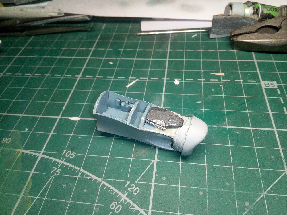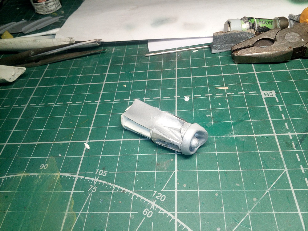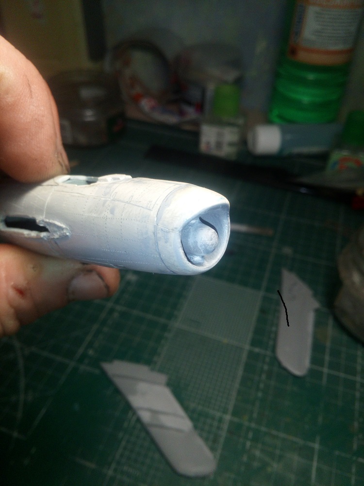 сформированны заново каналы ВЗ и переделан обтекатель прицельной антенны "изумруда"- увеличен в диаметре и опущен к низу, заново сделана кабина- особо с ней не морочаюсь ибо будет закрыта. Из пивжести и свободных запчастей сделал имитацию форсажной камеры: