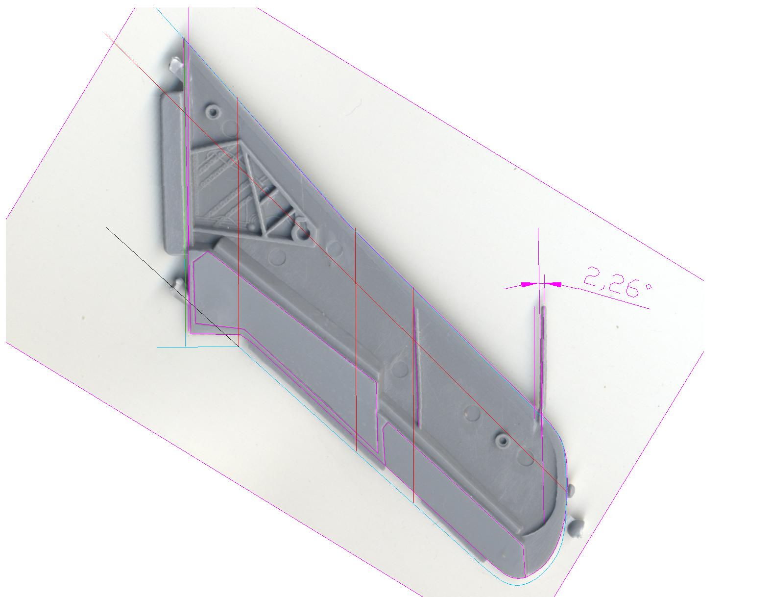 Голубой контур - построен по чертежам. Розовый - по скану крыла модели.