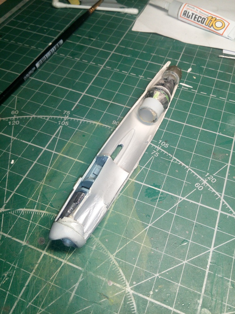 собрал, шпаклянул, зашкурил фюзеляж, склеил половинки крыльев, с наращиванием решил не морочится- пропорции и вид они не нарушат. Гребни буду сносить, с последующим восстановлением, форма у них не айс, ближе к делу будет- покажу.