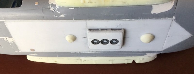 Доработал заднюю часть вертолета. Ручки створок грузового отсека. Антенны, контейнеры ДИСС, БУР, места под строевые огни, проблесковый маяк. Доработан хвостовой редуктор.