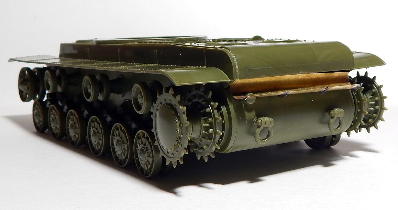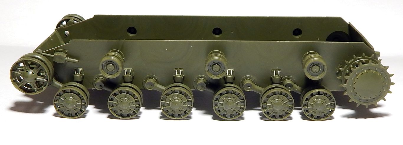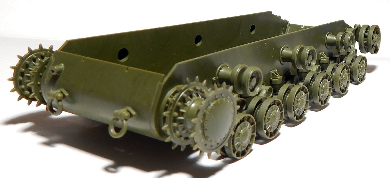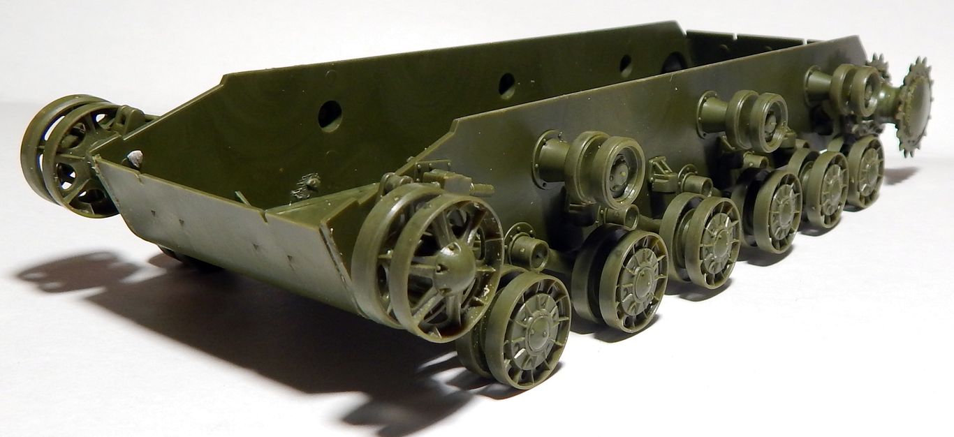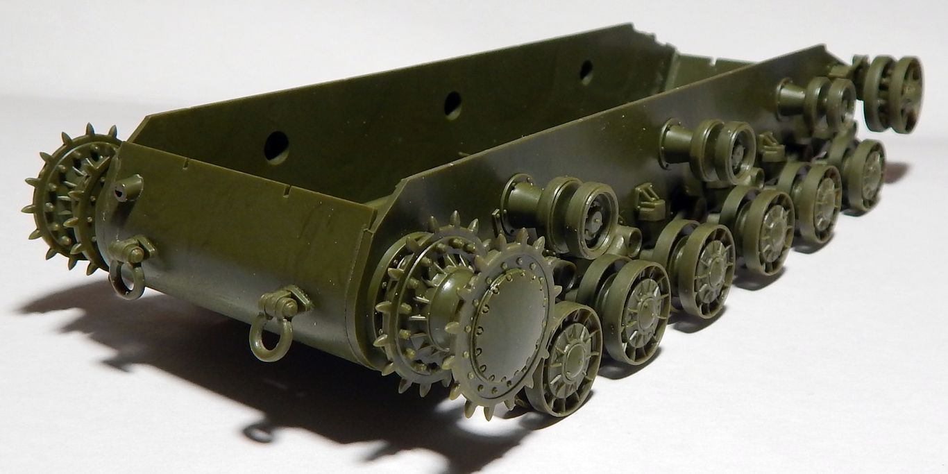 Тем не менее, собрал ванну, дополнил деталями ходовой, получилось вроде как приемлемо, хромоты похоже избежать удалось, с крышками балансиров пока не определится, очень нет желания фрезеровать по три посадочных места болтов на крышку... есть как вариант Трумпетя, в наборе имеются нужные крышки...