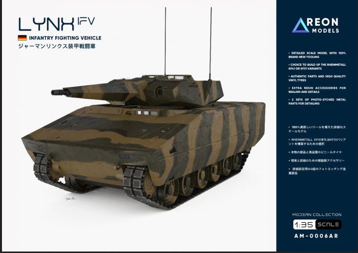 На скейлмейт проявился новый производитель Areon Models с пачкой анонсов в 1/35. Похоже, ребята задались целью перебрать современные колесные и гусеничные бмп.