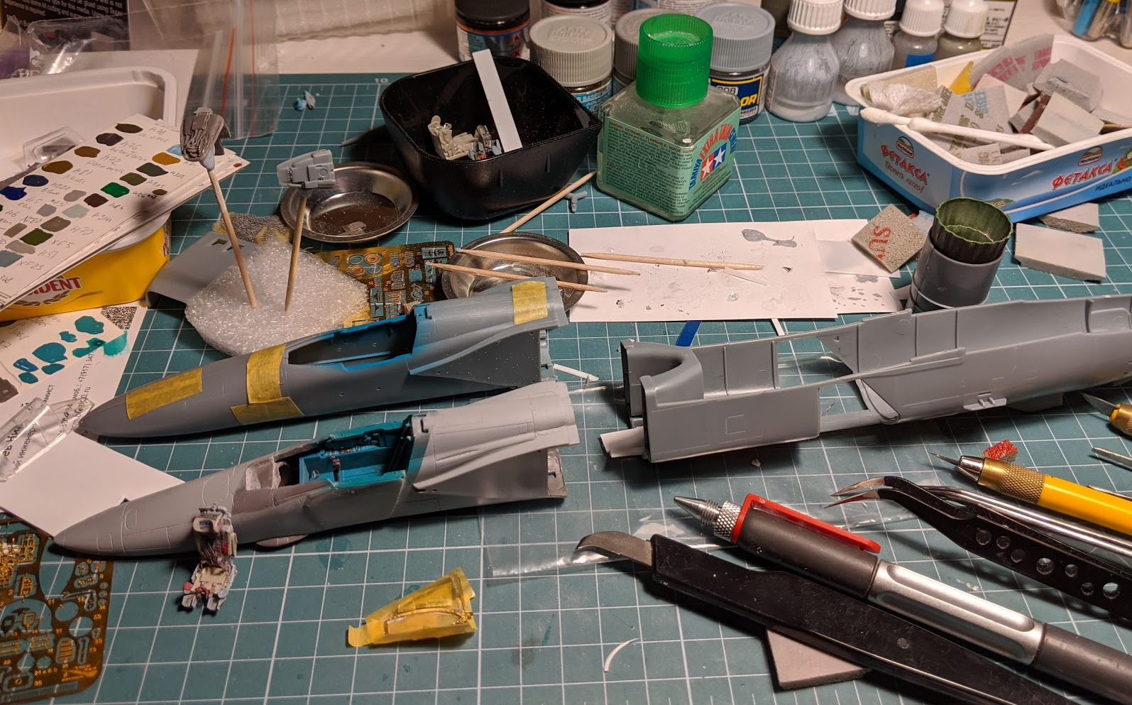 Я для себя принял решение, что когда буду работать с их набором для МиГ-27, то использую только нос и остекление, к которым подгоню пластик сам, т.к. те дровища, что они дают в виде НЧФ, на мой взгляд, использованию не подлежат.