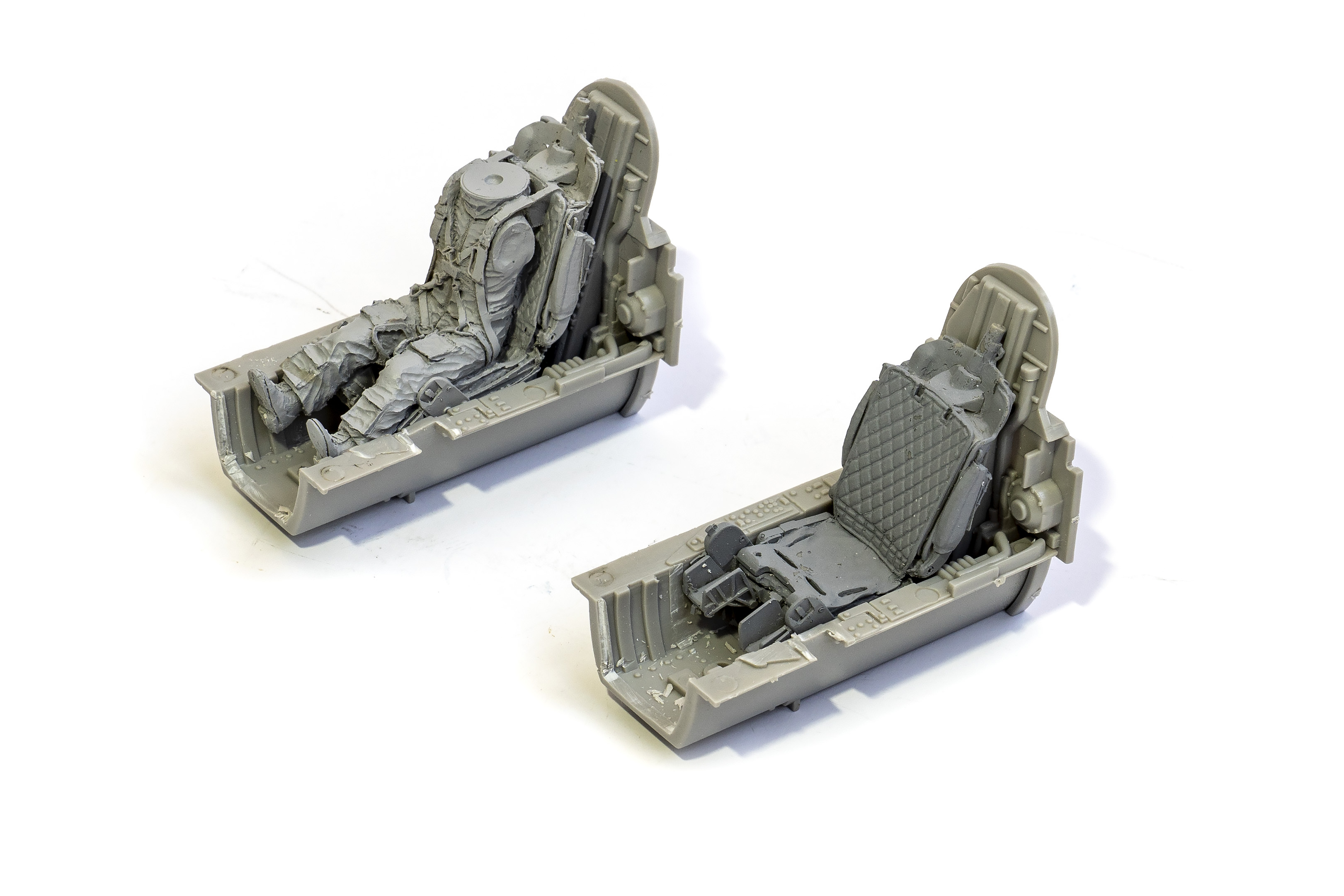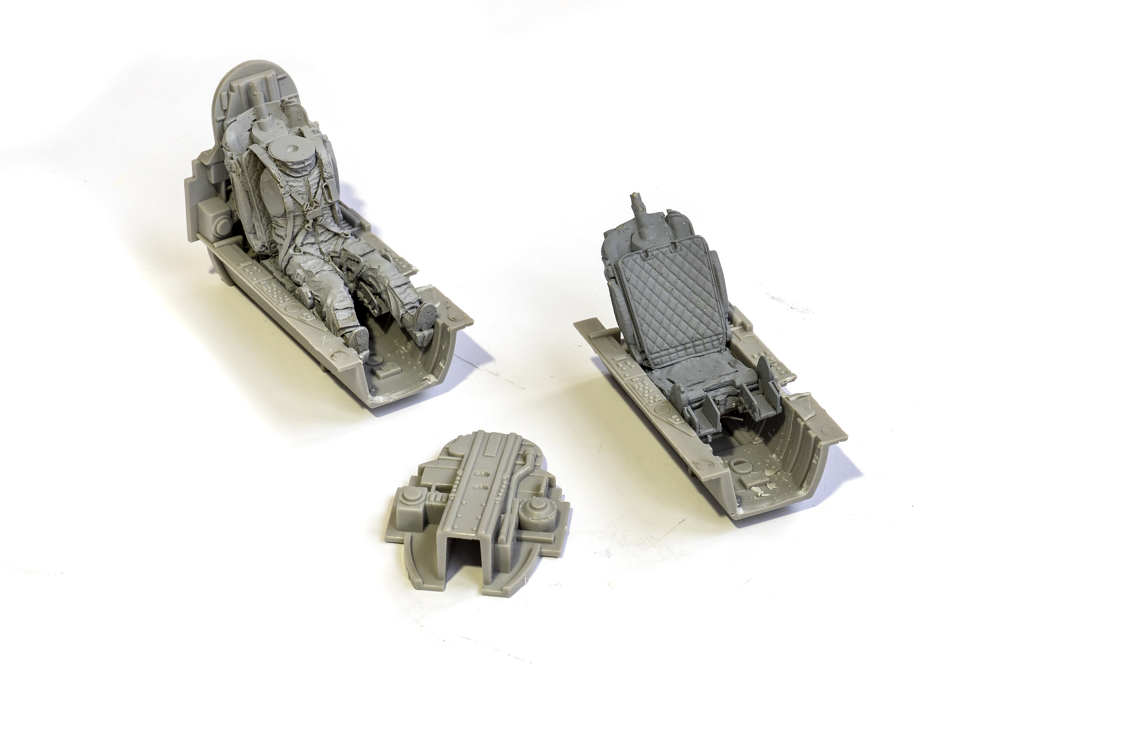 Стали возникать вопросы. У меня на одном самолёте будет просто кресло, на другом посажу лётчика. Кресло смола. Там и там не опускается до пола. Нужно ли это делать? Вроде чуть кресло утопил. И как лучше? Хотел разрезать пол и кабину раздвинуть. НО куча проблем сразу - и приборка не подойдёт, и задняя стенка. Может кто-то делал , подгонял? И как глубоко опускать?