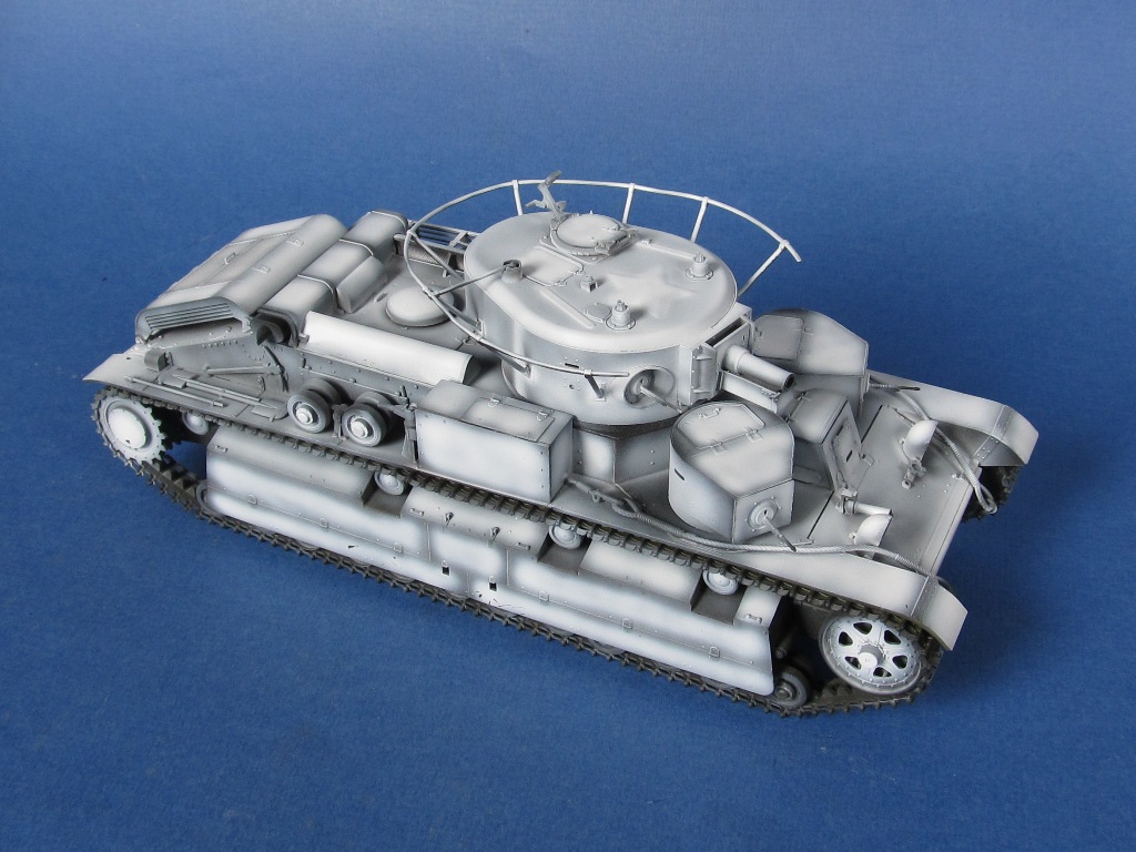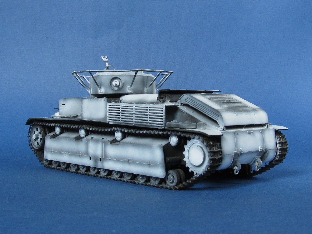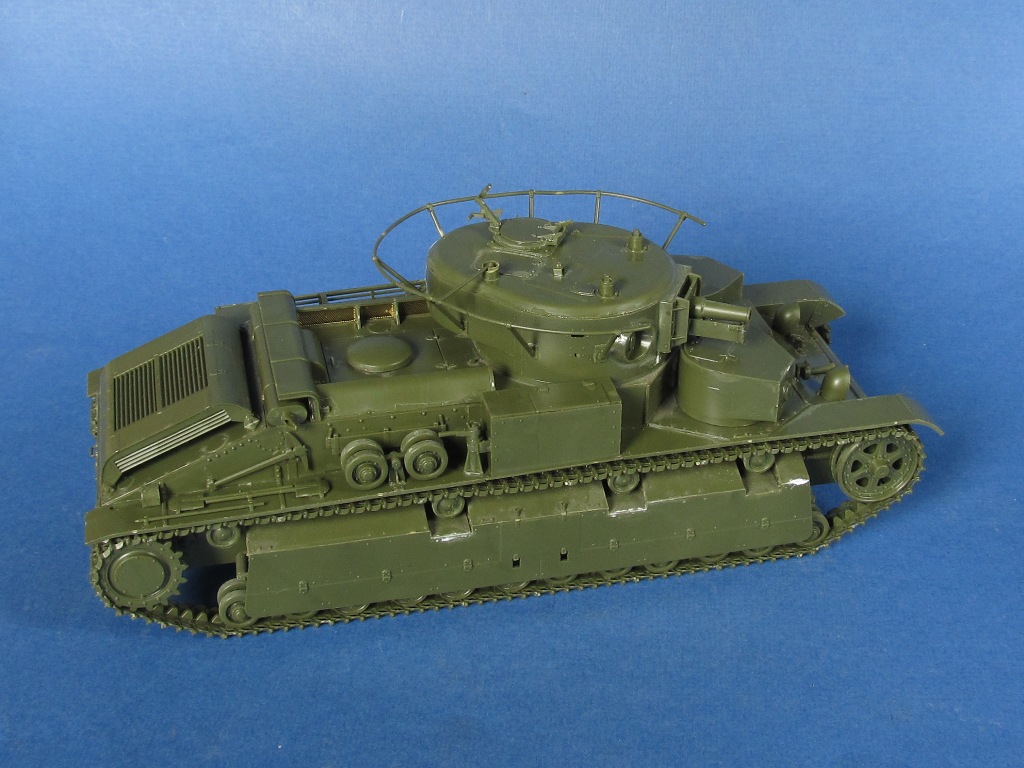За пару вечеров практически всё было собрано. Складывается хорошо, шпаклёвку применял только на стыках половинок башен и немножко на бортовых экранах. Самым муторным был процесс зачистки всех 48 опорных катков и сборка ходовки.