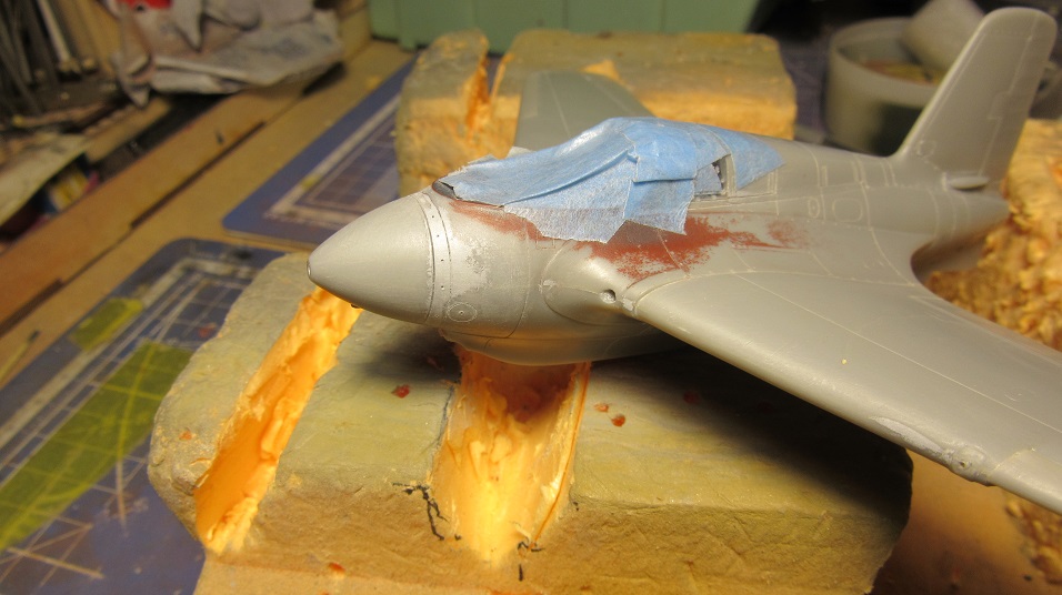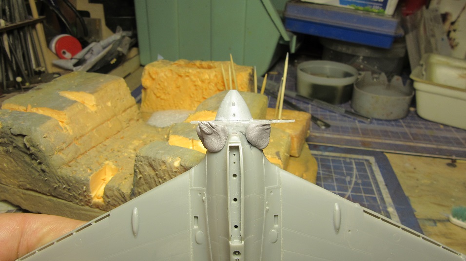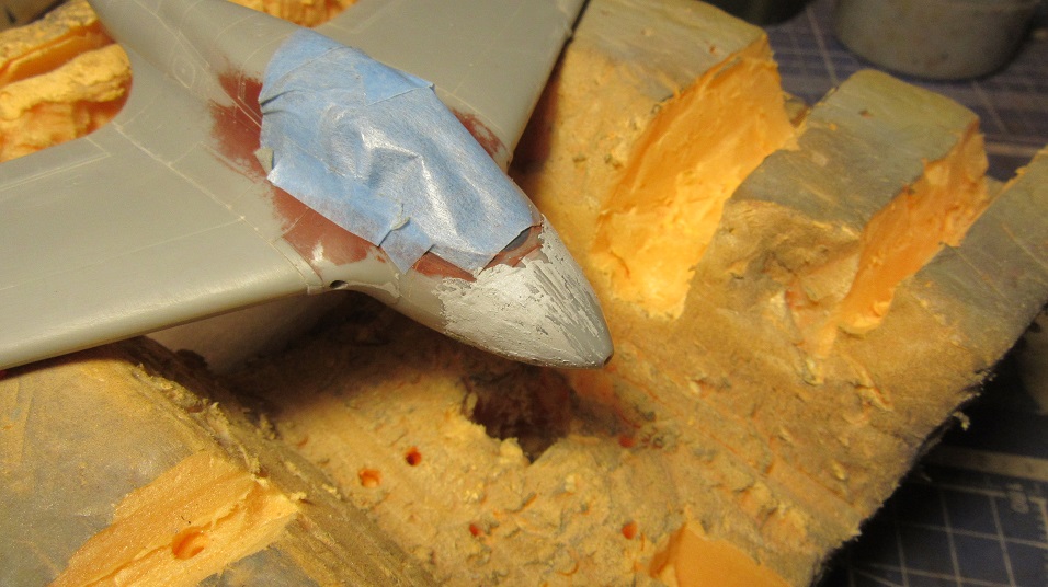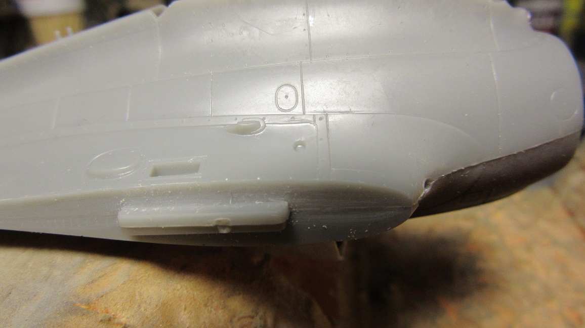 В принципе подготовил под грунтовку, но в процессе последних осмотров обнаружил весьма сложноустранимый дефект геометрии, который очень сильно бросается в глаза, особенно когда его один раз заметишь - это нарушение лини контура фюзеляжа в носовой части, а точнее стык носового бронеконуса с первым шпангоутом кабины. на фотках чужой модели выделяю это место.