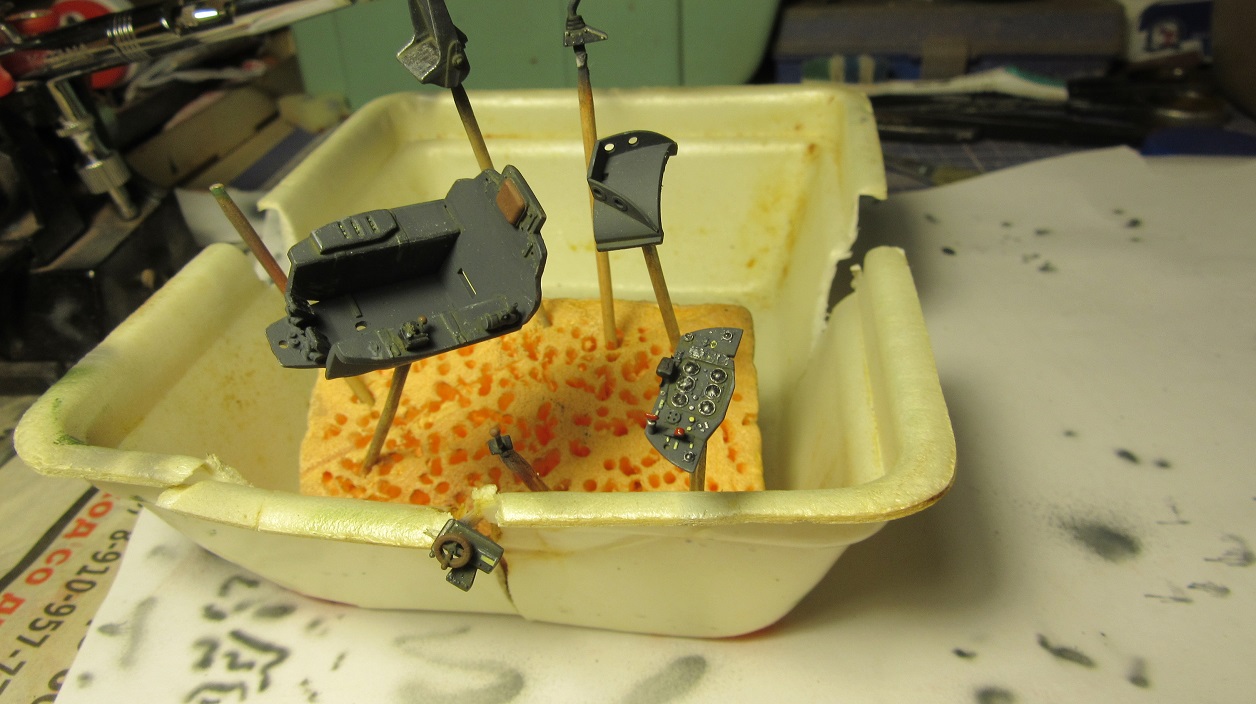 По стройке есть небольшой прогресс -покрасил детали кокпита.