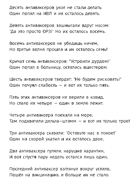 У нас на работе в прошлую неделю умерли от ковида две женщины. Одной 75 лет, другая всего на пару лет старше меня. Не прививались.