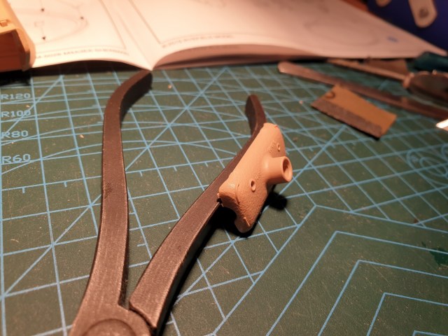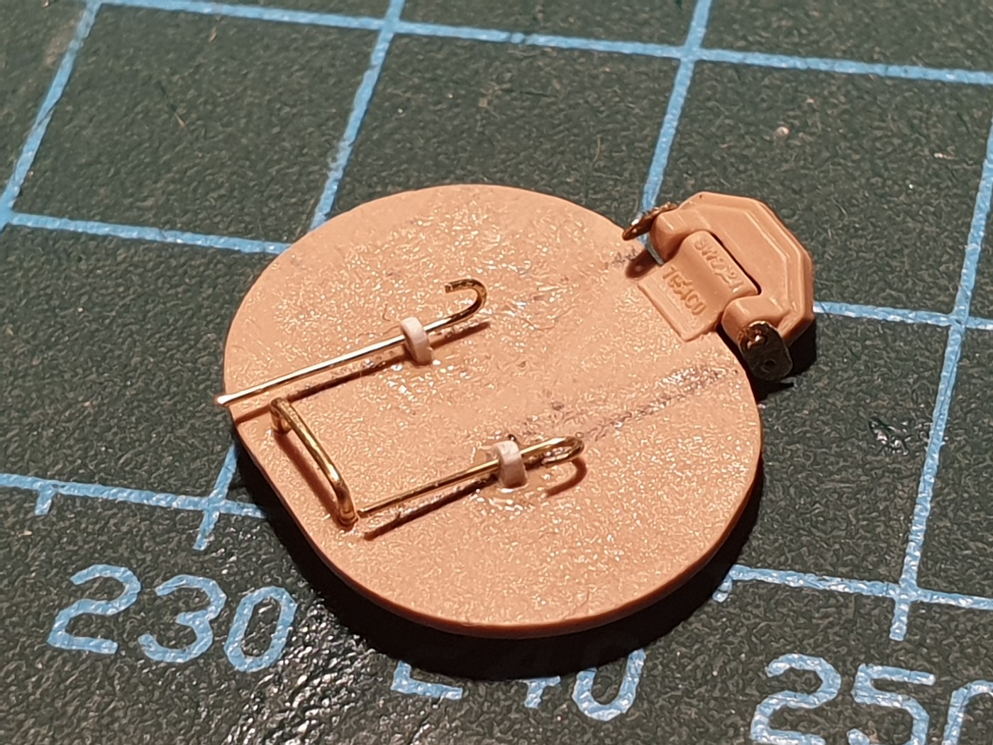 В принципе, крошечные скобы для ремешков там просто номинально обозначены, их надо срезать и сделать из тонкой проволки. Сами ремешки наверное надо сделать из фольги, ничего другого я не придумал.