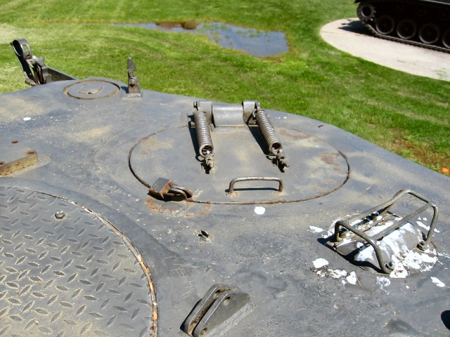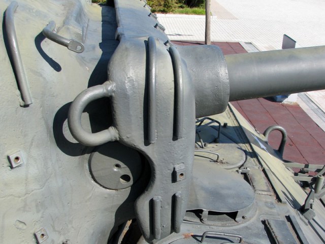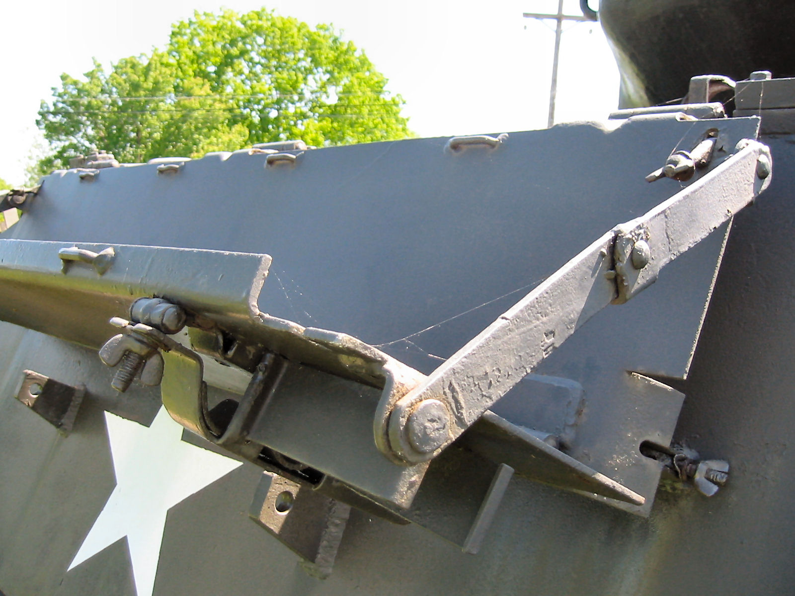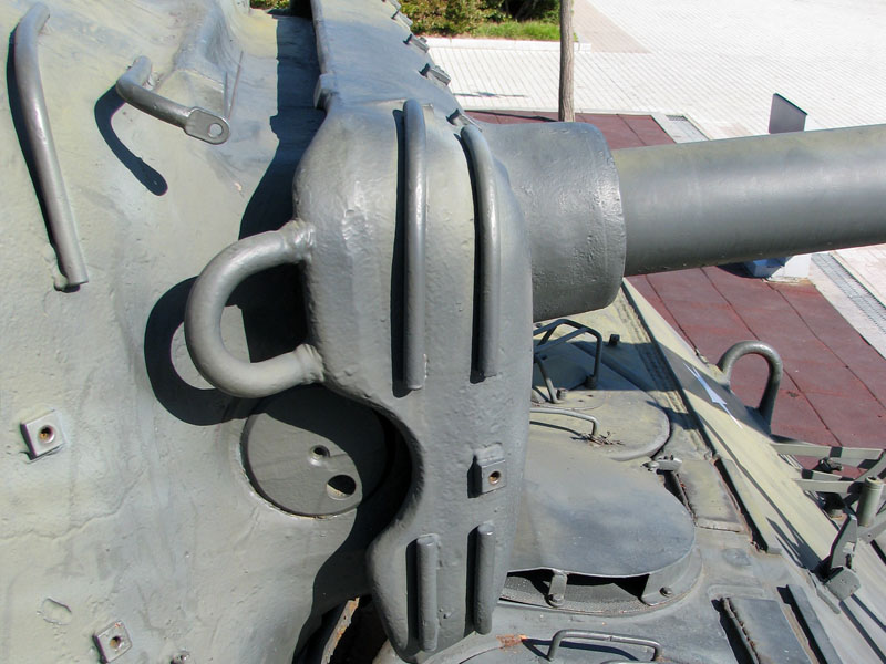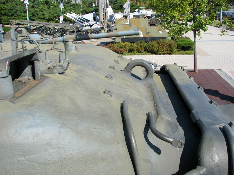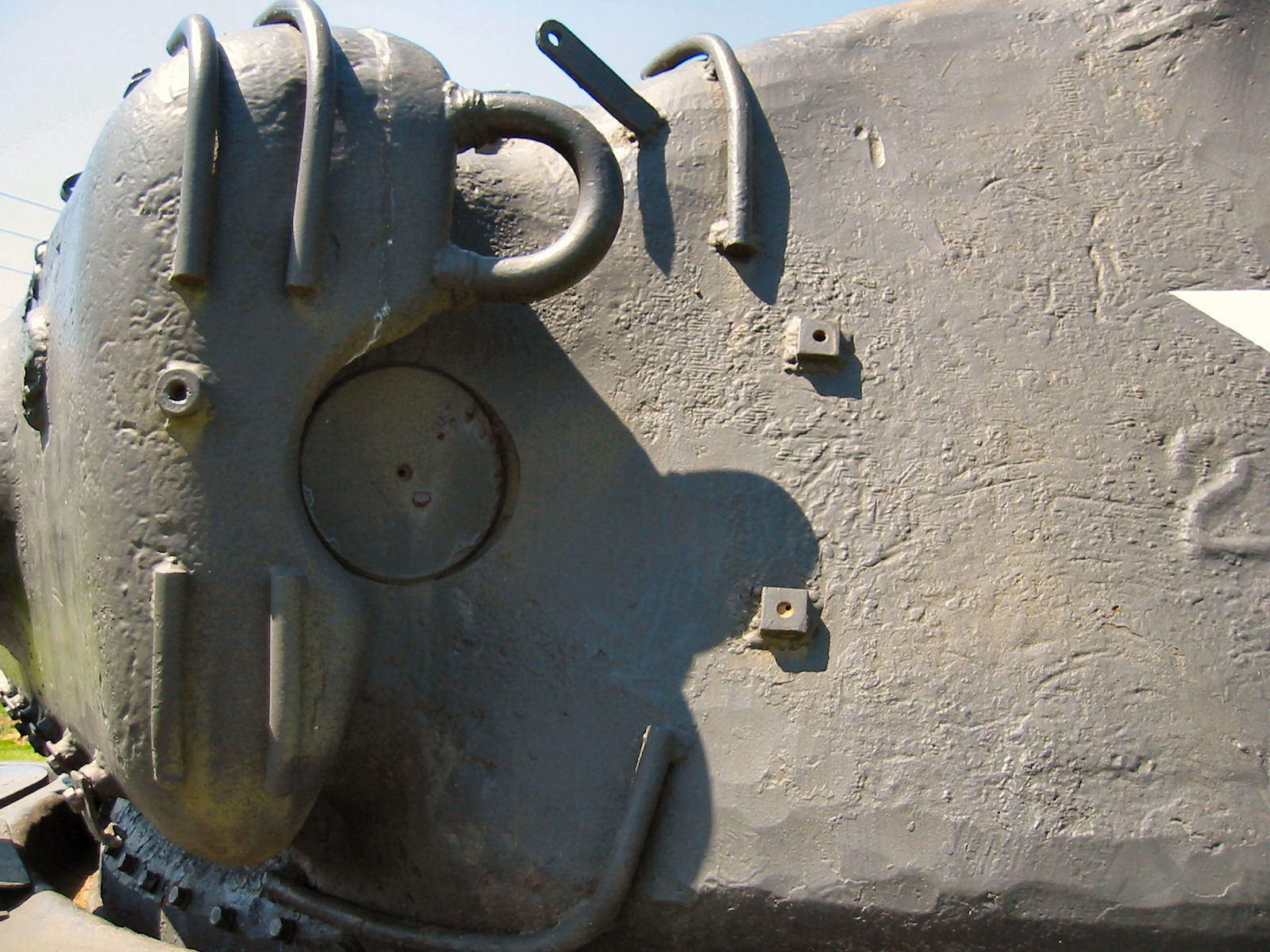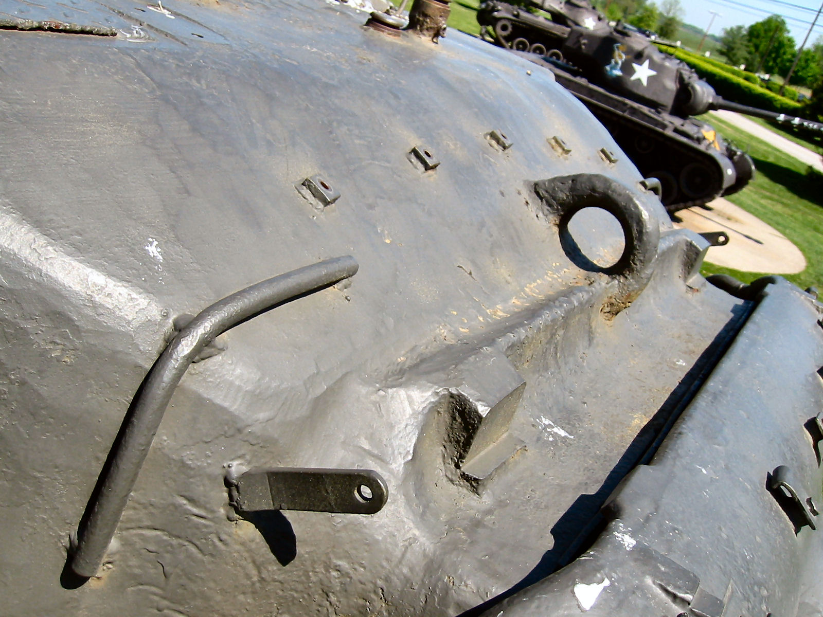 У Паттона аналогичная система. Смущает, что на Першинге была система из реек, и чехол закрывал только промежуток между маской и башней. На Паттоне чехол закрывал всю маску и часть ствола орудия. На Шерманах военного выпуска точно была система из скоб, как на ваших фото, или это уже послевоенная модернизация? Возможно, я ошибаюсь, но, вроде бы, чехлы на Шерманах тоже закрывали только промежуток между маской и башней, а в Корее появились аналогичные Паттону.