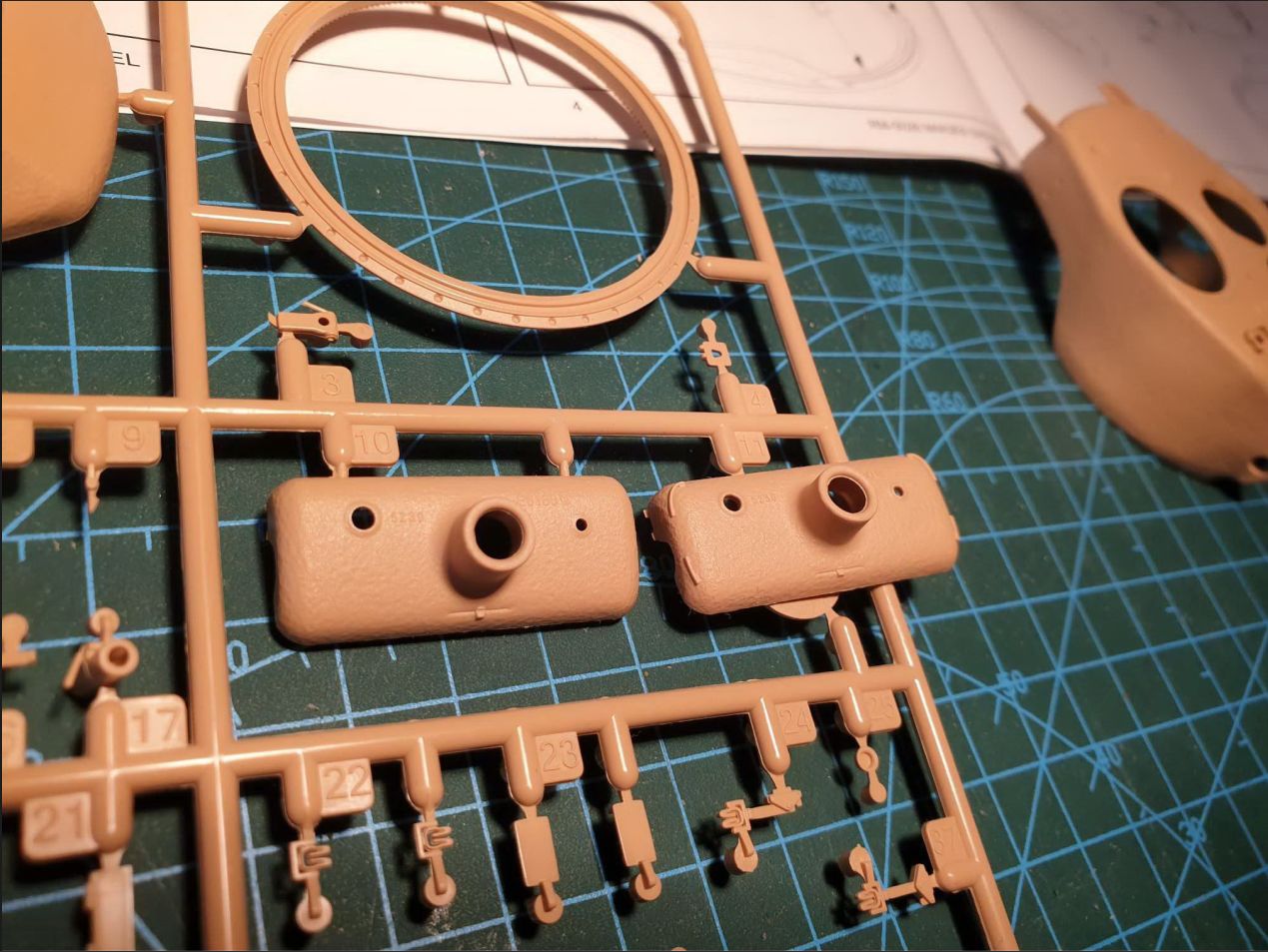 Но, на самом деле всё это не важно, потому что на нашей единственной фотографии с прототипом эту деталь как раз отлично видно, и там нет ни круглых нашлепок, ни номеров, ни символов. Так что всё это я буду стачивать.