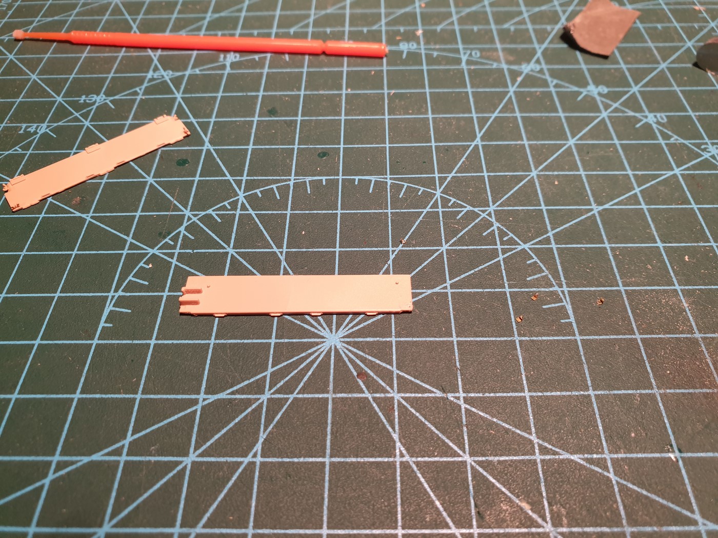 Сточил обе части полки, все равно не масштабно, но лучше чем было. Для масштабности там нужна совсем фольга или крышечка от доширака, но конструкция будет настолько хлипкая, что может развалиться от случайного чиха. Даже вот это непотребство с травлеными штучками мне сильно не нравится.