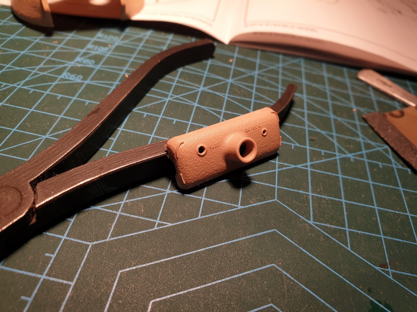 Теперь надо заменить пружины на проволку, потому что отлитые из пластика жуть какие страшные. У меня в принципе есть фотографии этой детали с валкэраундов, но если вдруг у кого-то есть фотографии как это было исправлено на МОДЕЛЯХ, буду признателен. Пока что я не понимаю, как сделать крепления обоих концов этих пружин.